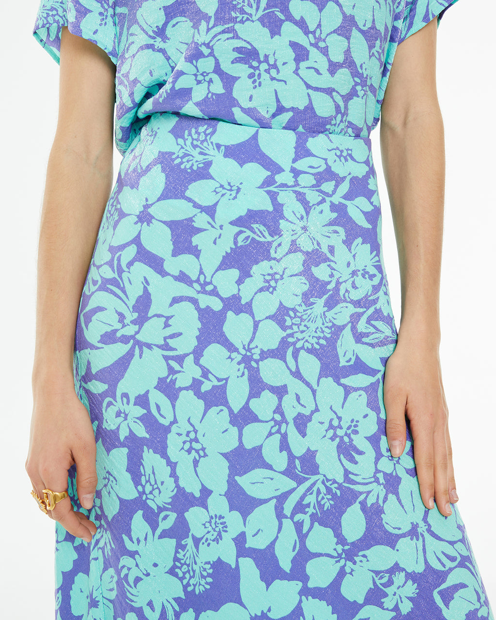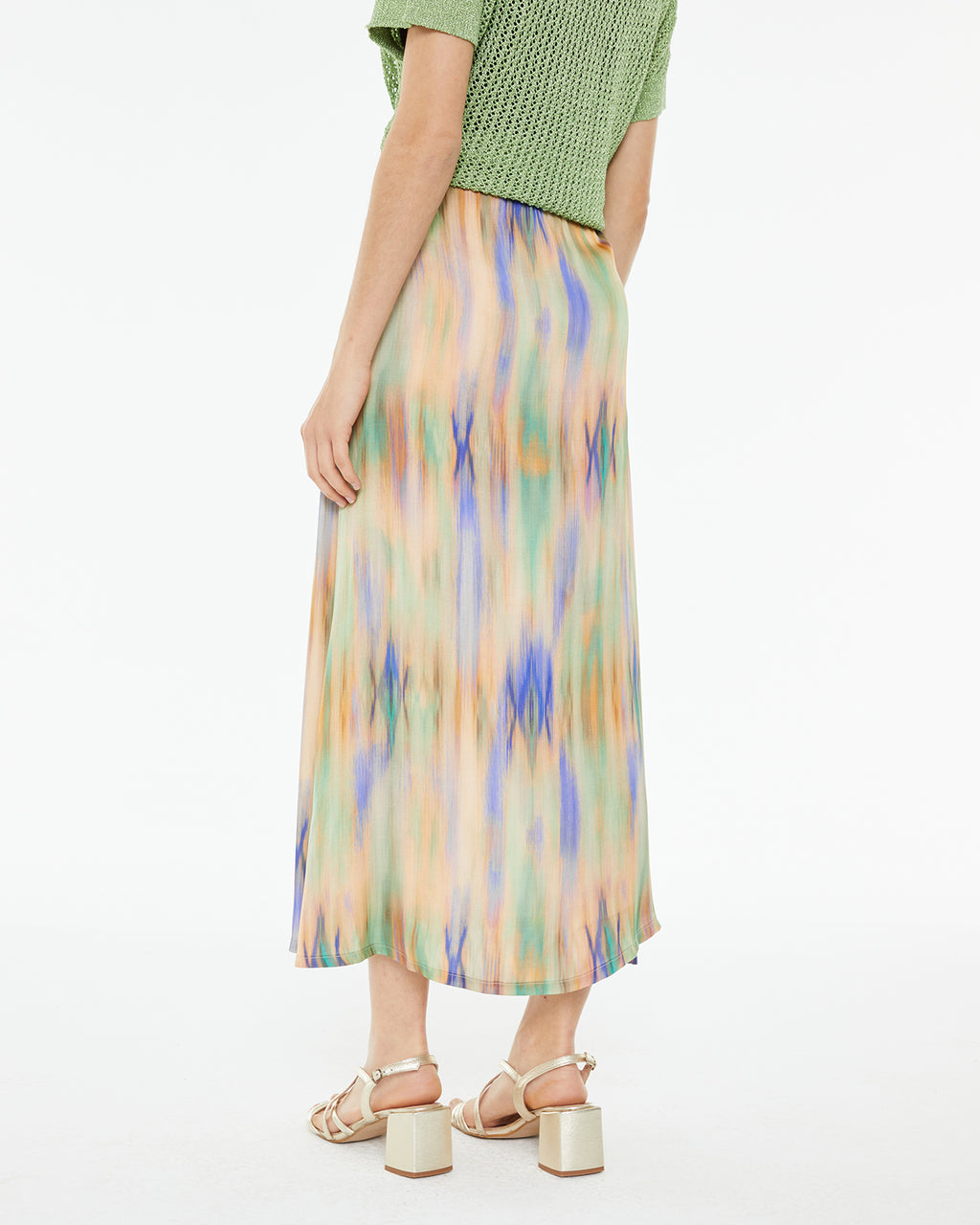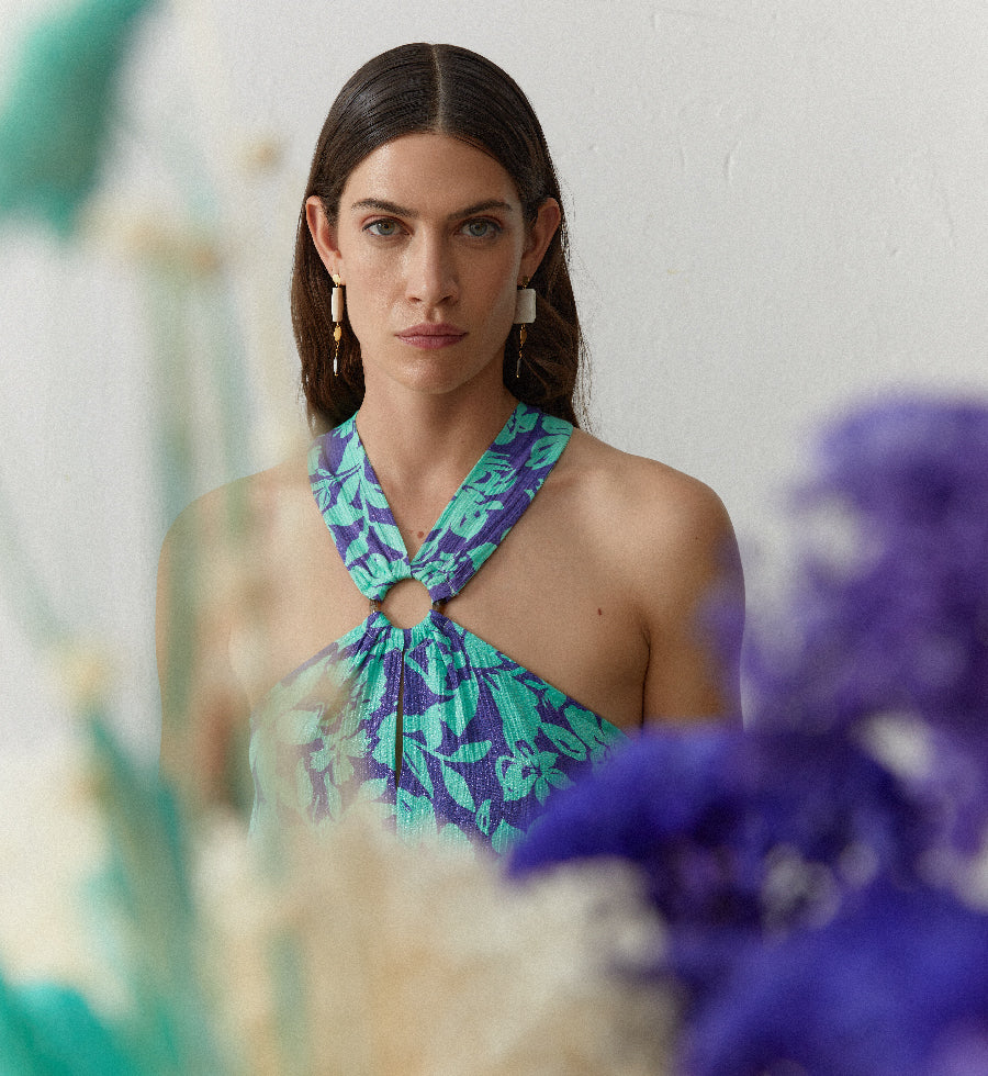 Esta temporada, el azul Ultramarine y el verde Opal se convierten en los protagonistasde una propuesta única, donde el arte y la moda se fusionan. Los estampados cobranvida a través de una maxi flor bicolor en tonos vibrantes y un diseño abstracto inspiradoen las pinceladas de acuarela, creando un juego visual cautivador.