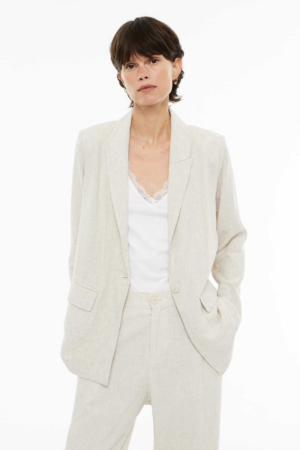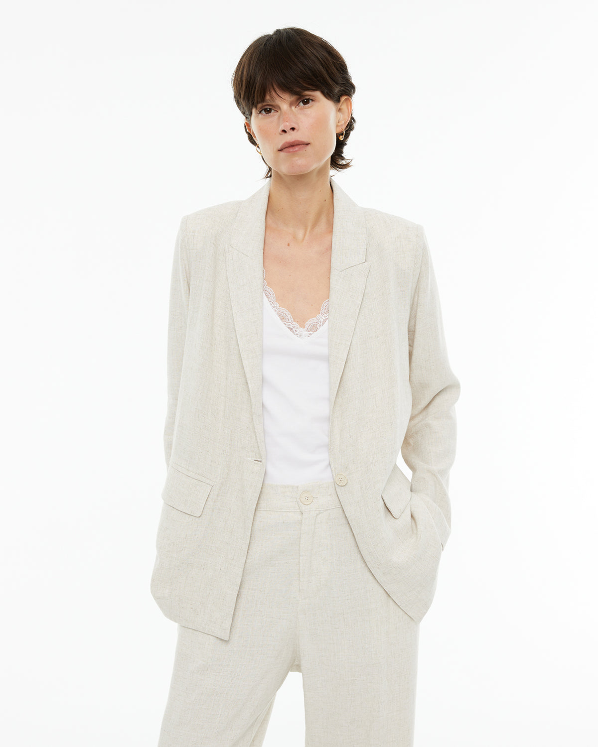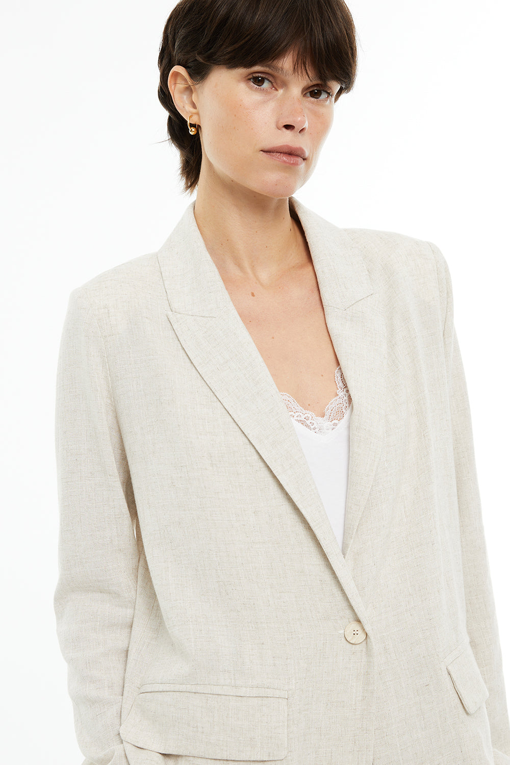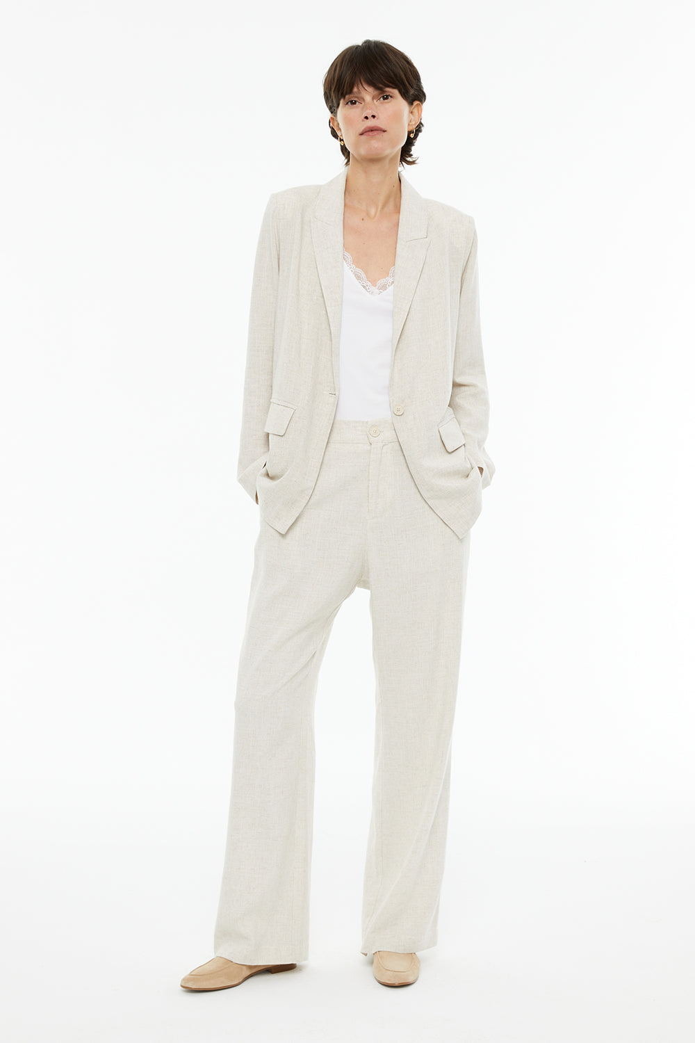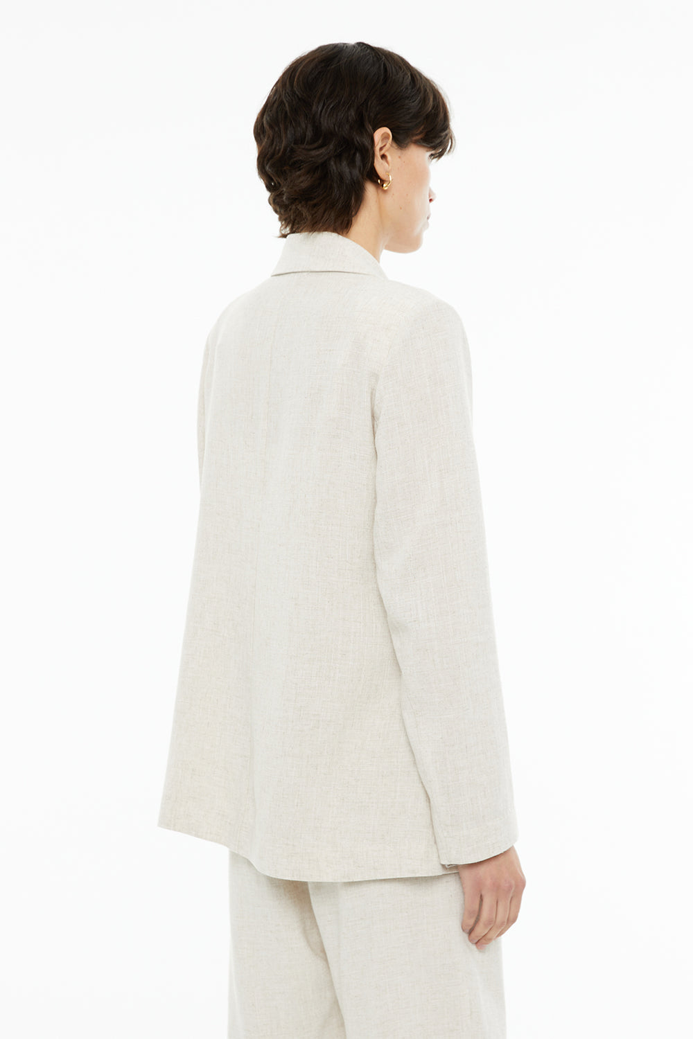 Americana recta fluida mezcla lino con bolsillos delanteros
