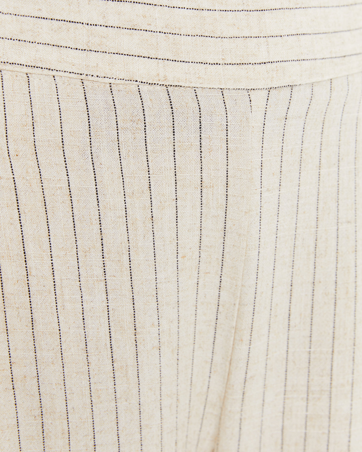 Bermuda de mujer con raya diplomática, goma en la espalda y pinzas delanteras. Prenda sostenible