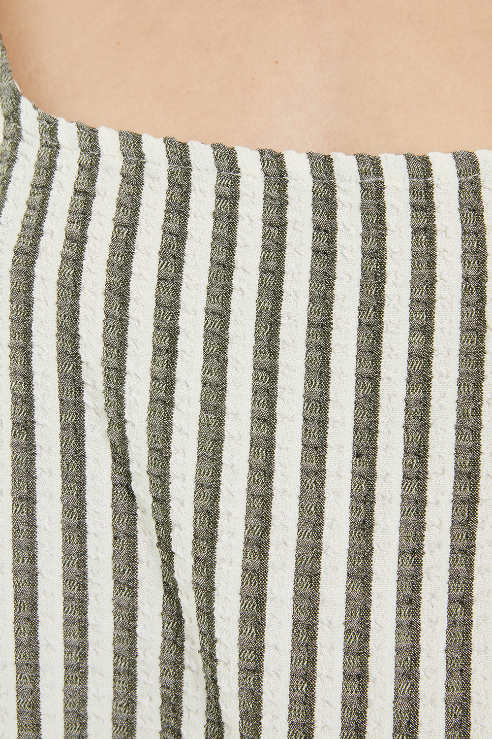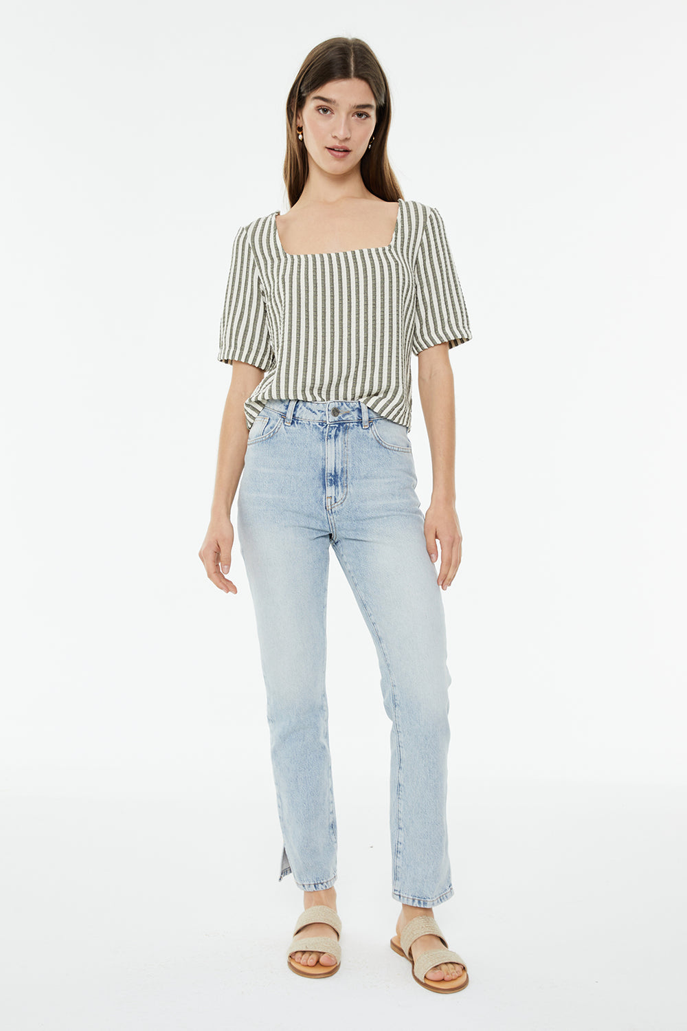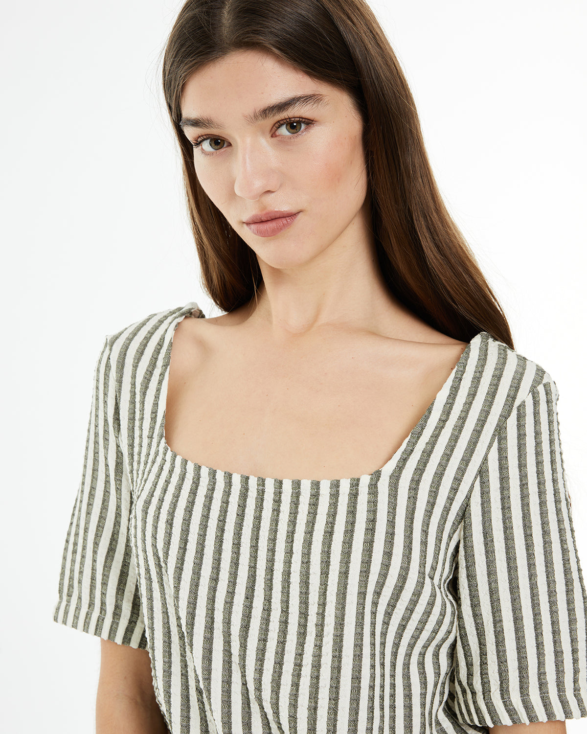 Camisa de rayas manga tres cuartos abullonada y escote cuadrado