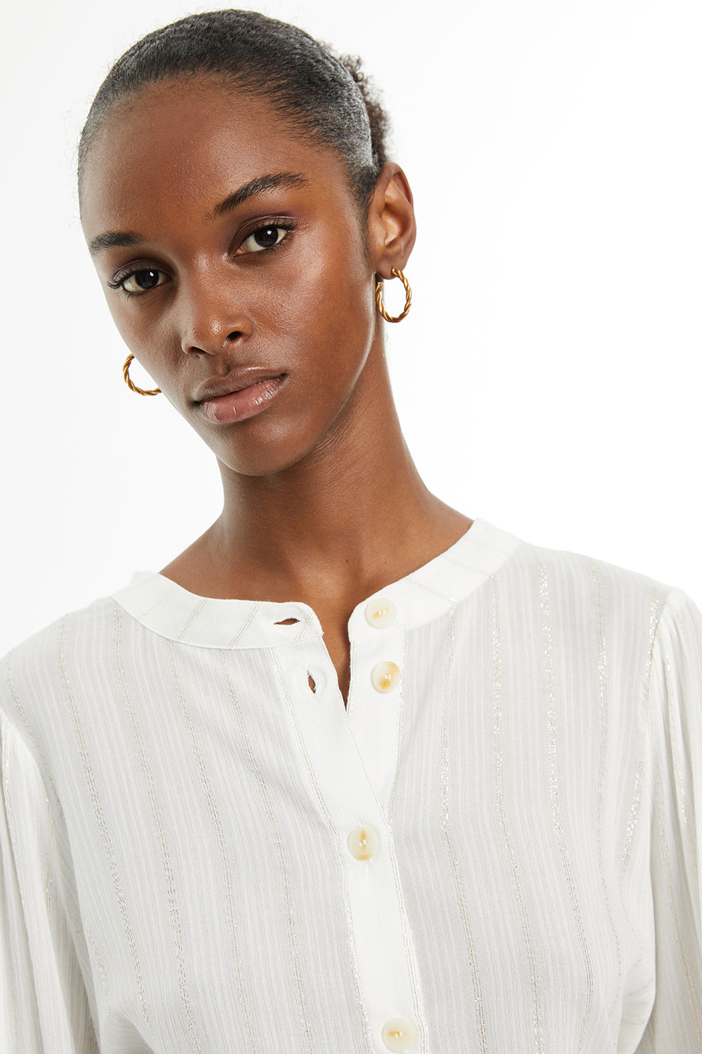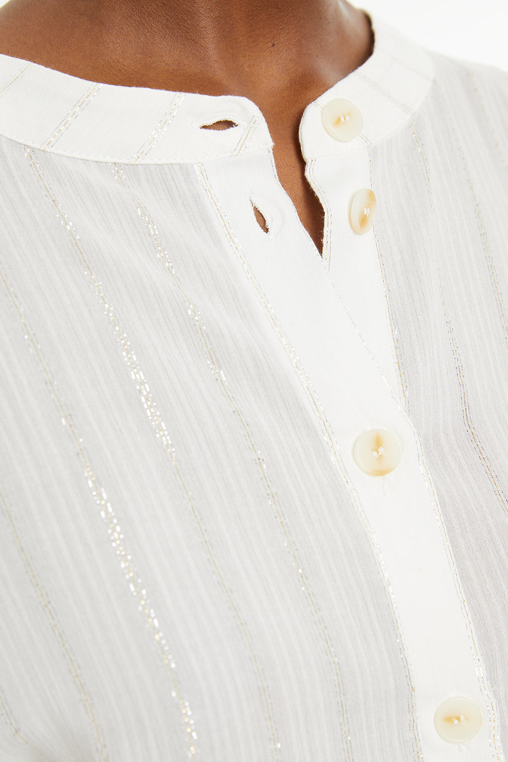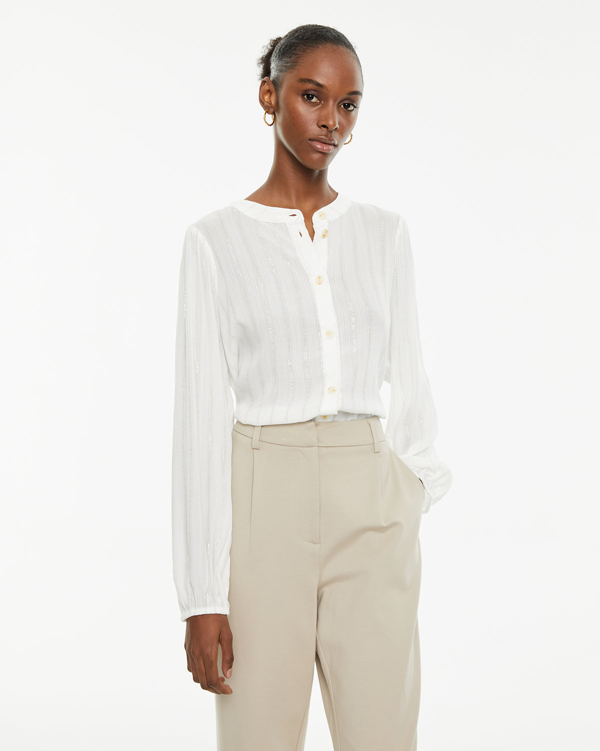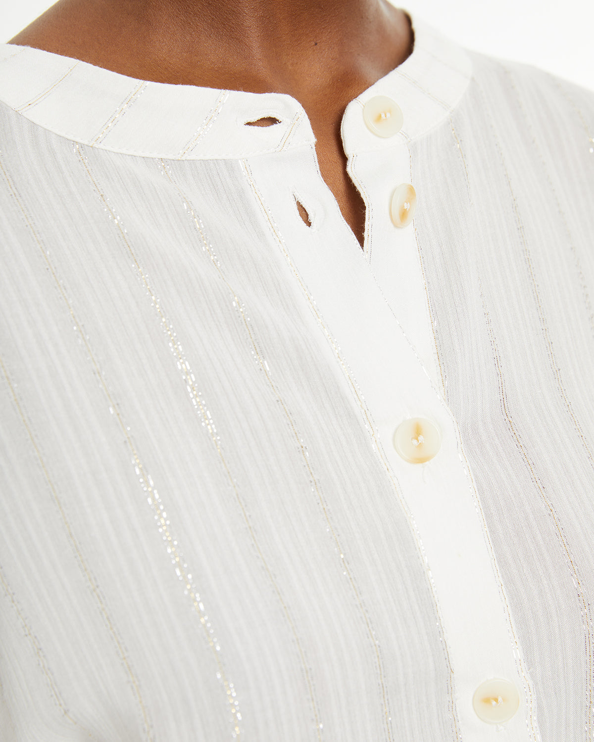 Camisa de mujer con cuello mao de manga larga y detalle de lúrex .
