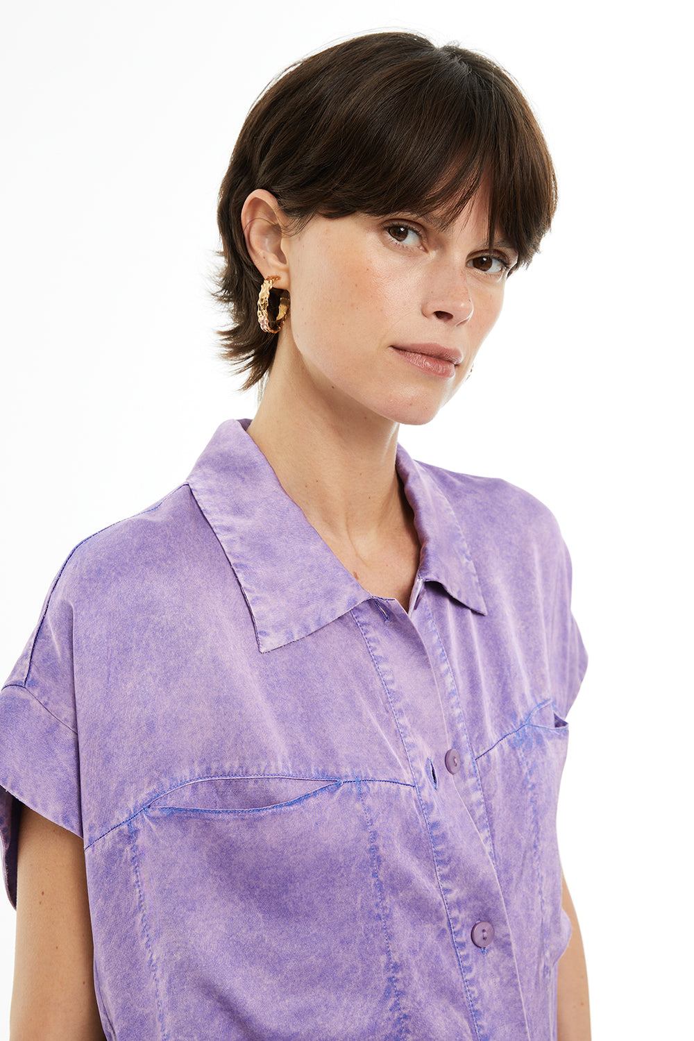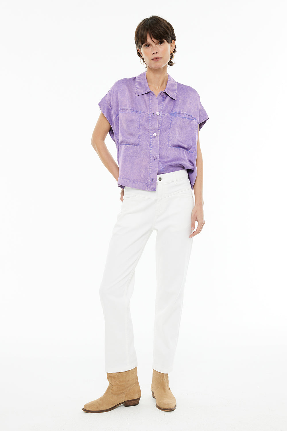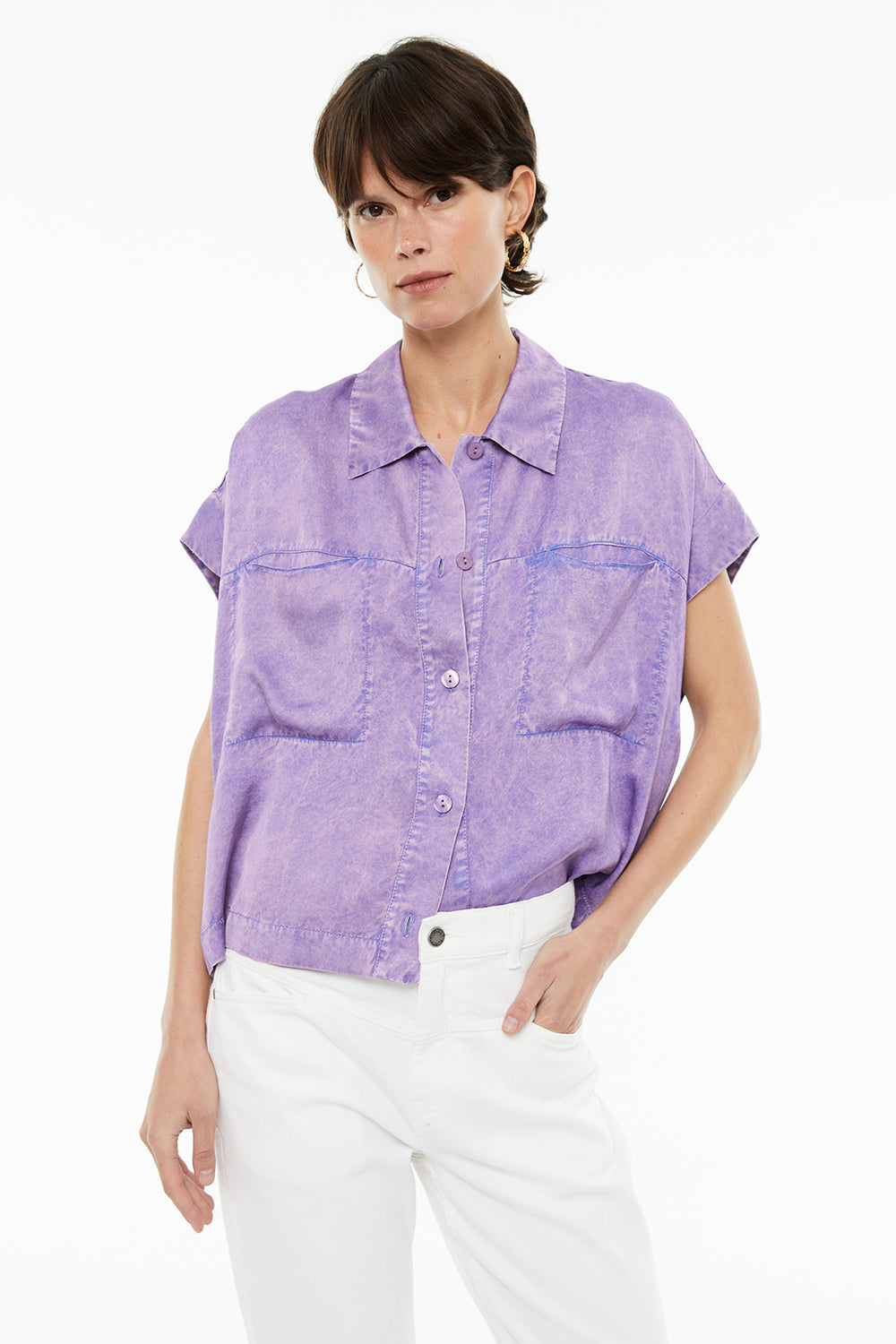 Camisa fluida cuello mao con bolsillos plastrón delanteros