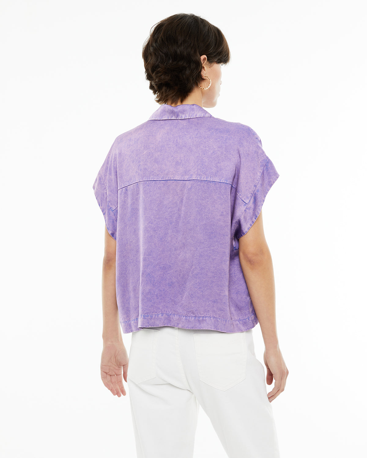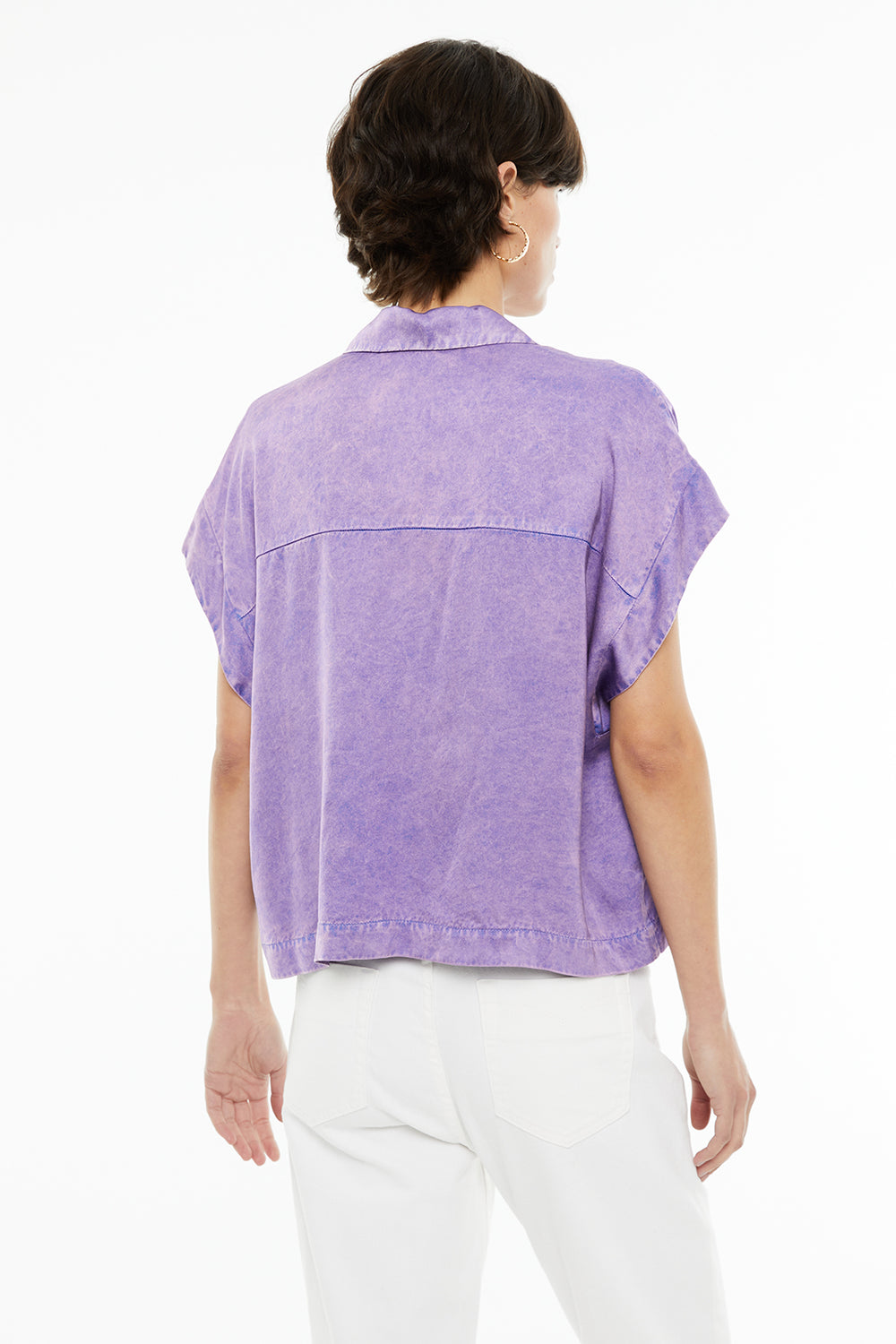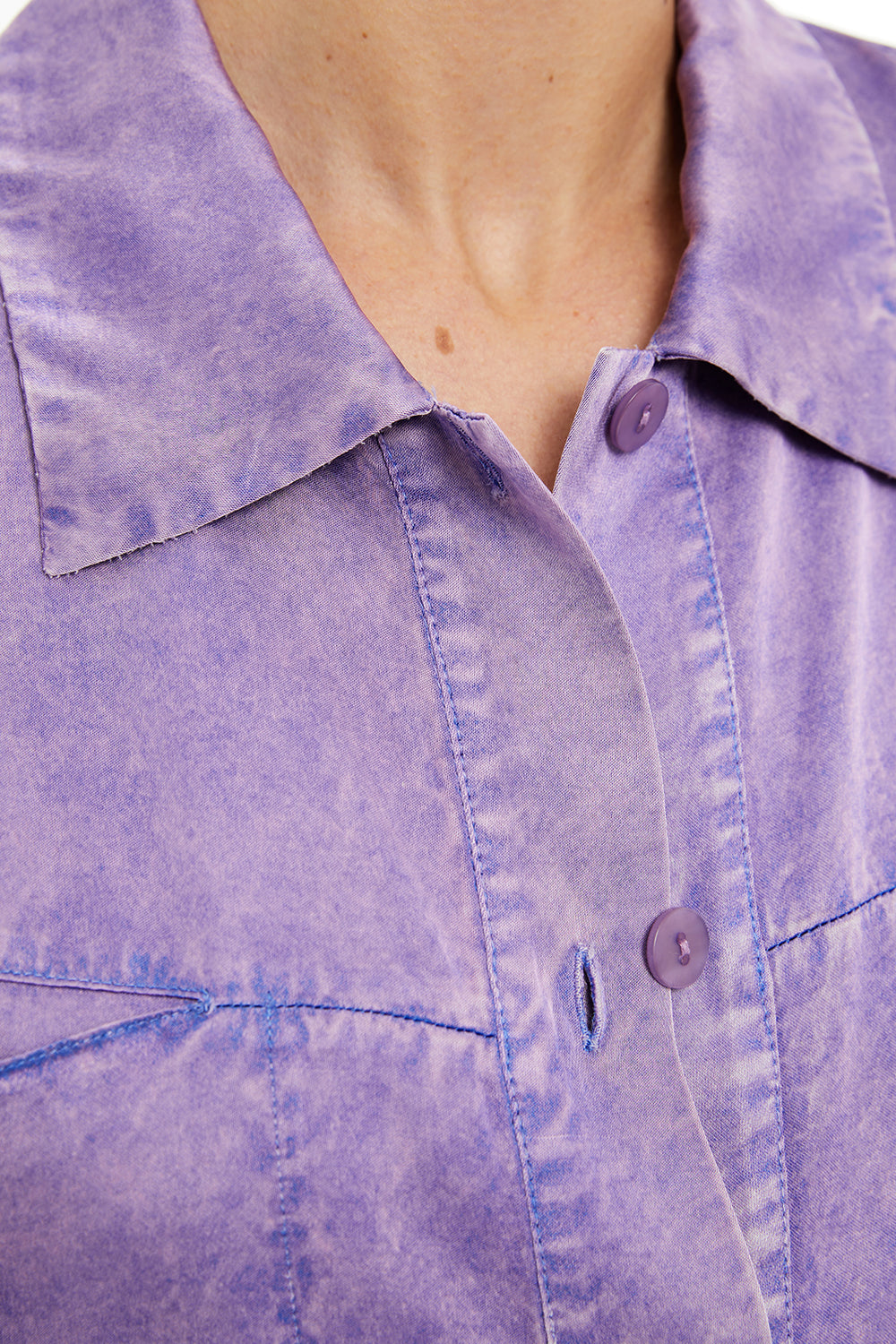 Camisa fluida cuello mao con bolsillos plastrón delanteros
