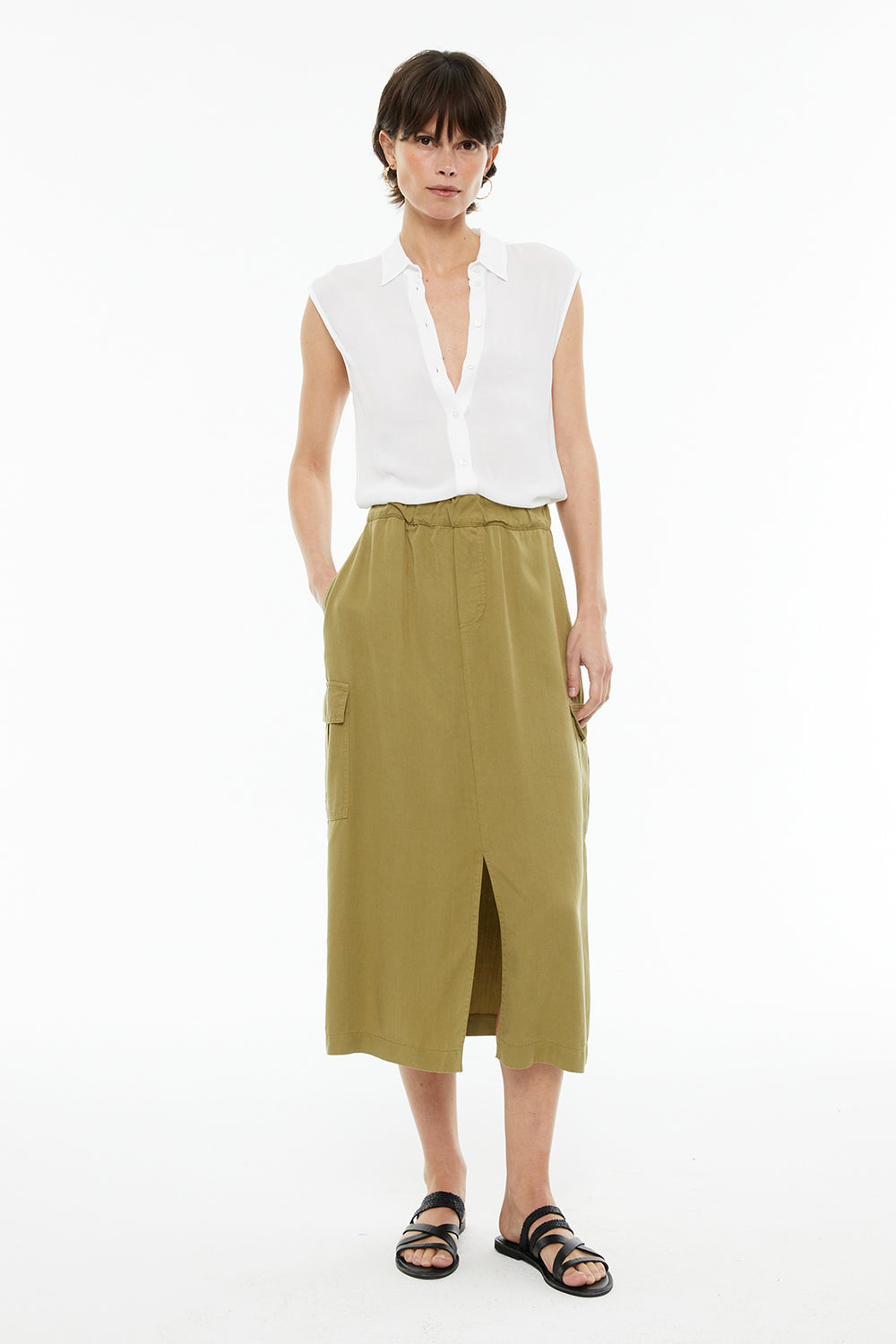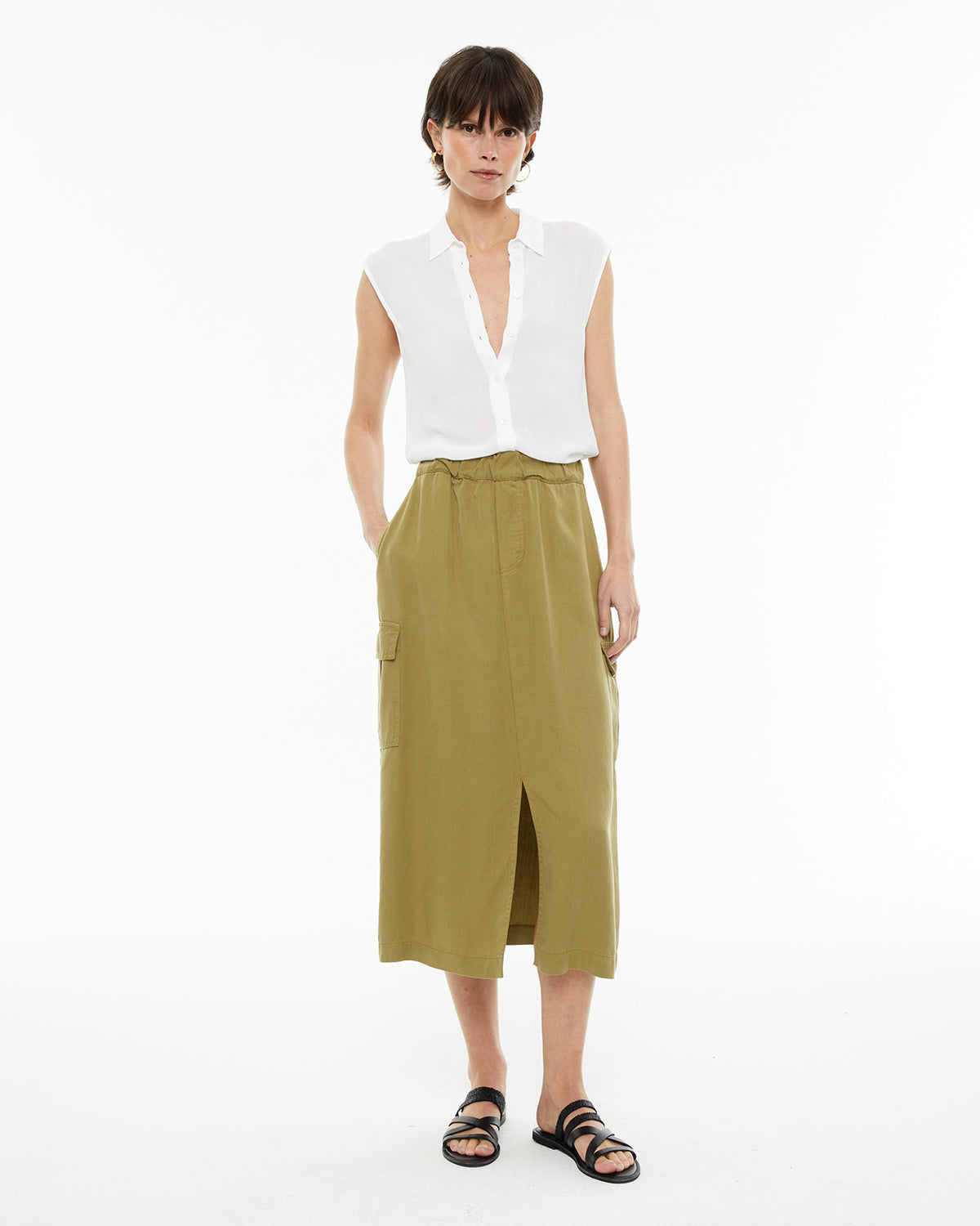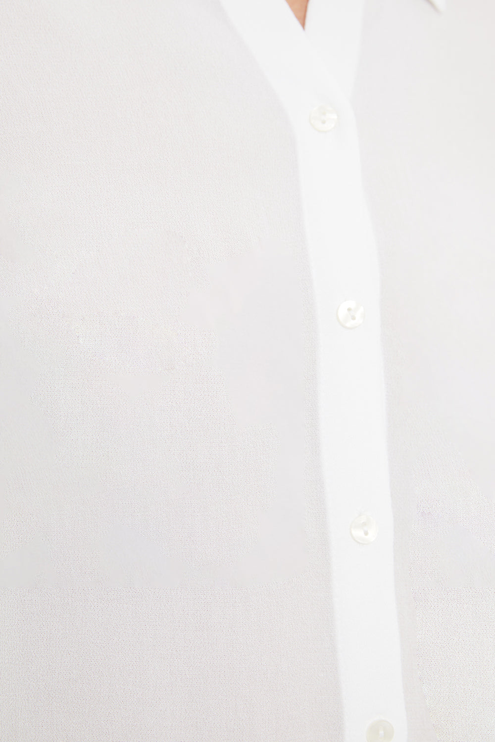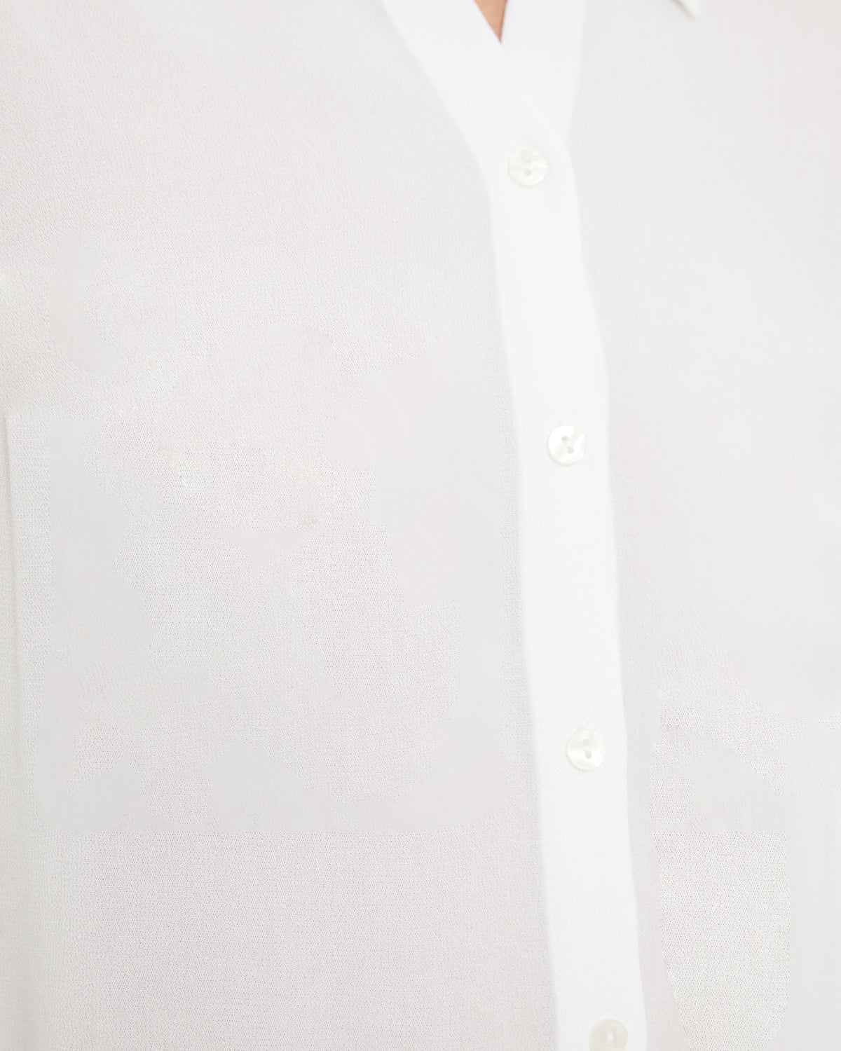 Camisa de mujer fluida oversize sin mangas, con cuello camisero y cierre frontal con botones. En tres colores. Prenda sostenible.