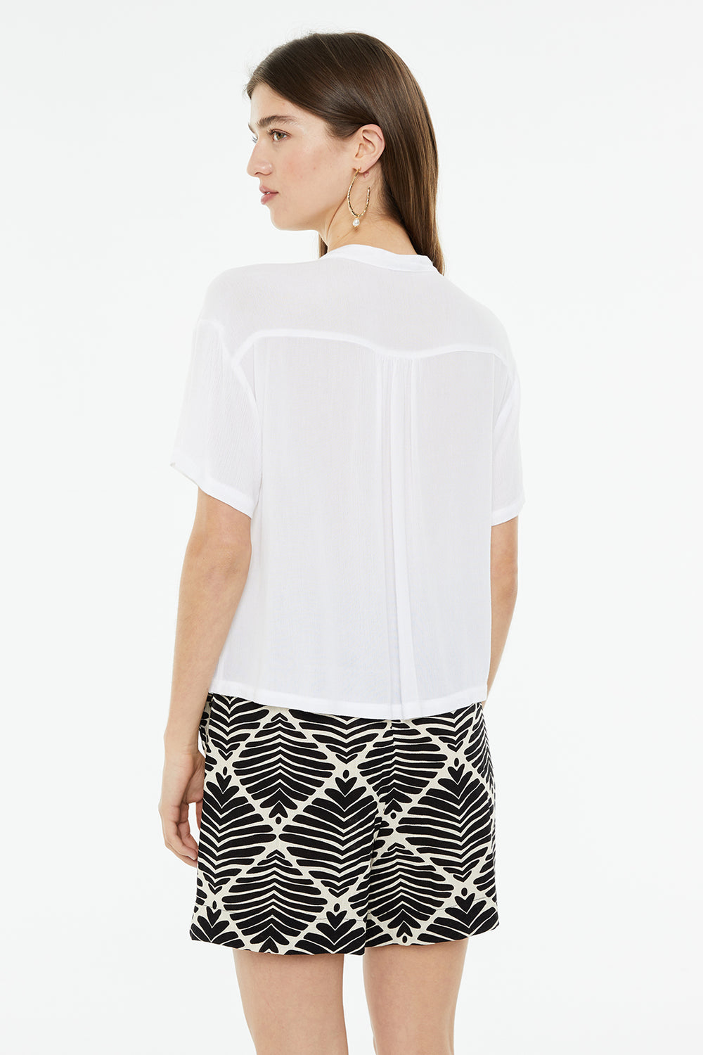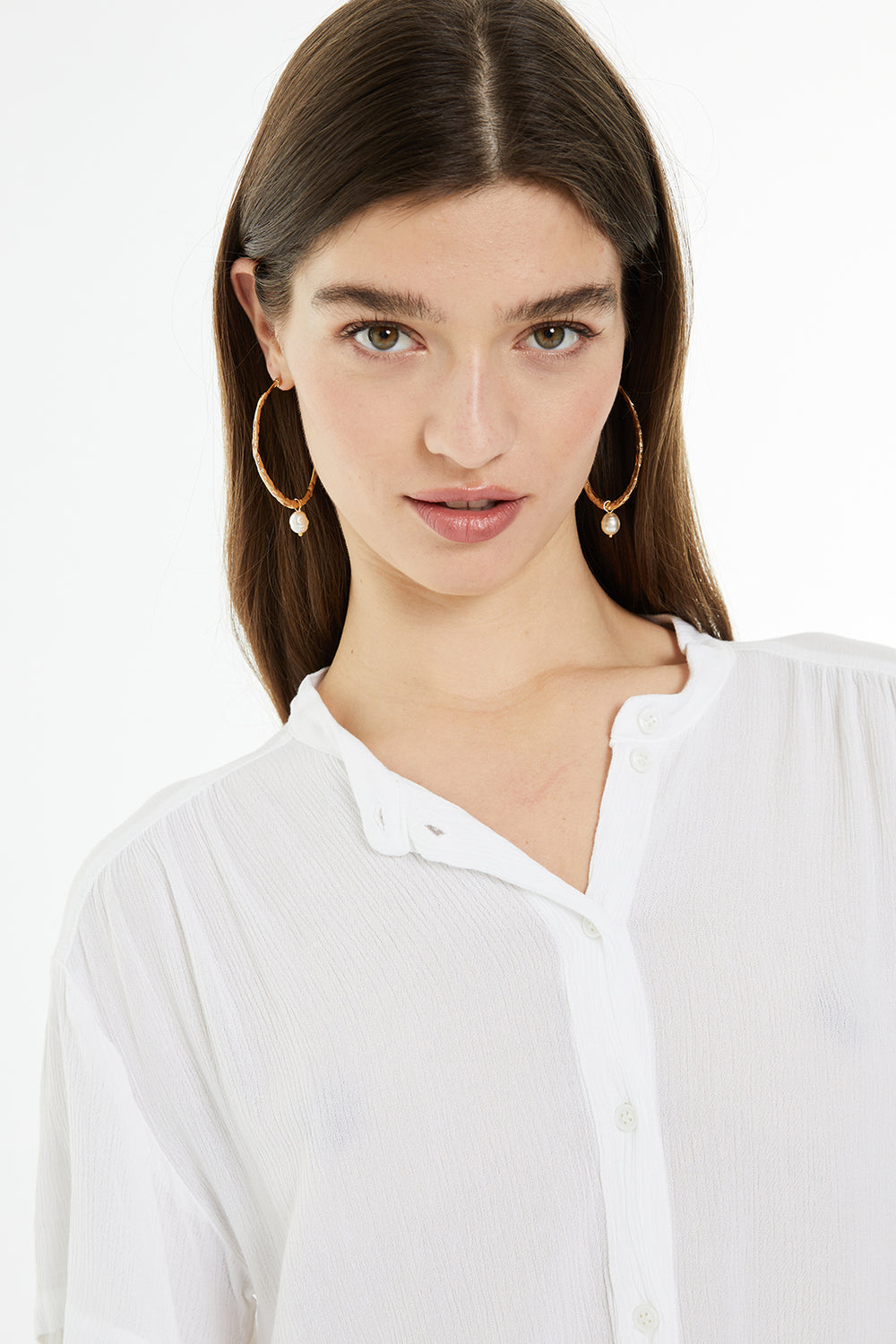 Camisa tejido bambula oversize de manga caída con cuello mao