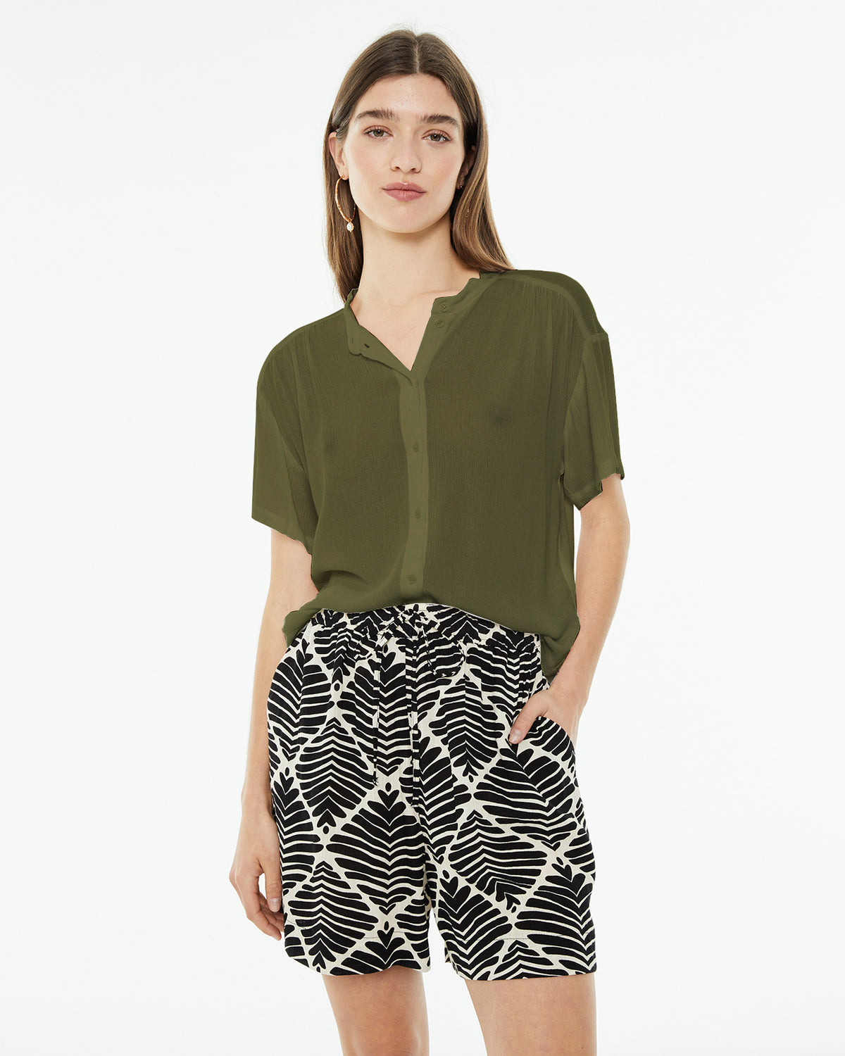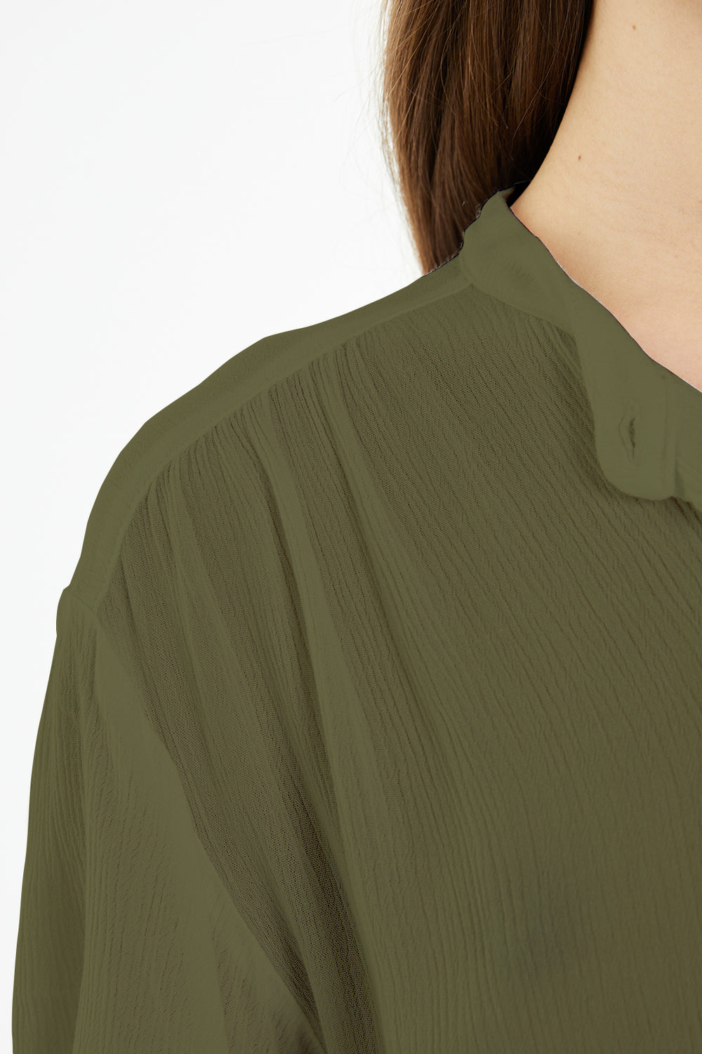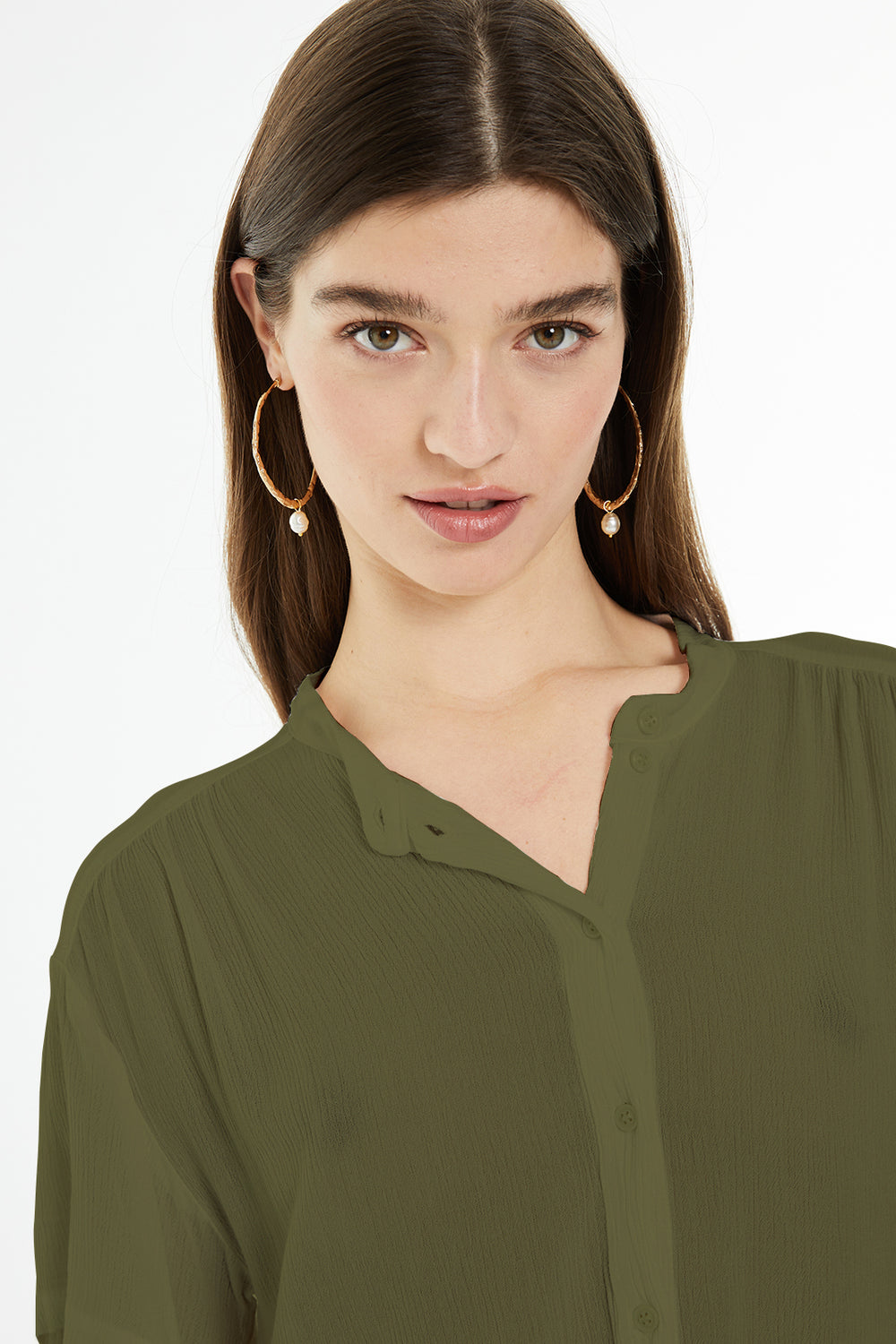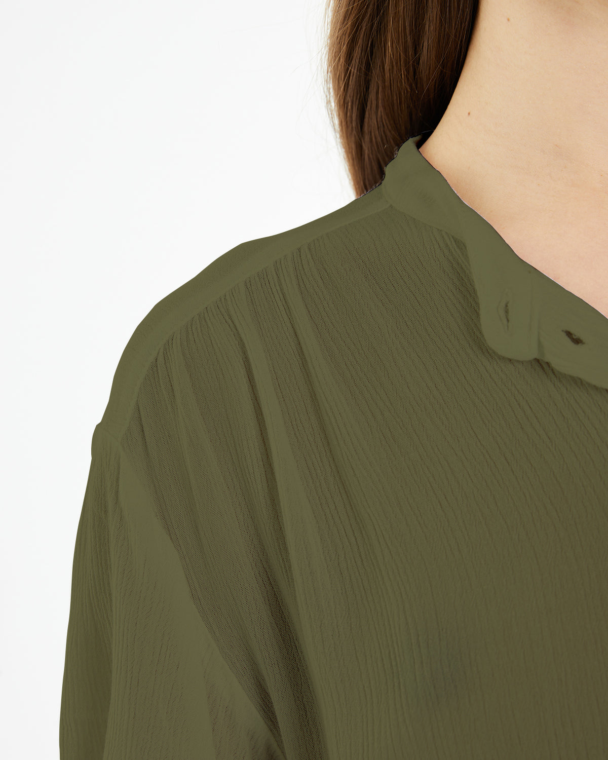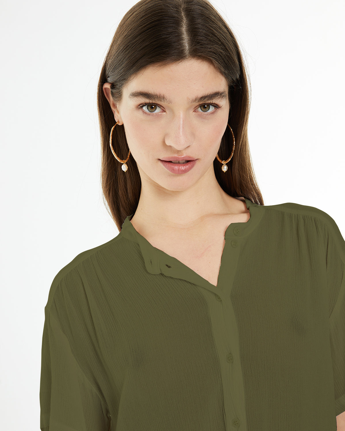 Camisa tejido bambula oversize de manga caída con cuello mao