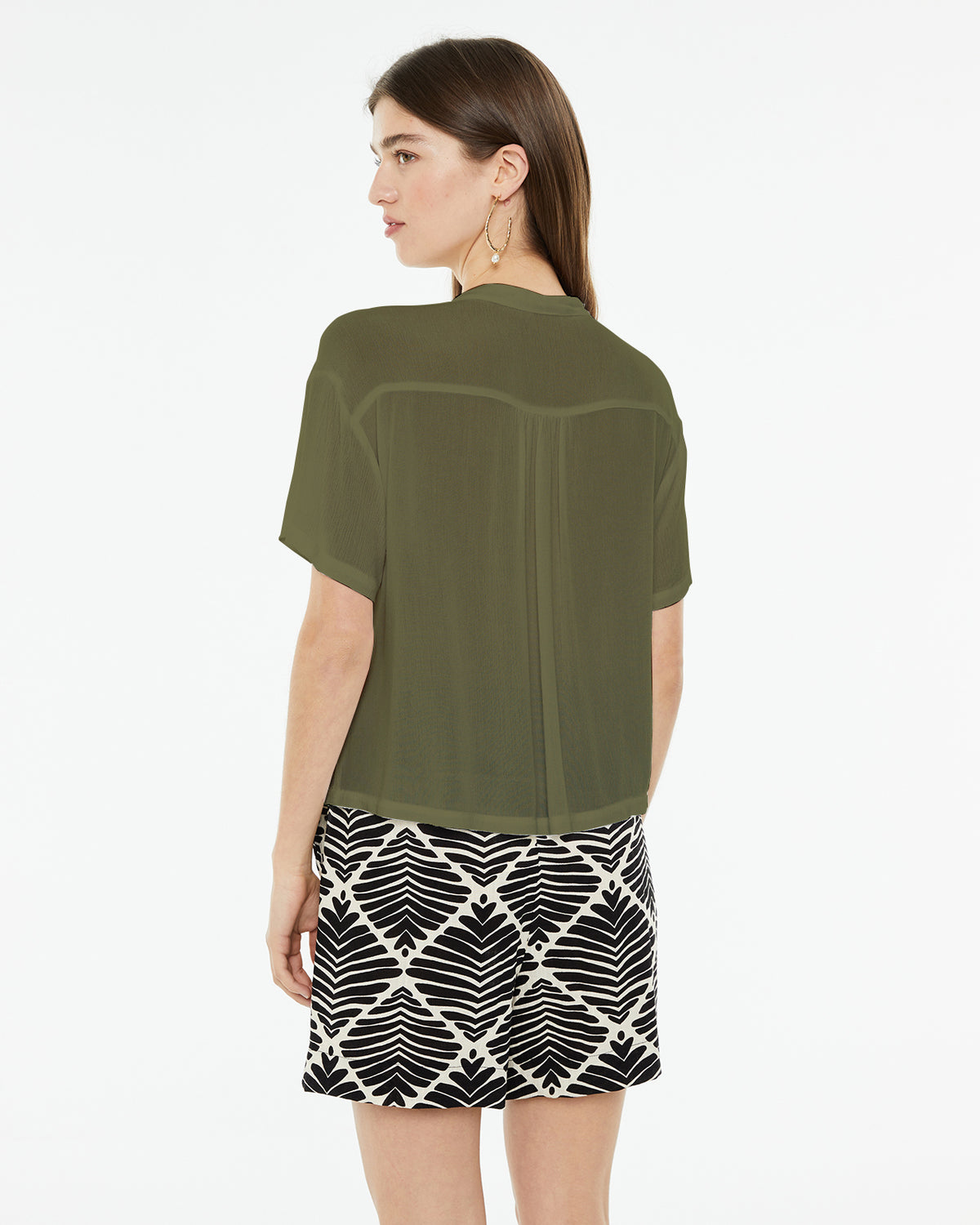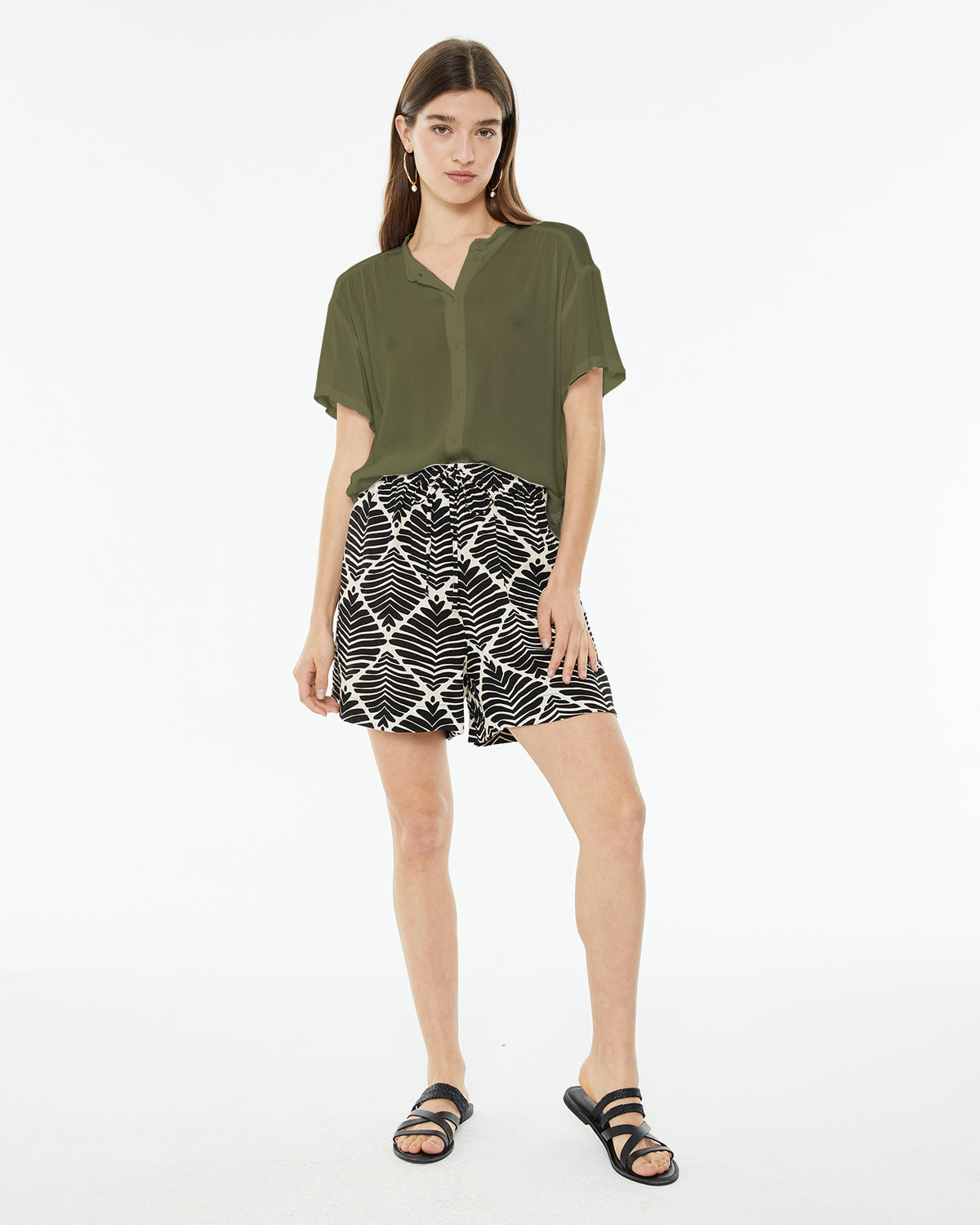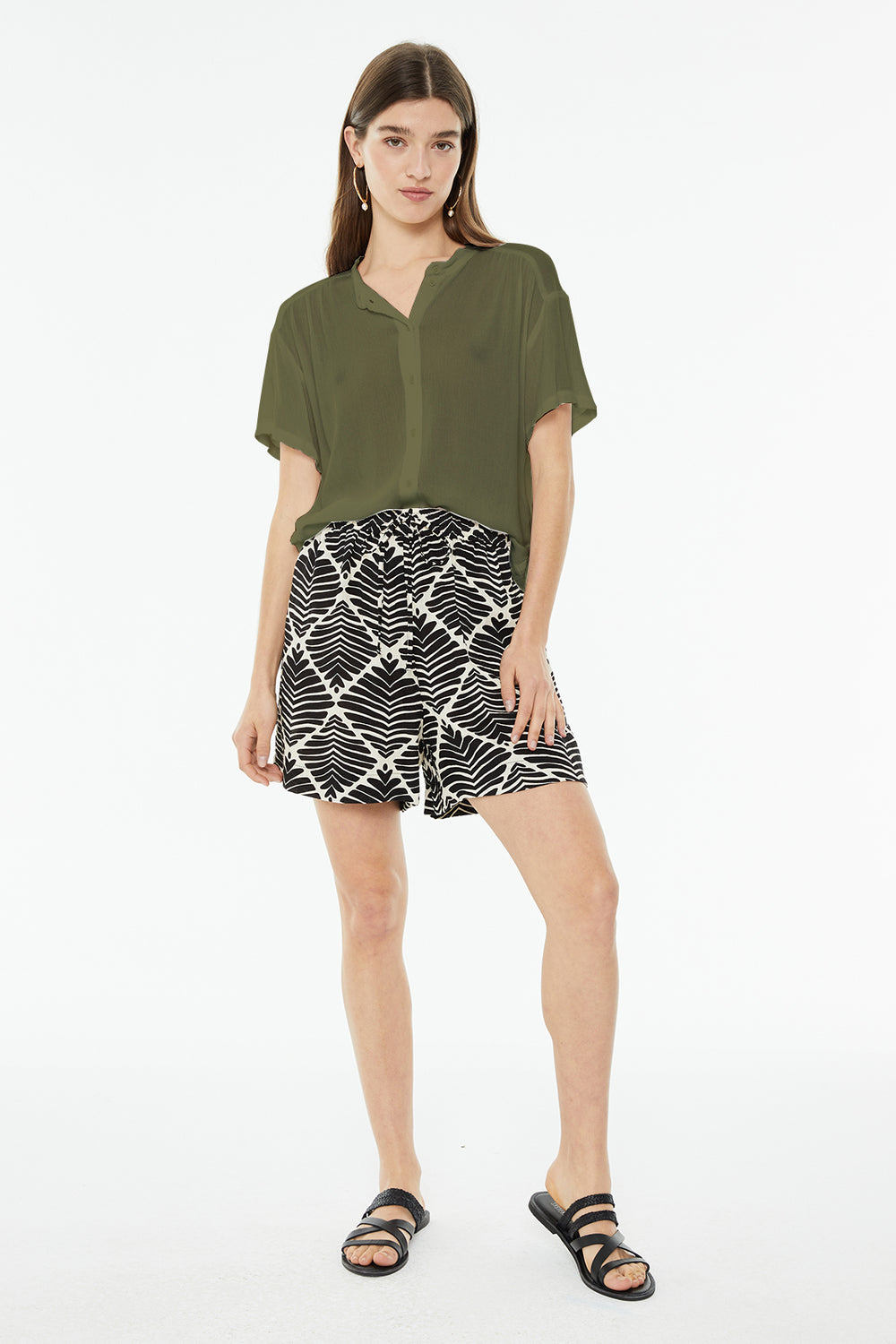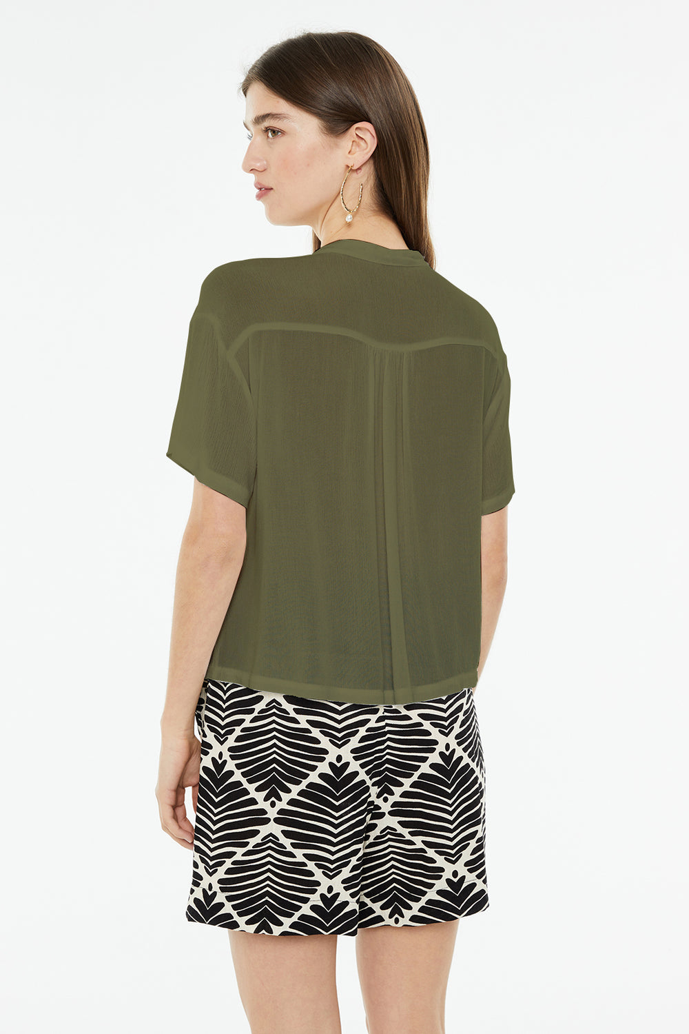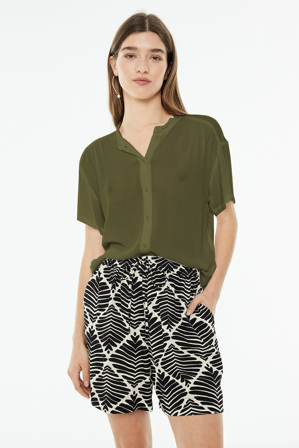 Camisa tejido bambula oversize de manga caída con cuello mao