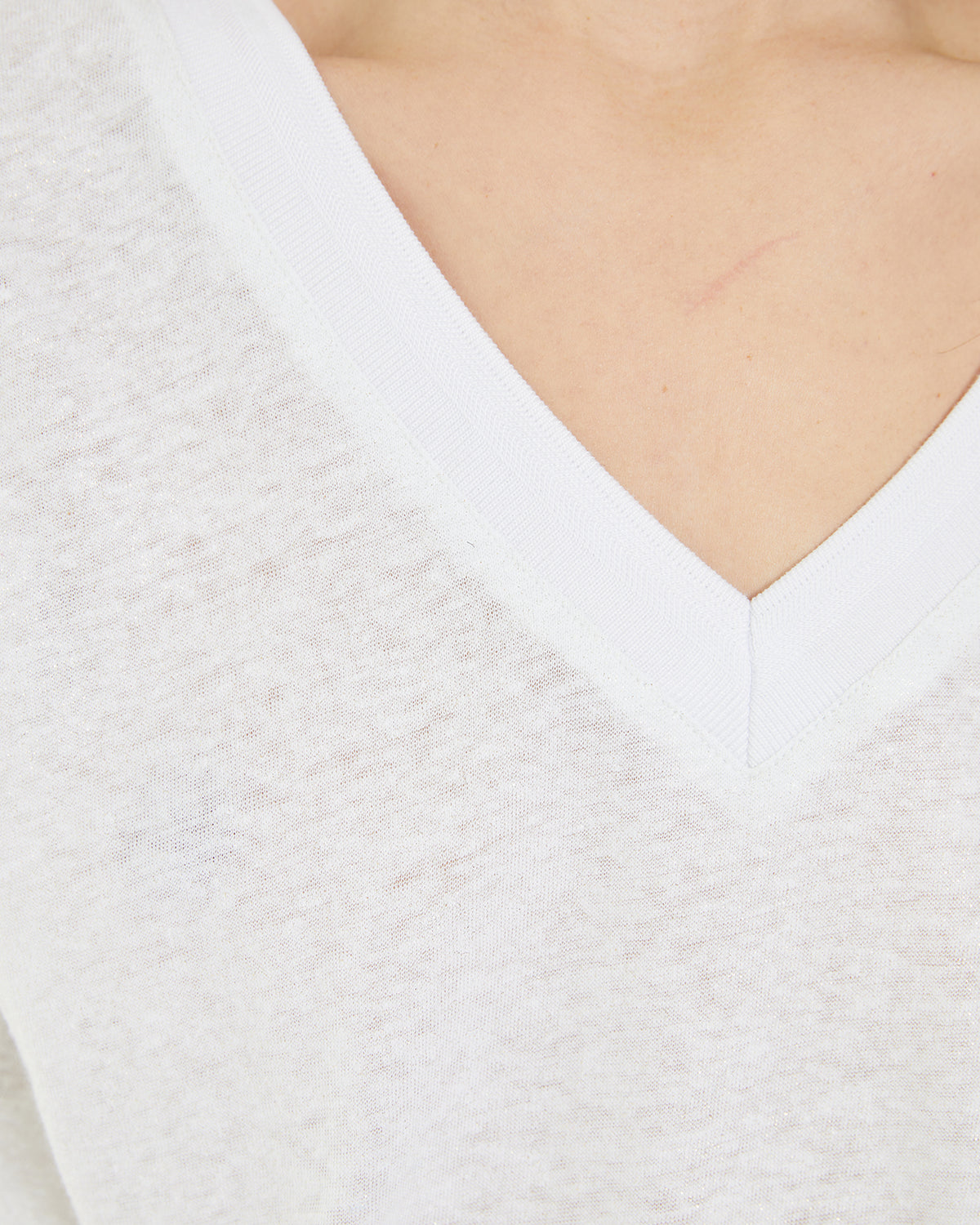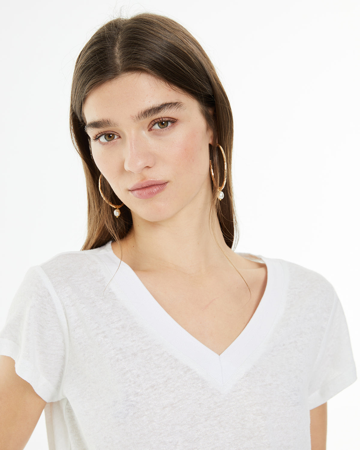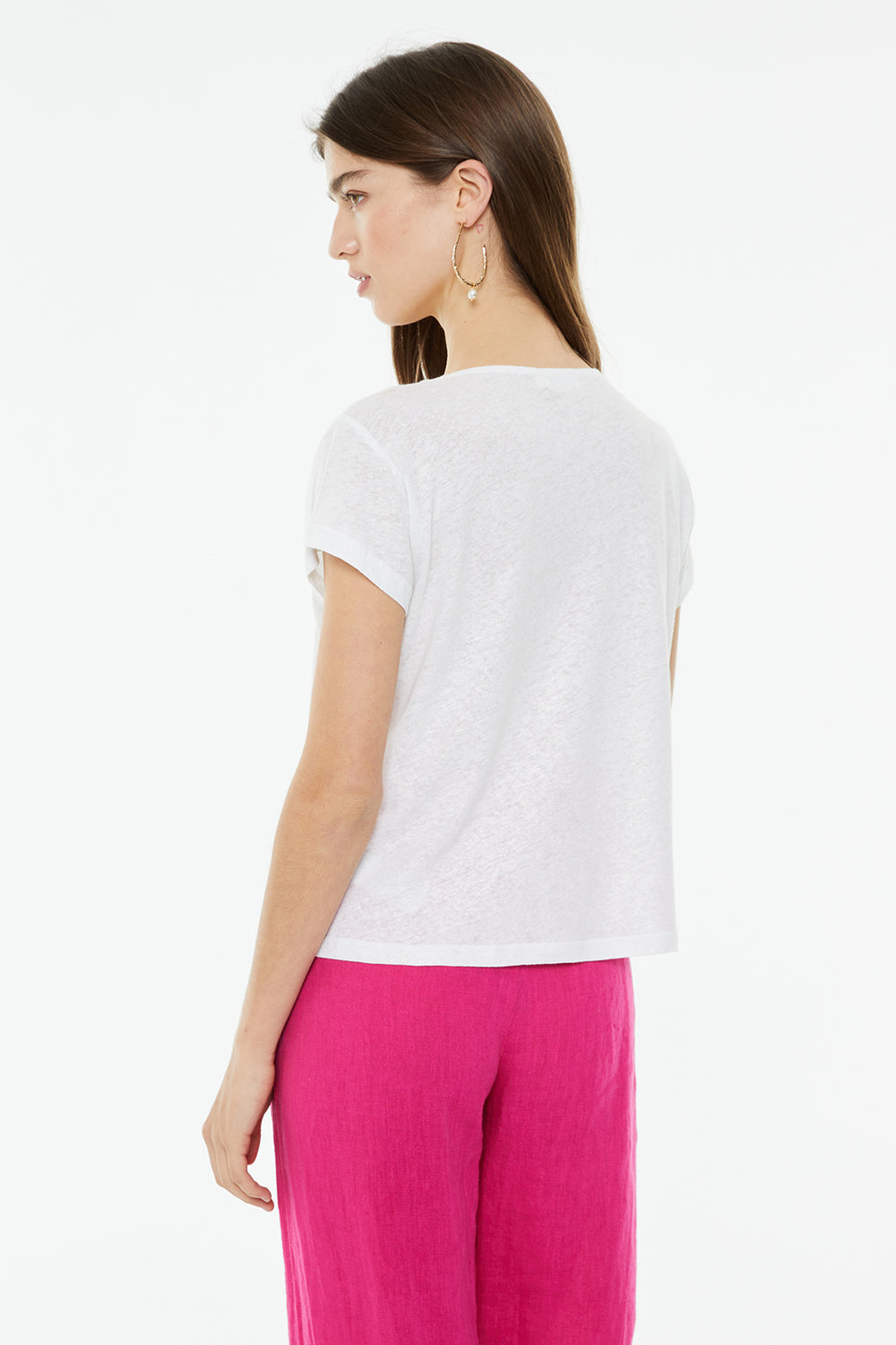 Camiseta de lino de cuello pico con detalle tira fantasía