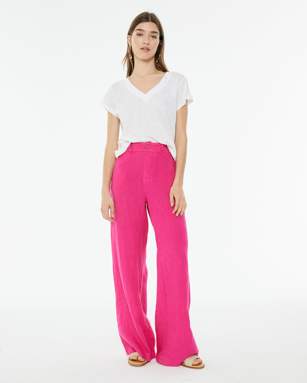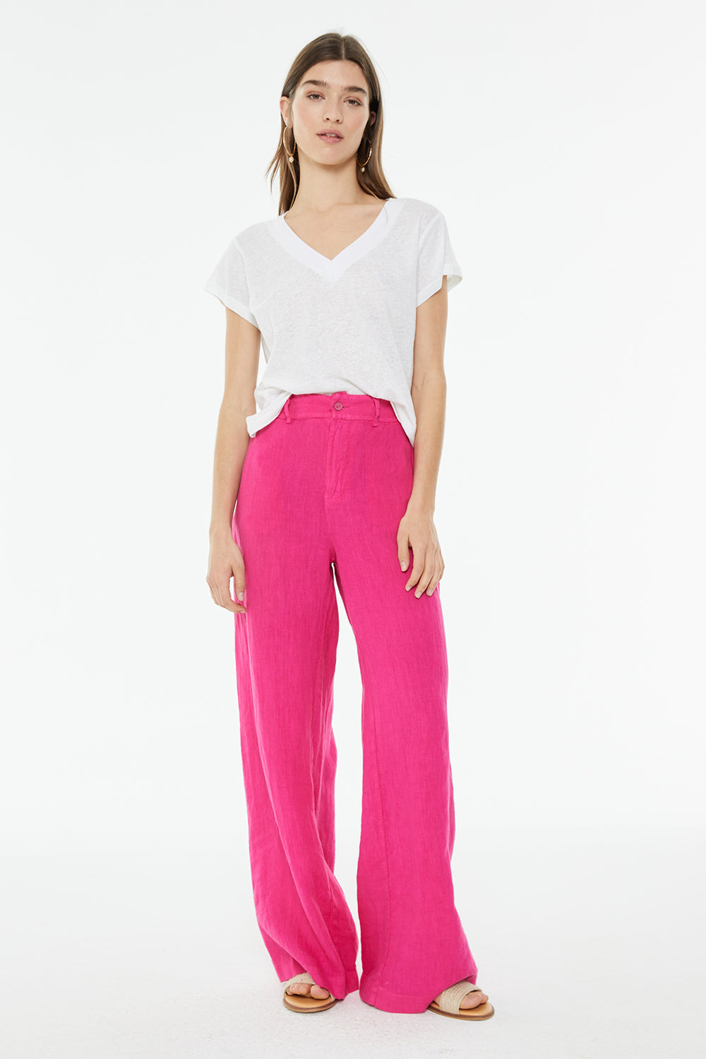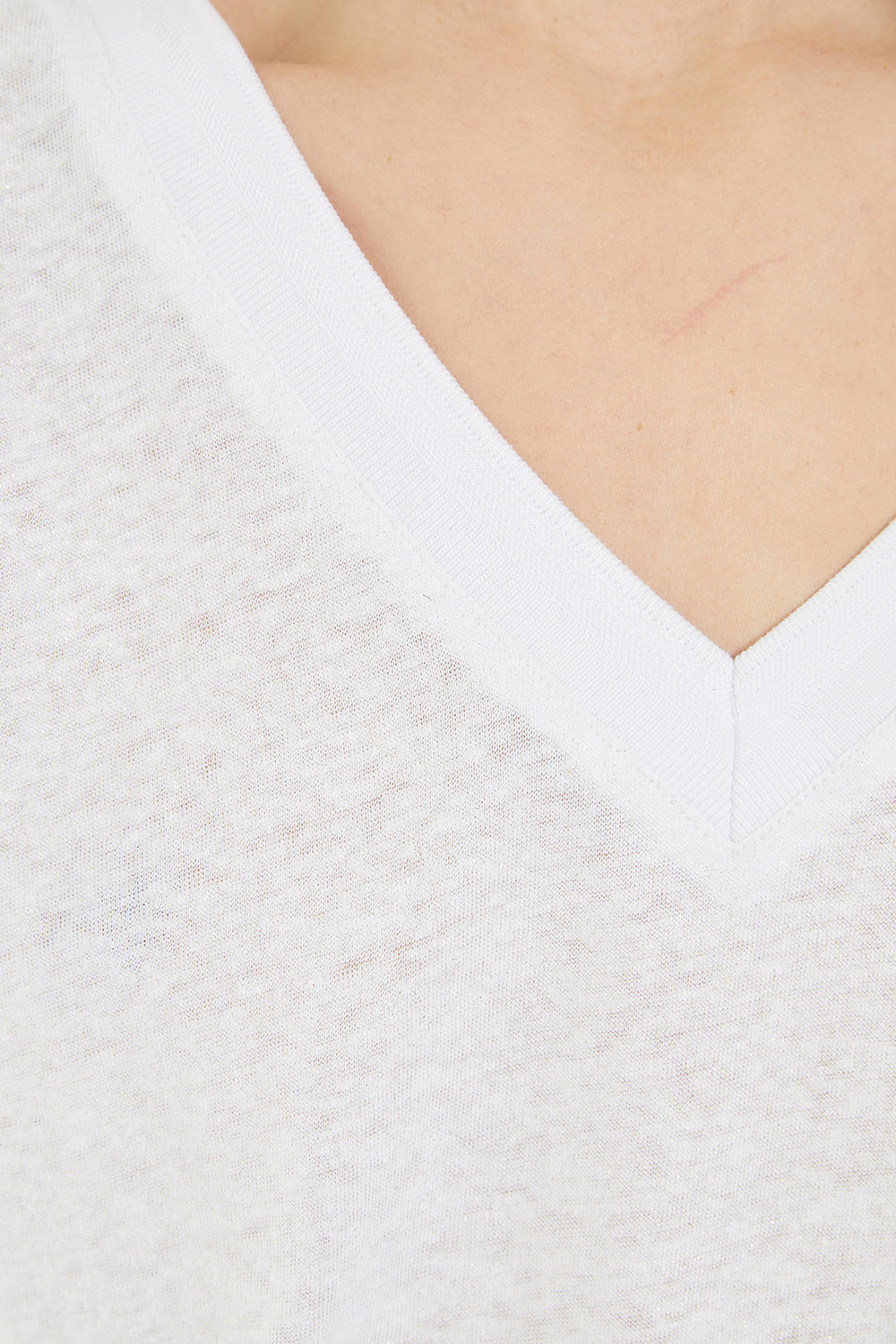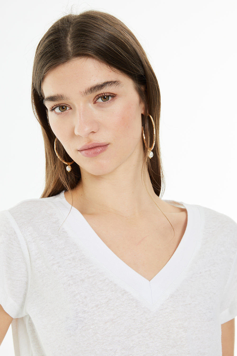 Camiseta de lino de cuello pico con detalle tira fantasía