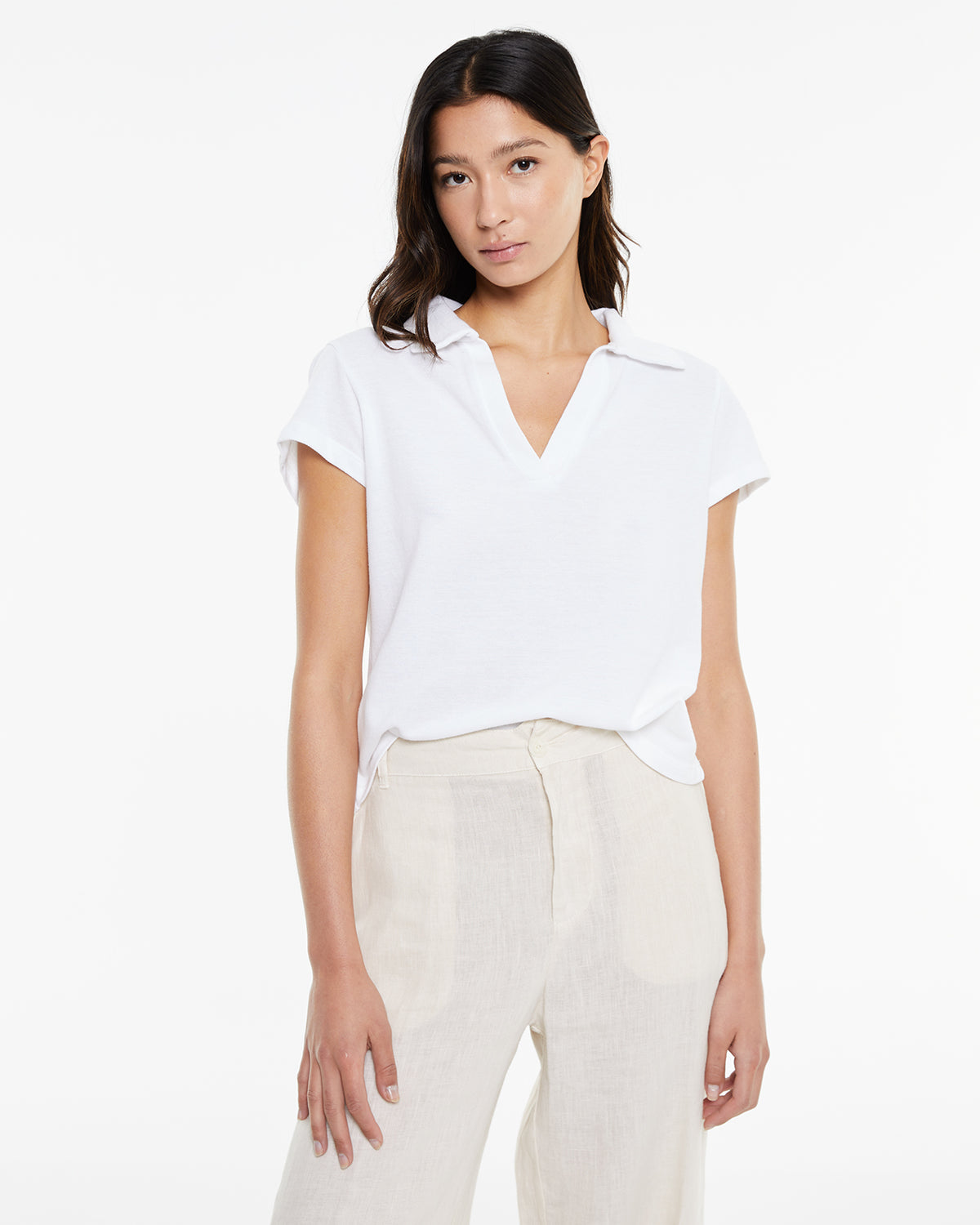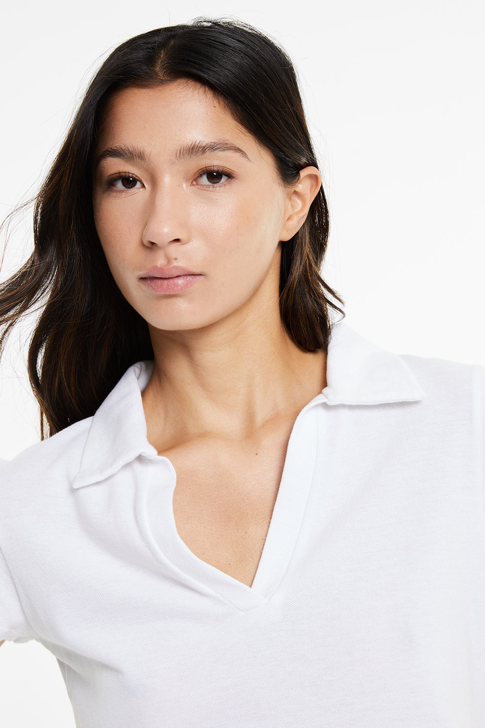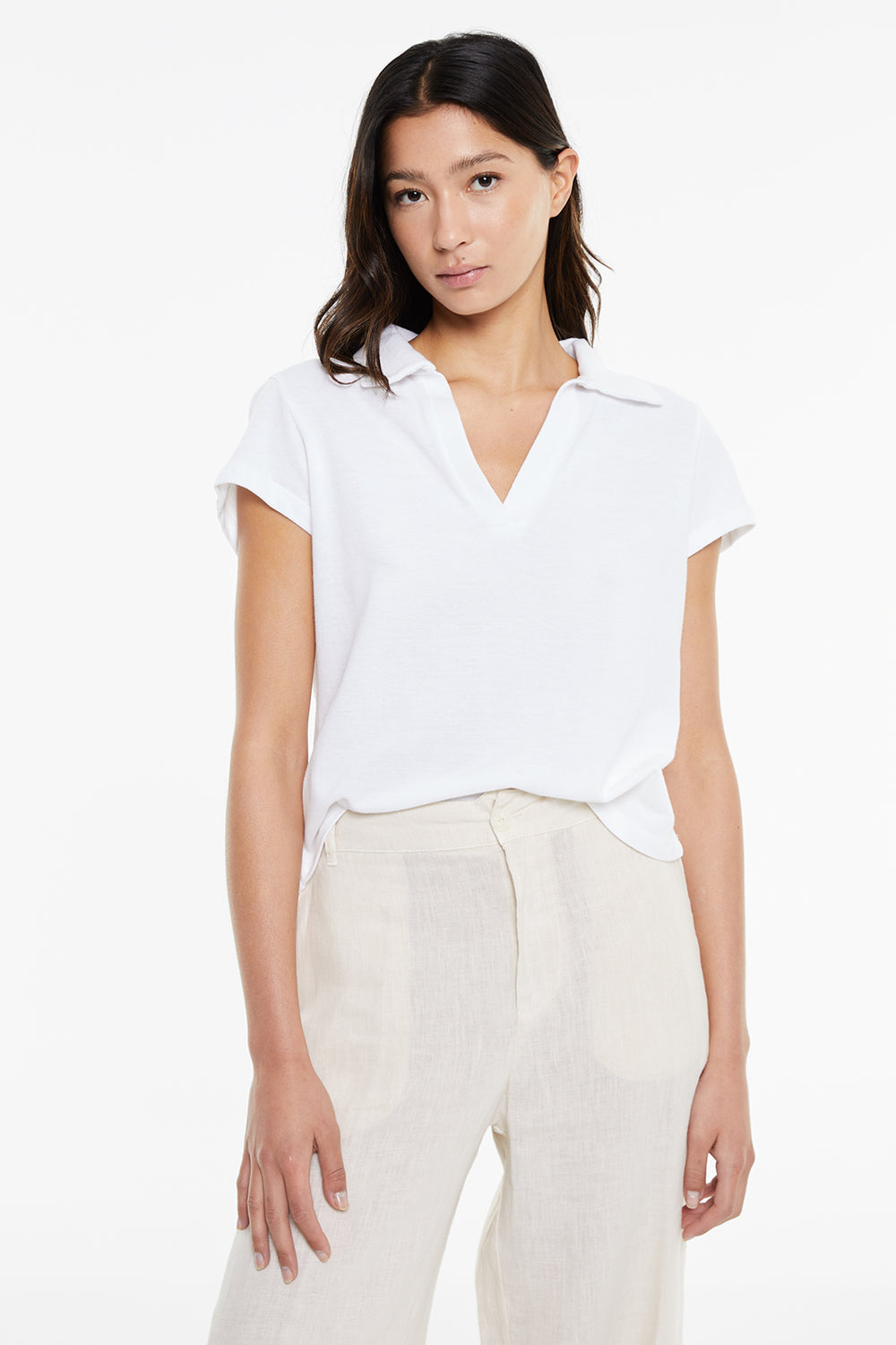 Polo de mujer con tejido camiseta de manga corta y escote polo. Prenda Sostenible.