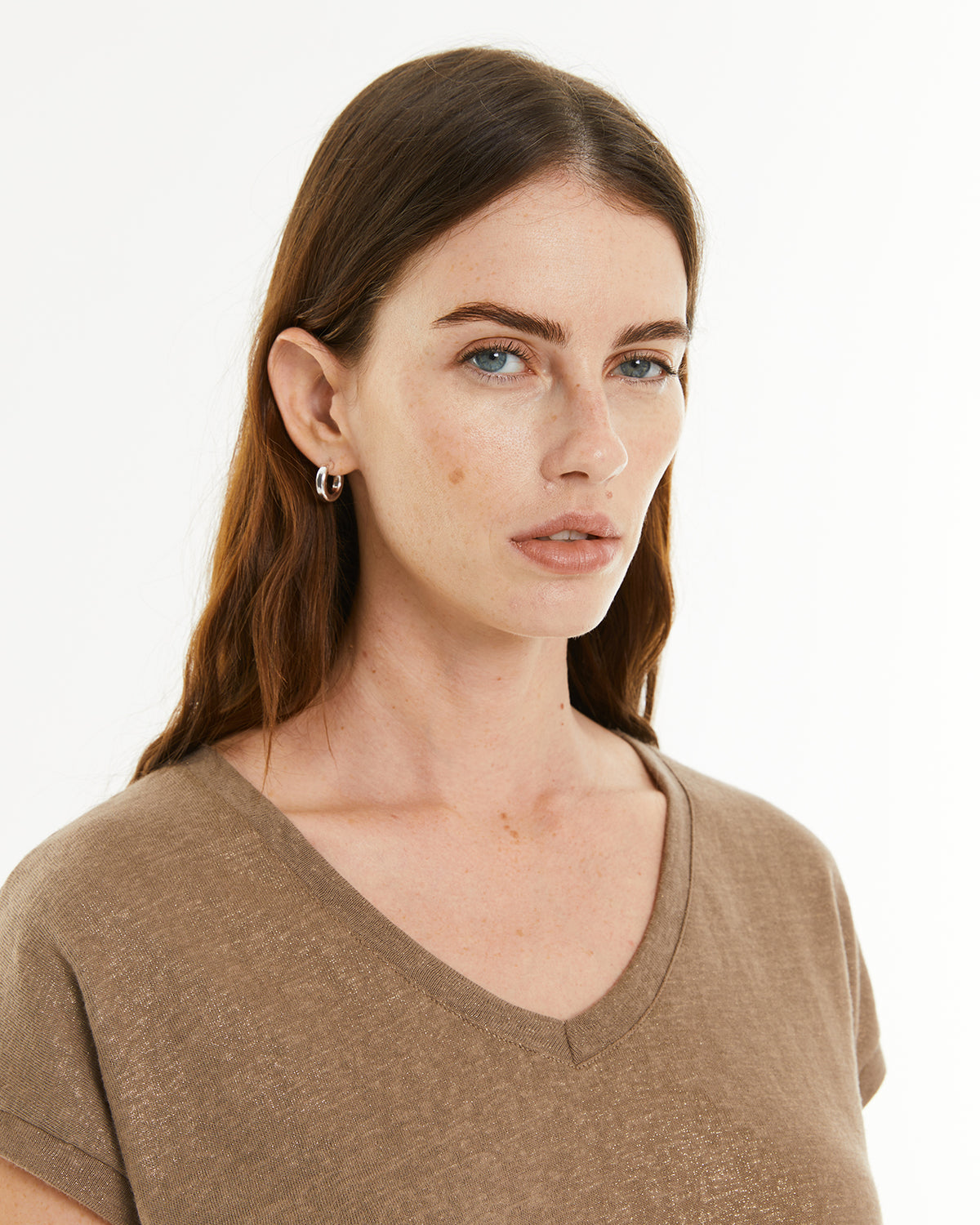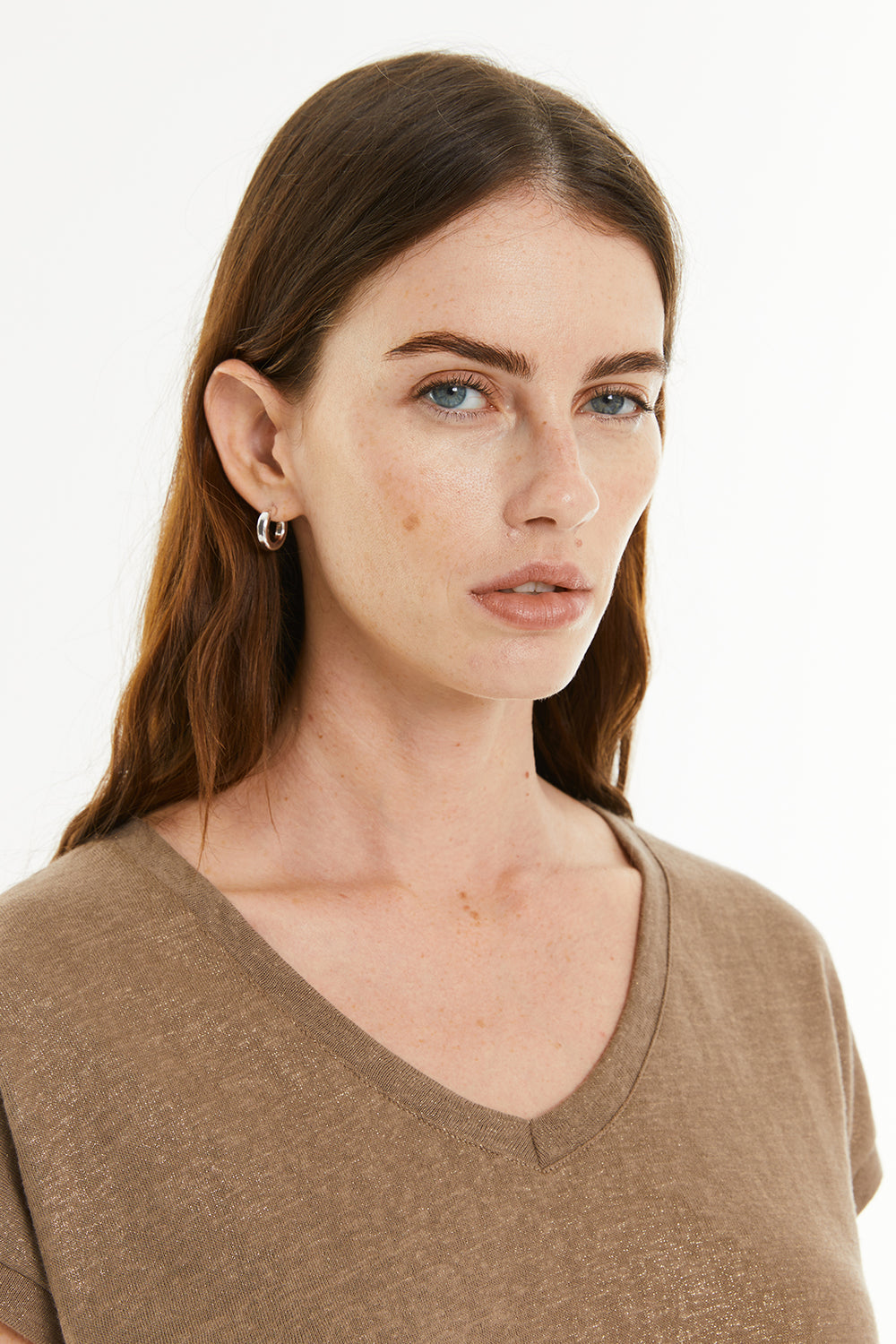 Camiseta escote pico con detalle foil
