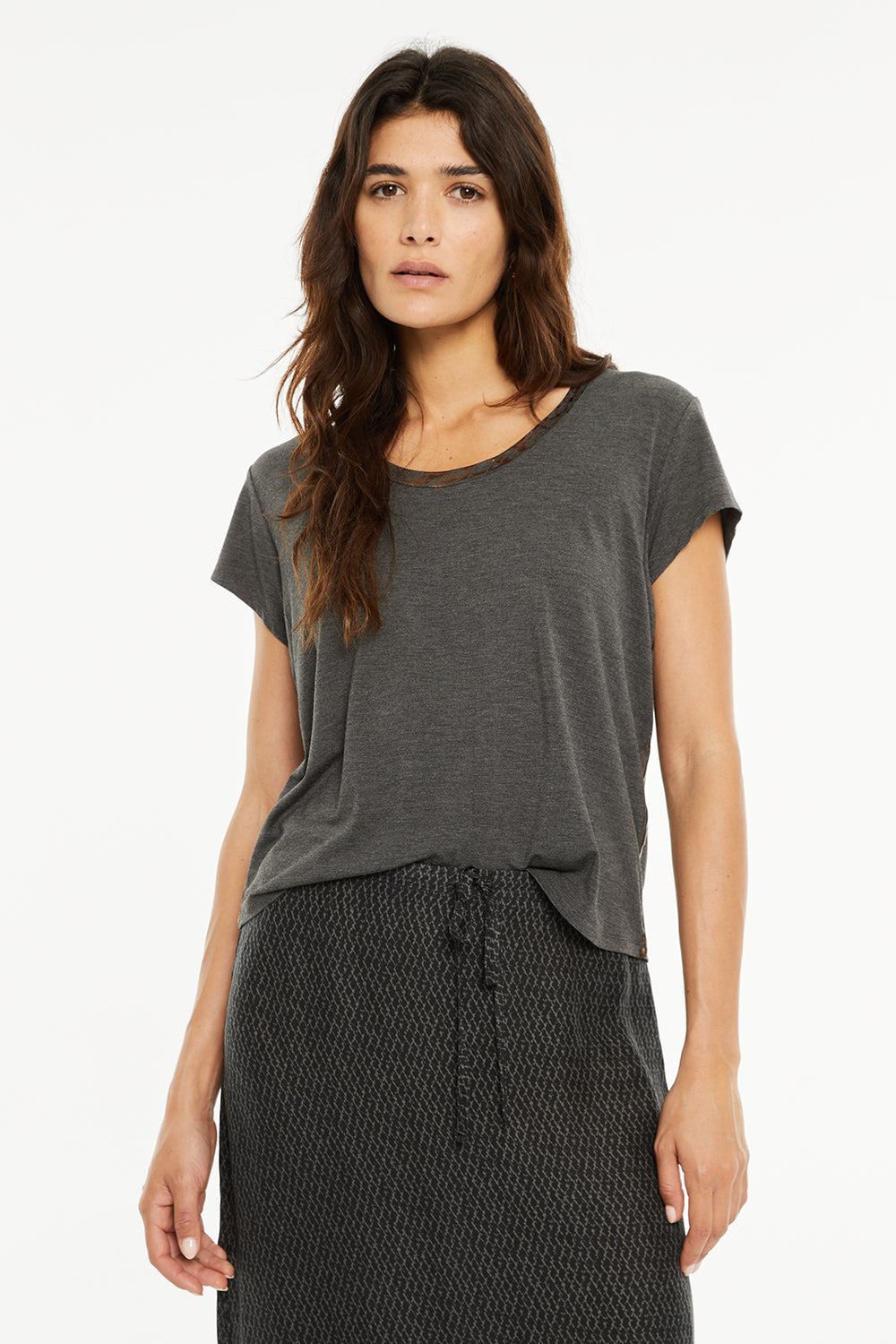 Camiseta de mujer de manga corta, escote redondo y detalle de foil.