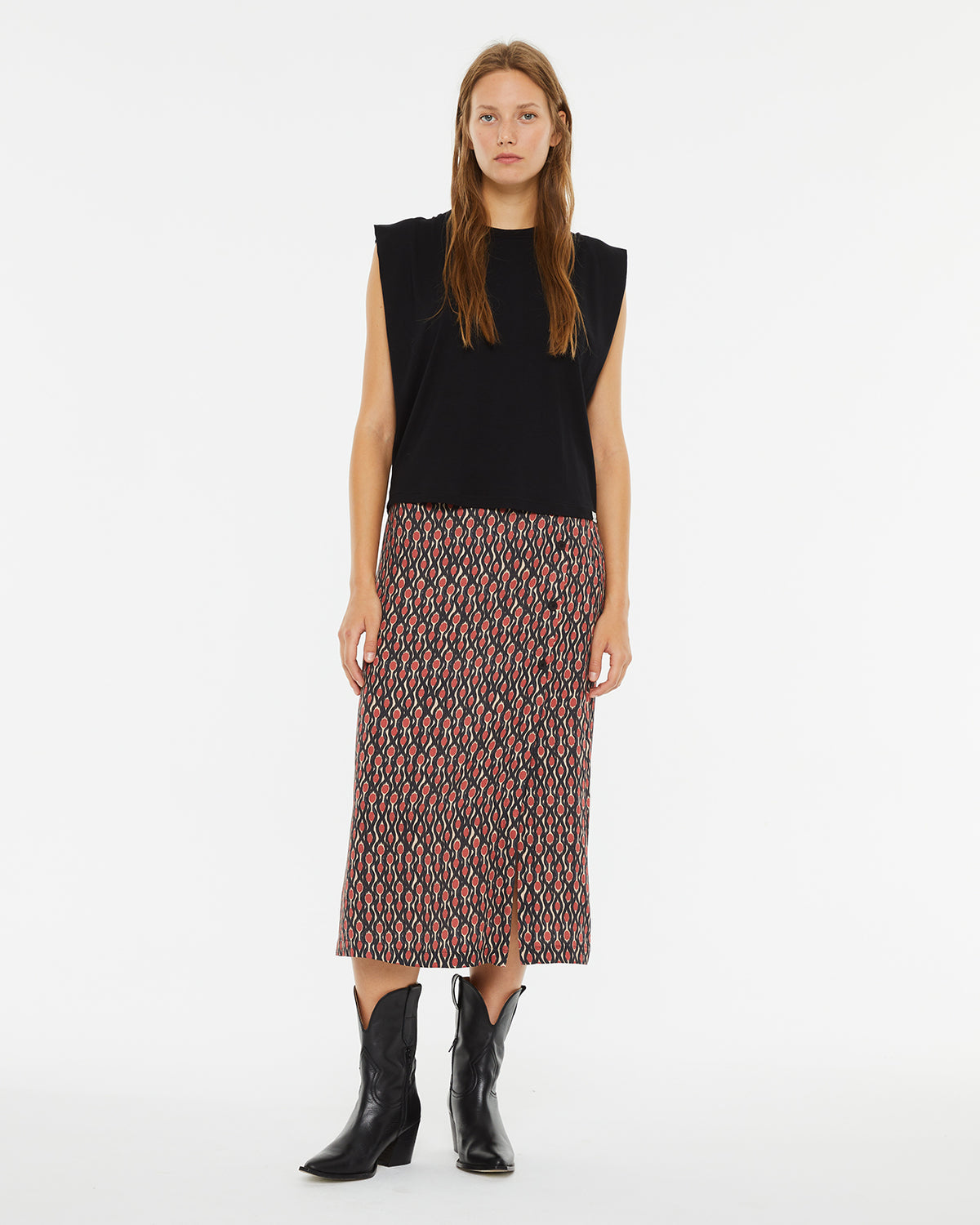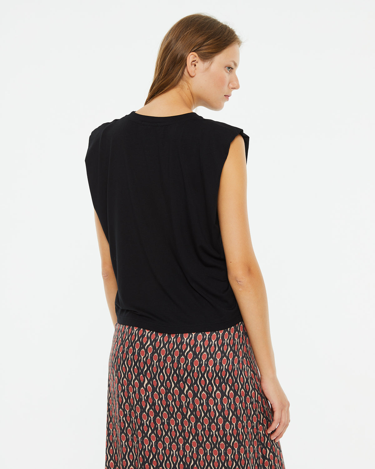 Camiseta de mujer, tallaje cuadrado , cuello redondo y sin mangas.