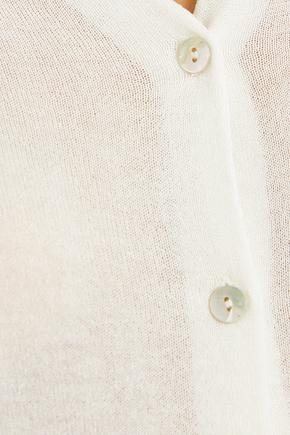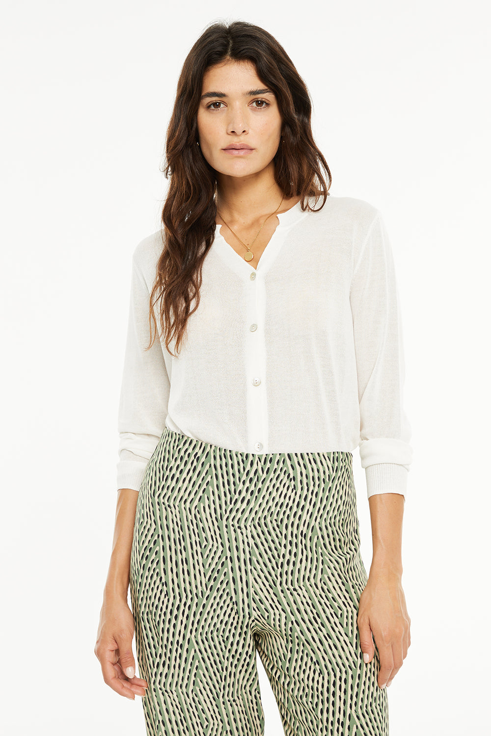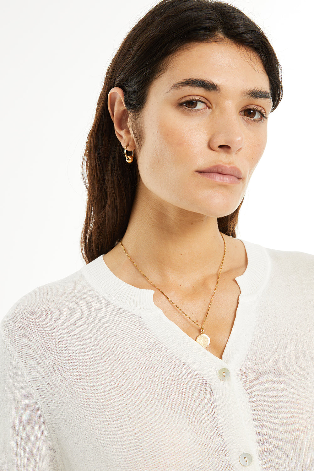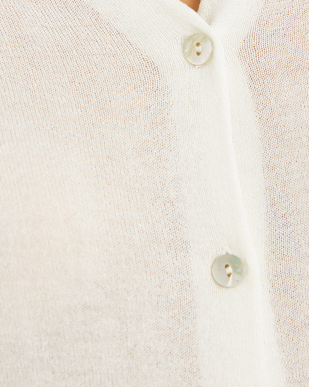 Cárdigan básico crop de mujer de manga corta con cierre frontal con botones.