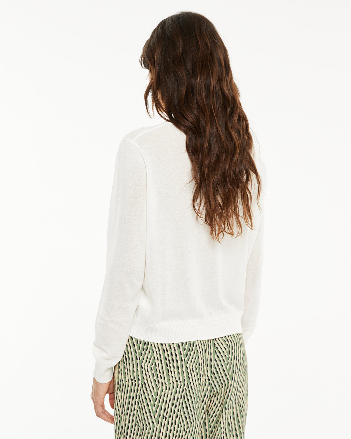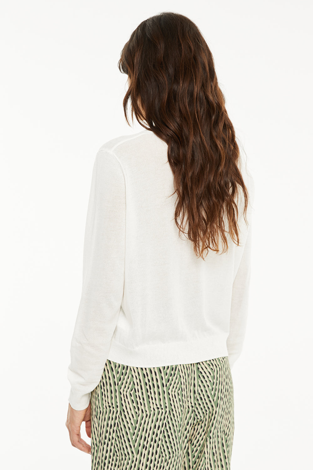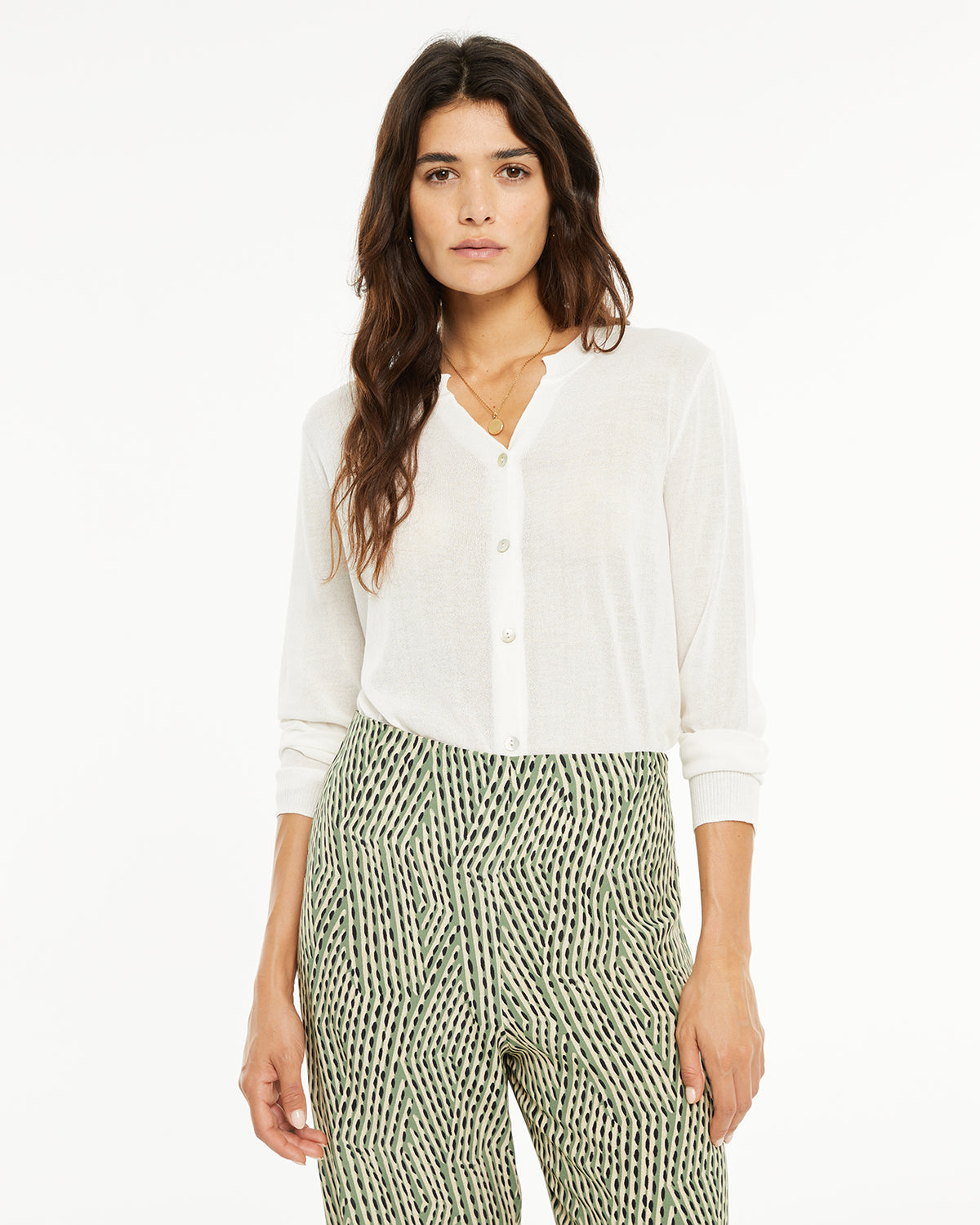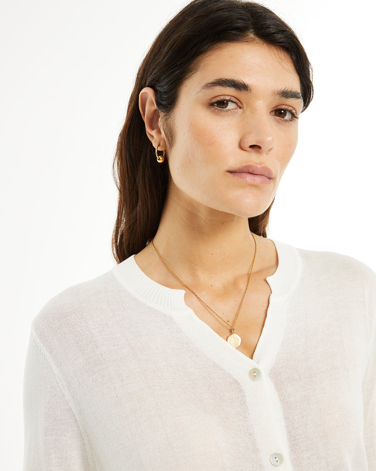 Cárdigan básico crop de mujer de manga corta con cierre frontal con botones.