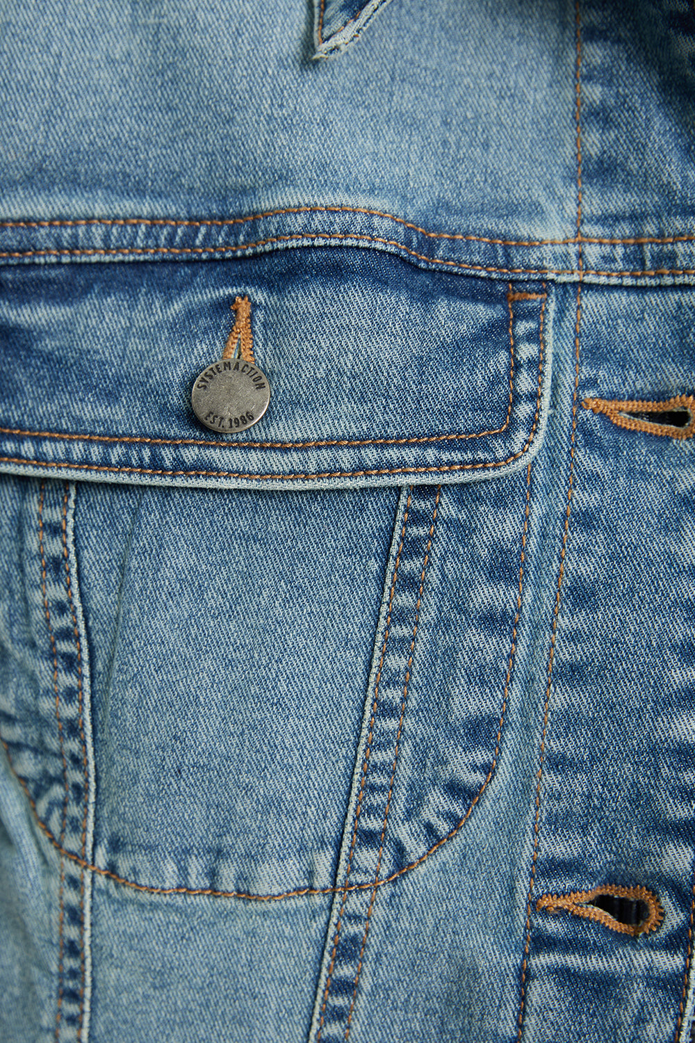 Cazadora denim manga larga con cuello camisero y botones plata