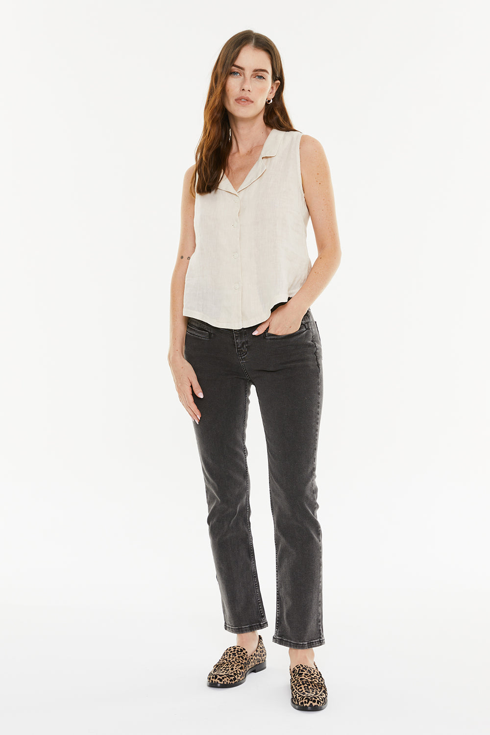 Chaleco de lino recto con cuello solapa