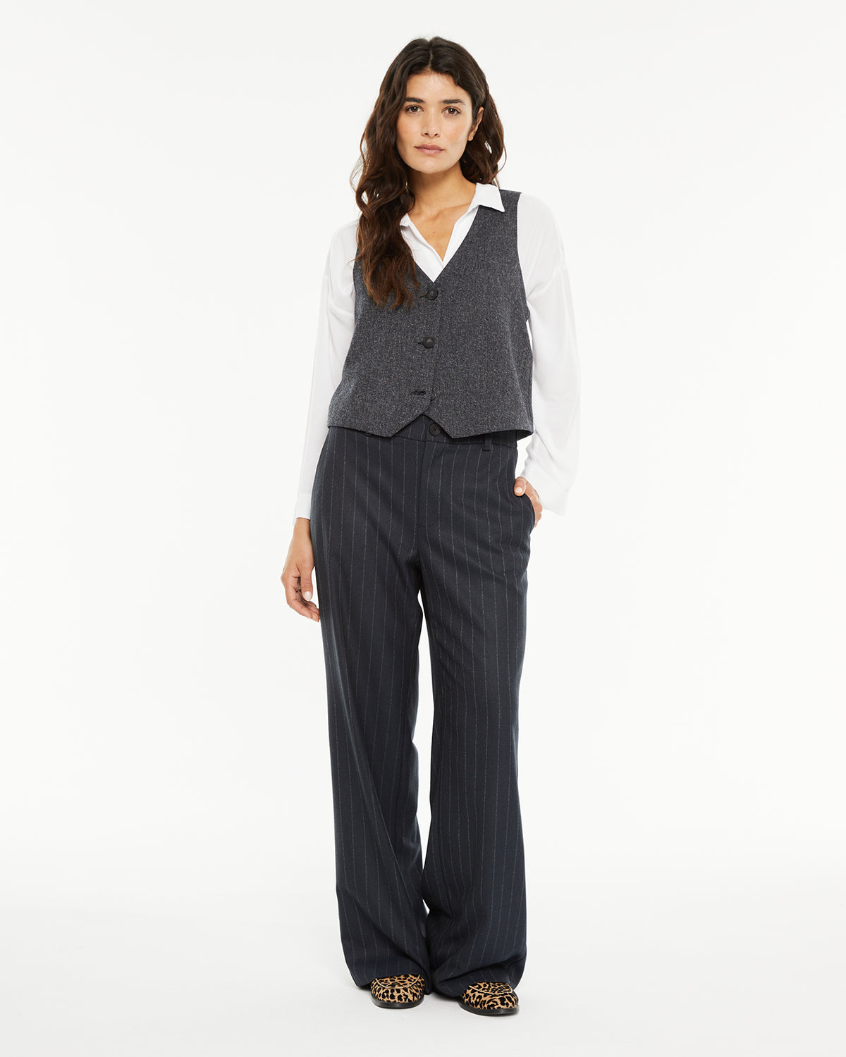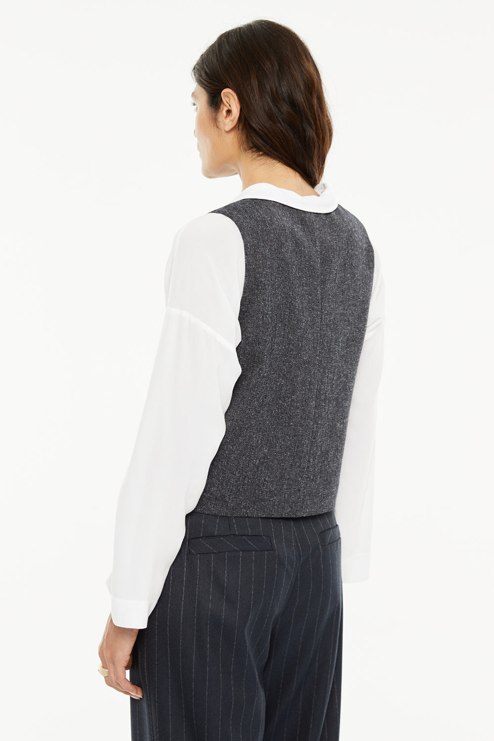Chaleco de mujer, escote pico, pinzas en el delantero y cierre con botones.