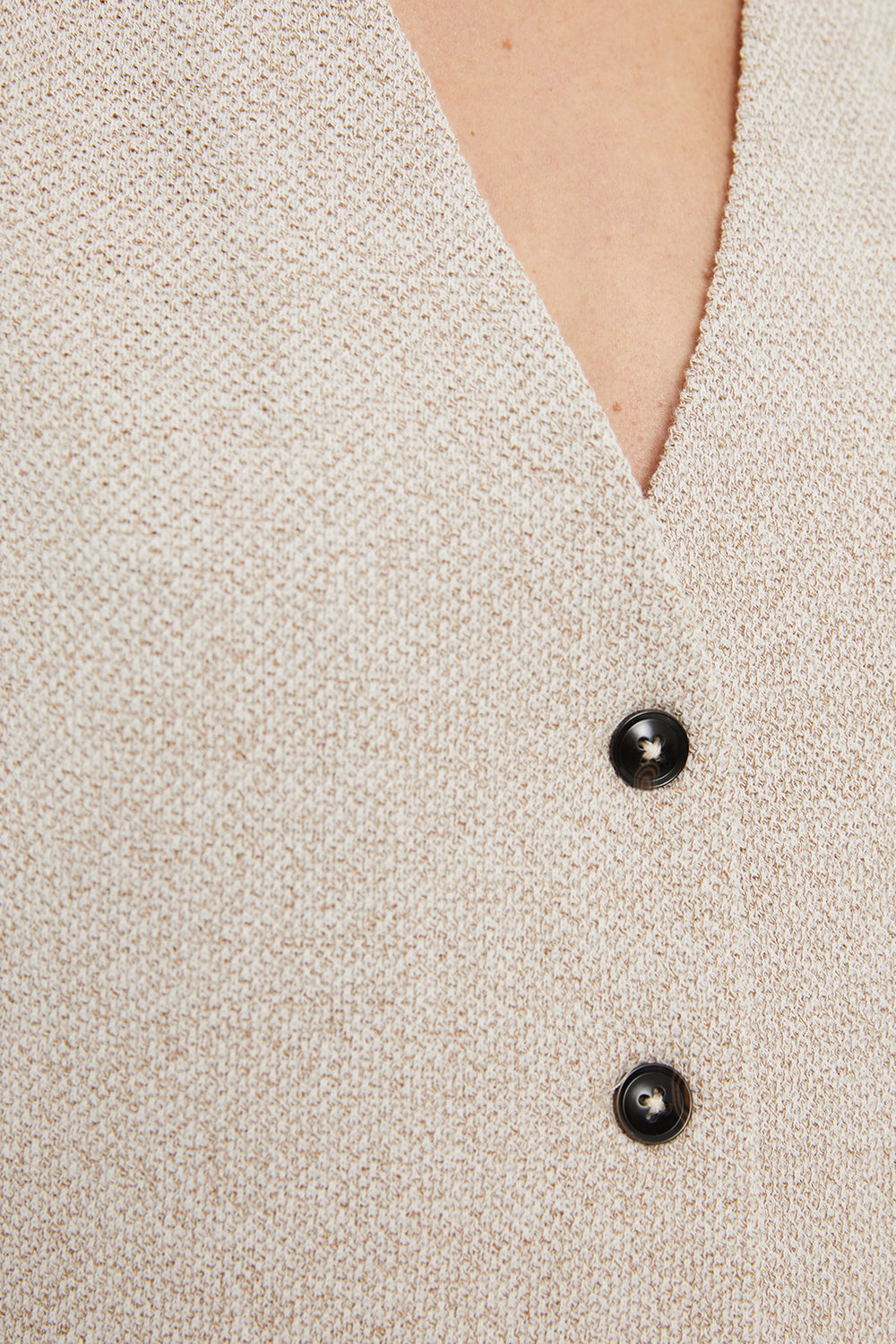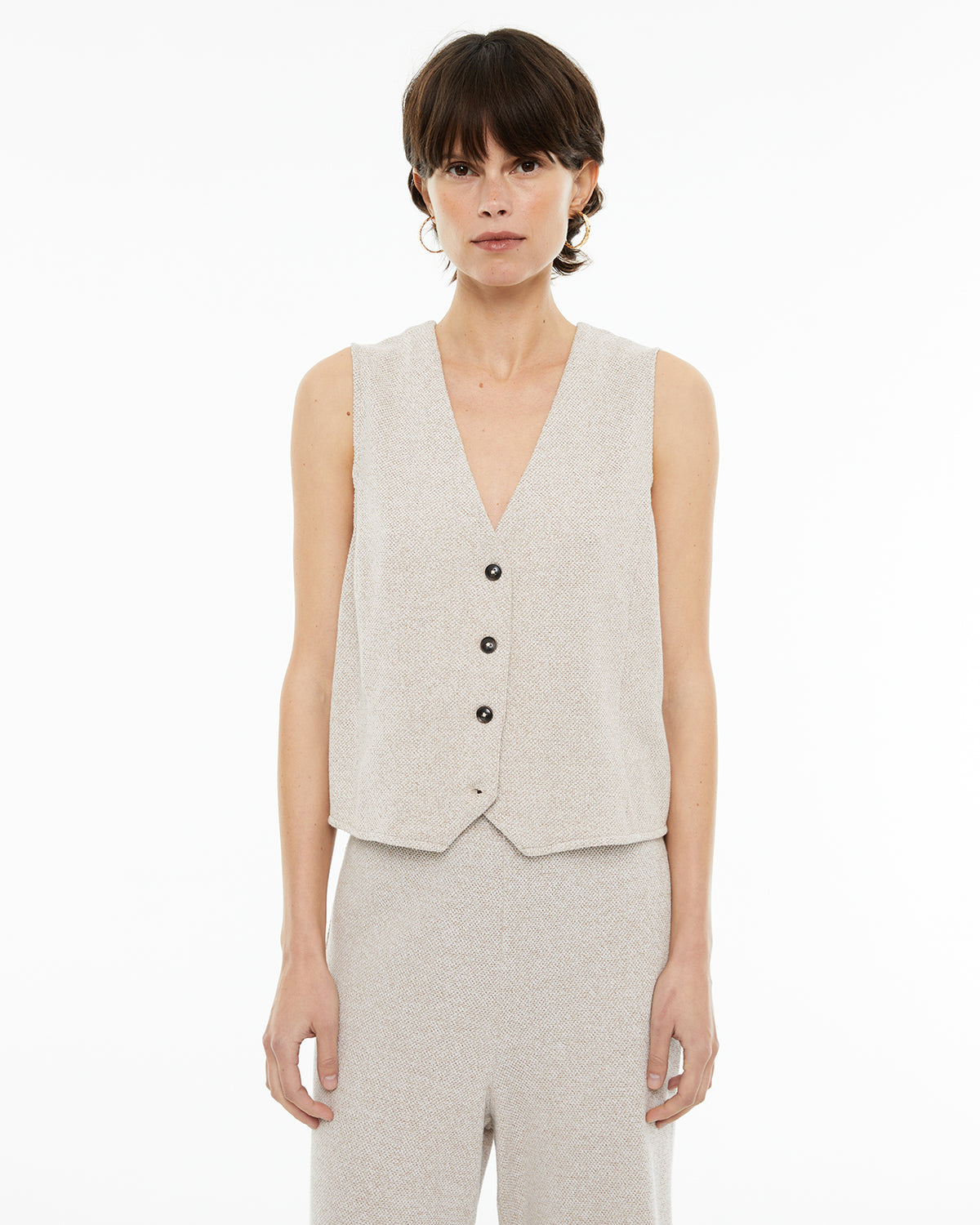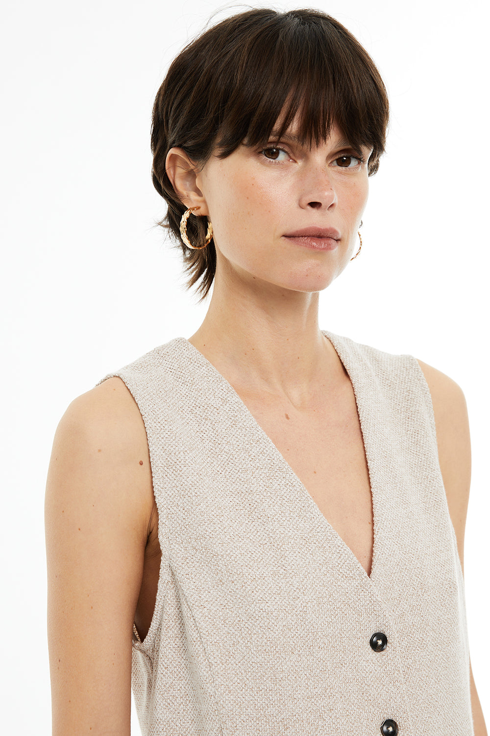 Chaleco de mujer confort tipo sastre con costadillos y cierre frontal con botones. Prenda sostenible.