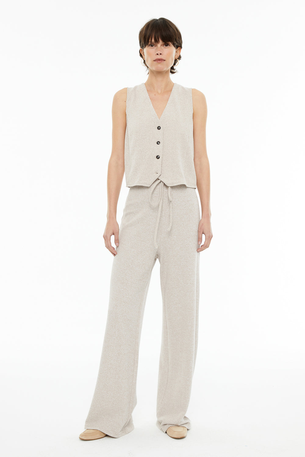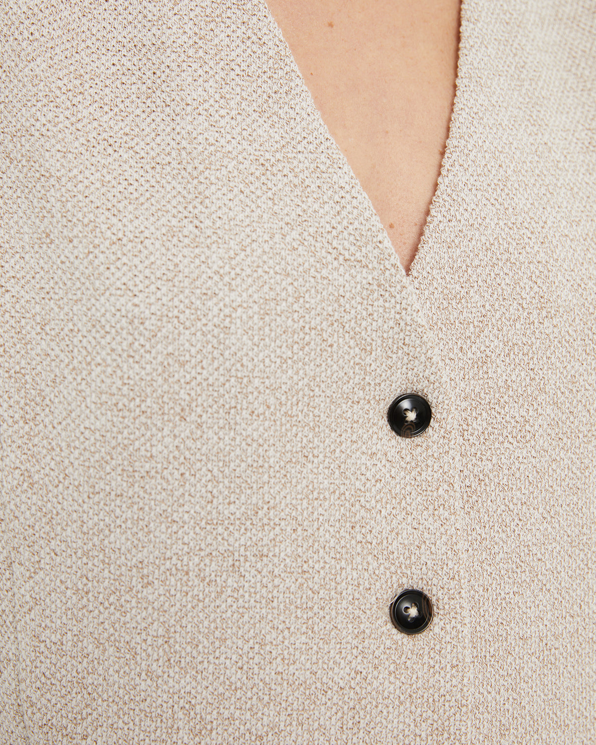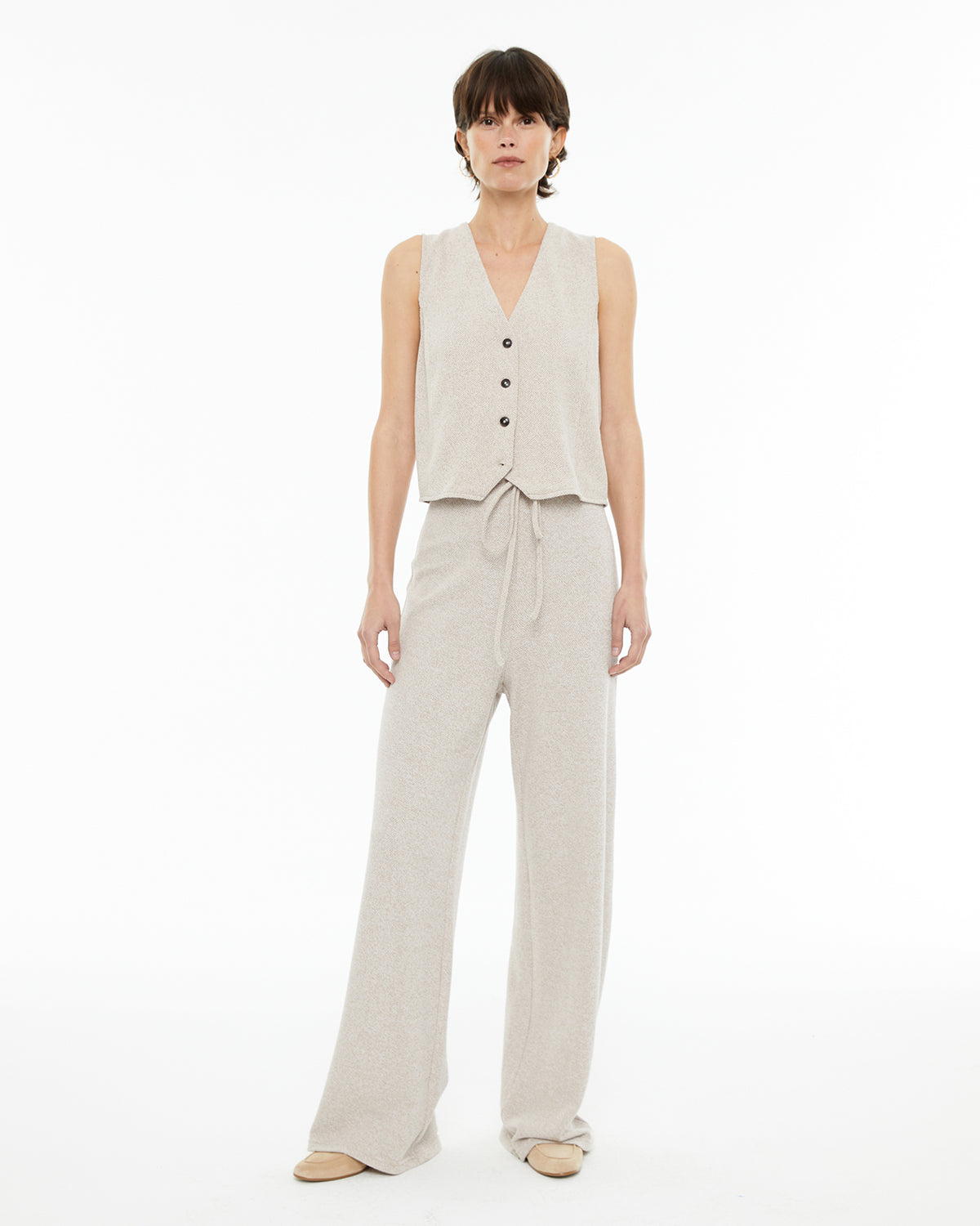 Chaleco de mujer confort tipo sastre con costadillos y cierre frontal con botones. Prenda sostenible.