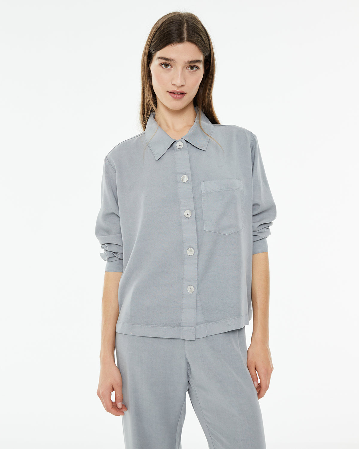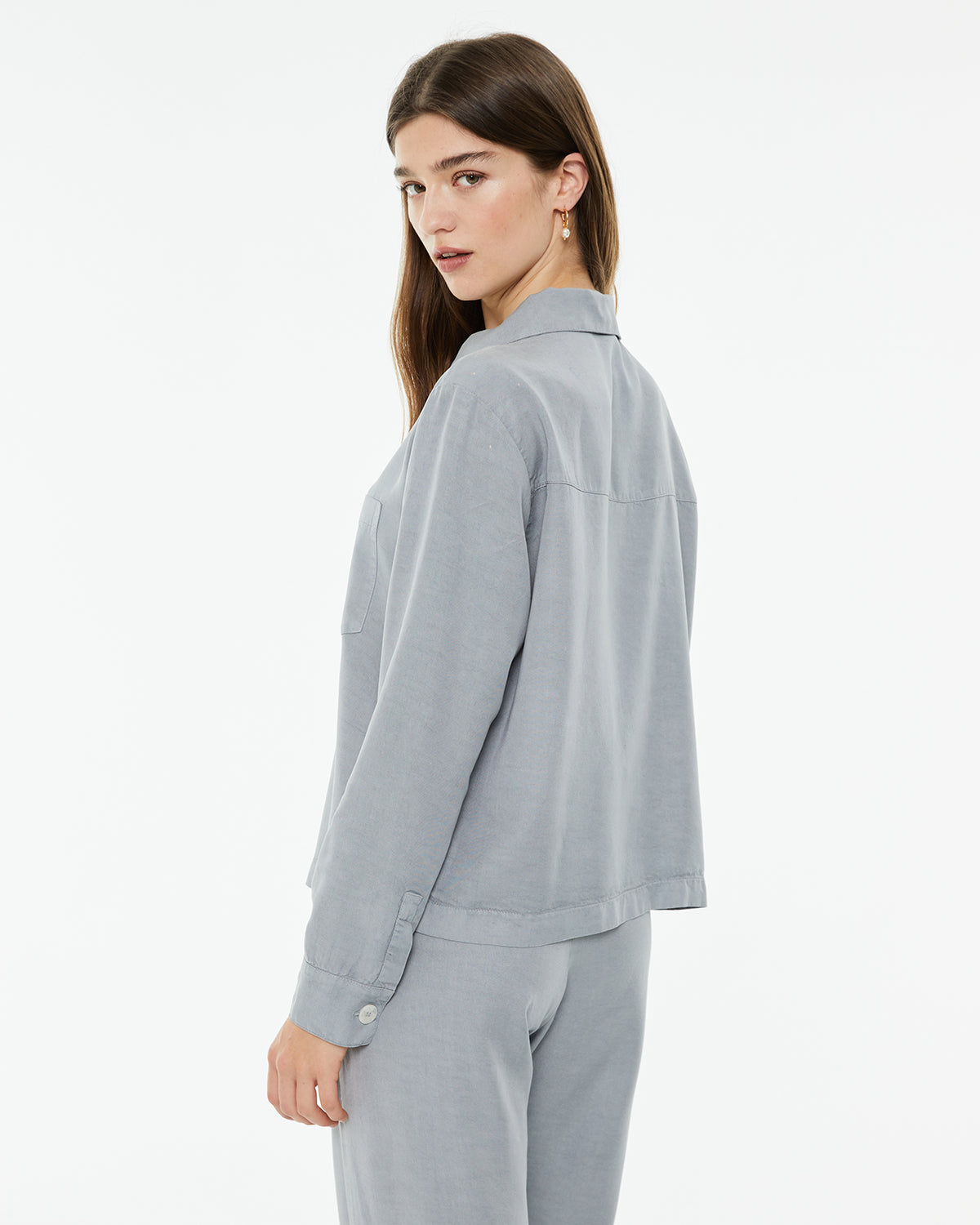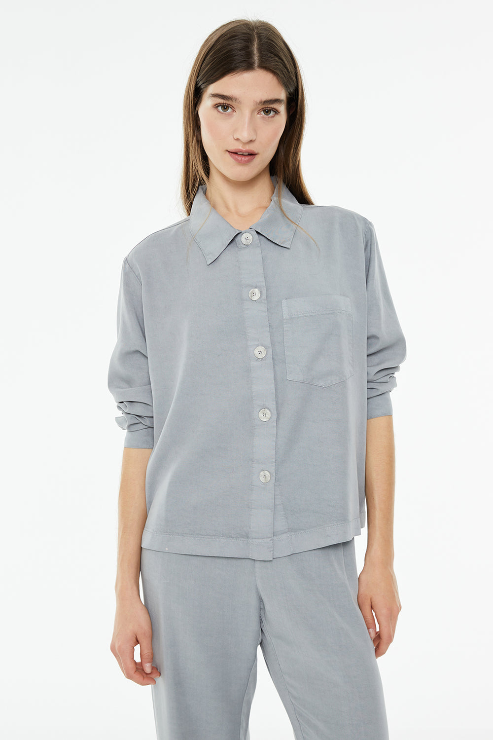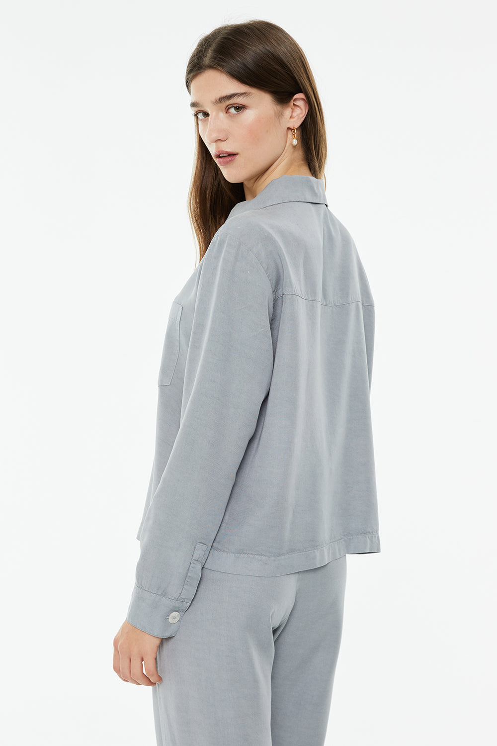 Chaqueta fluida con cuello camisero y bolsillo delantero