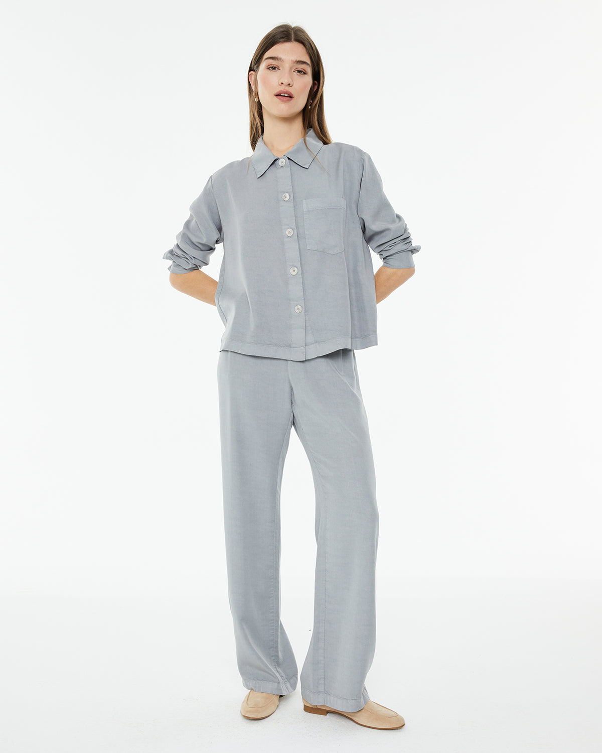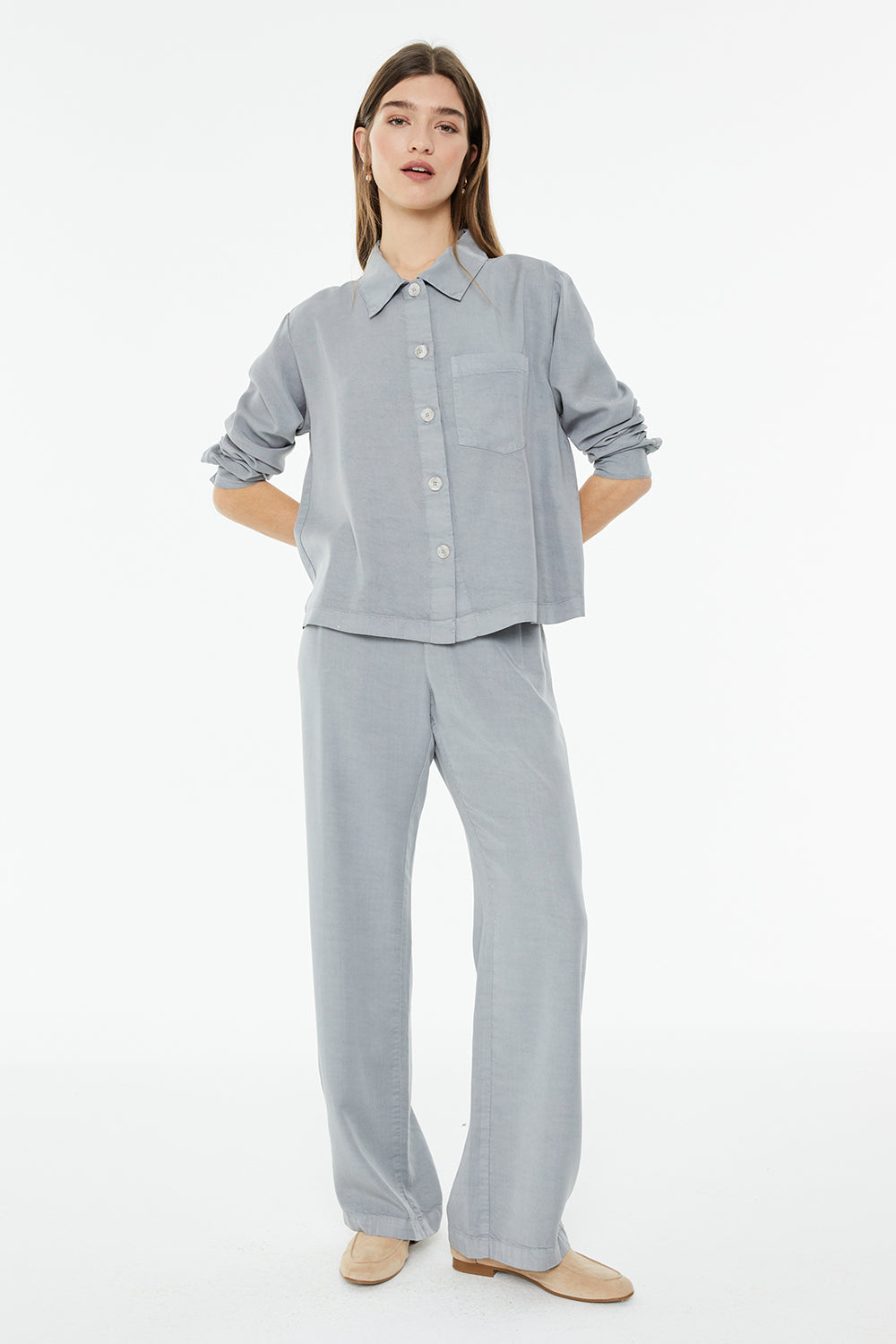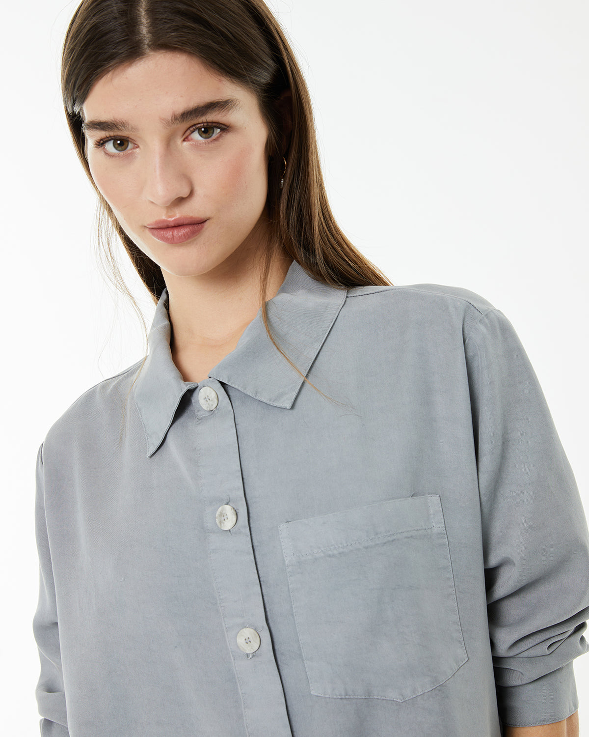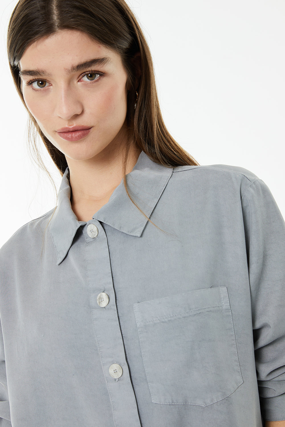 Chaqueta fluida con cuello camisero y bolsillo delantero