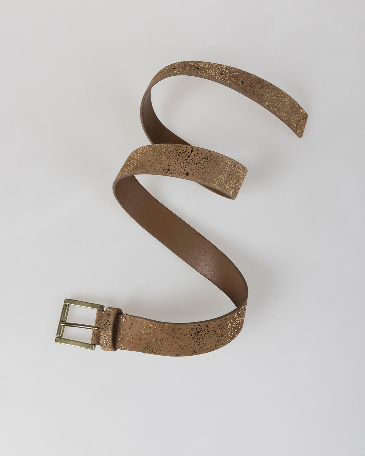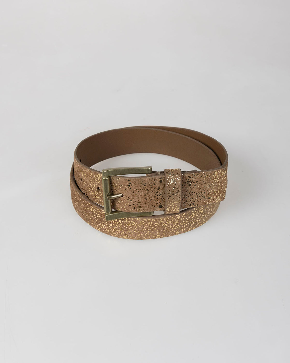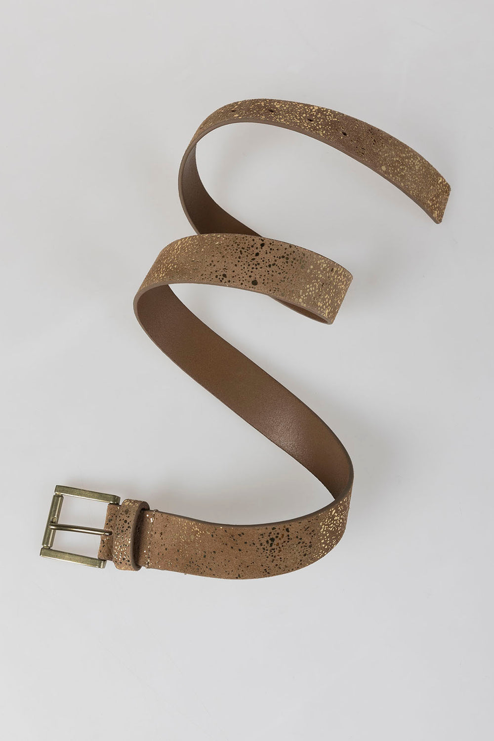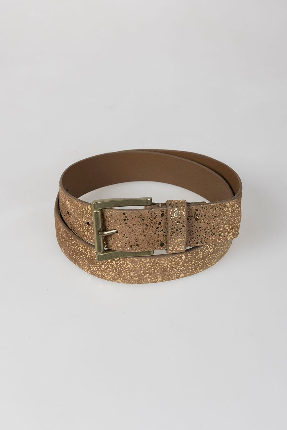 Cinturón camel con brillo hebilla metálica.