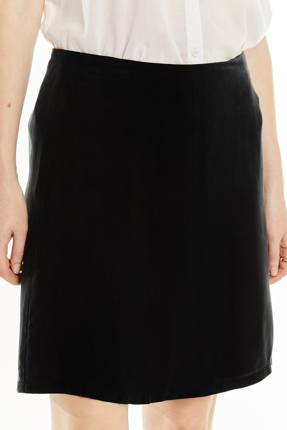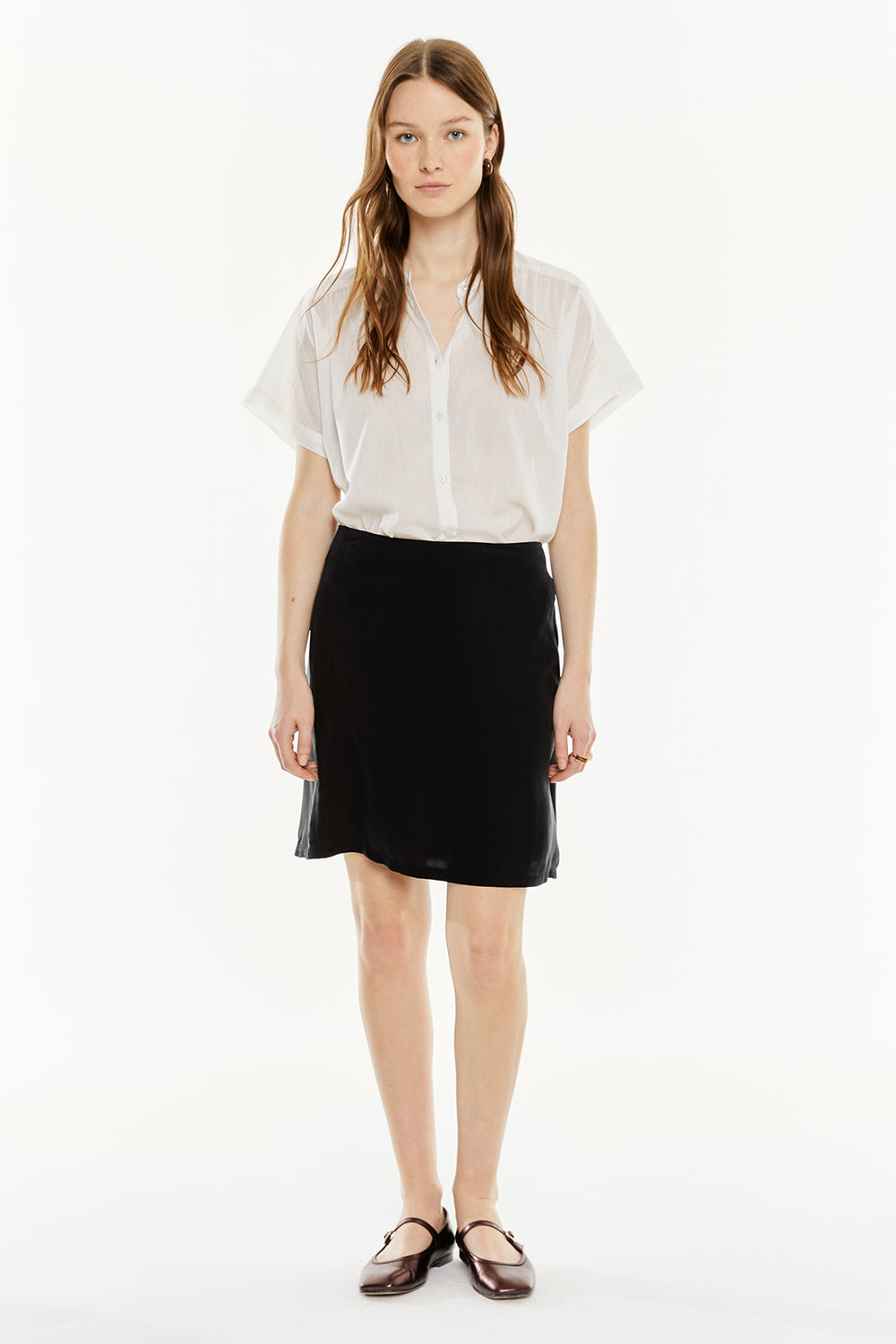 Falda corta de mujer con tejido de cupro. Prenda sostenible.