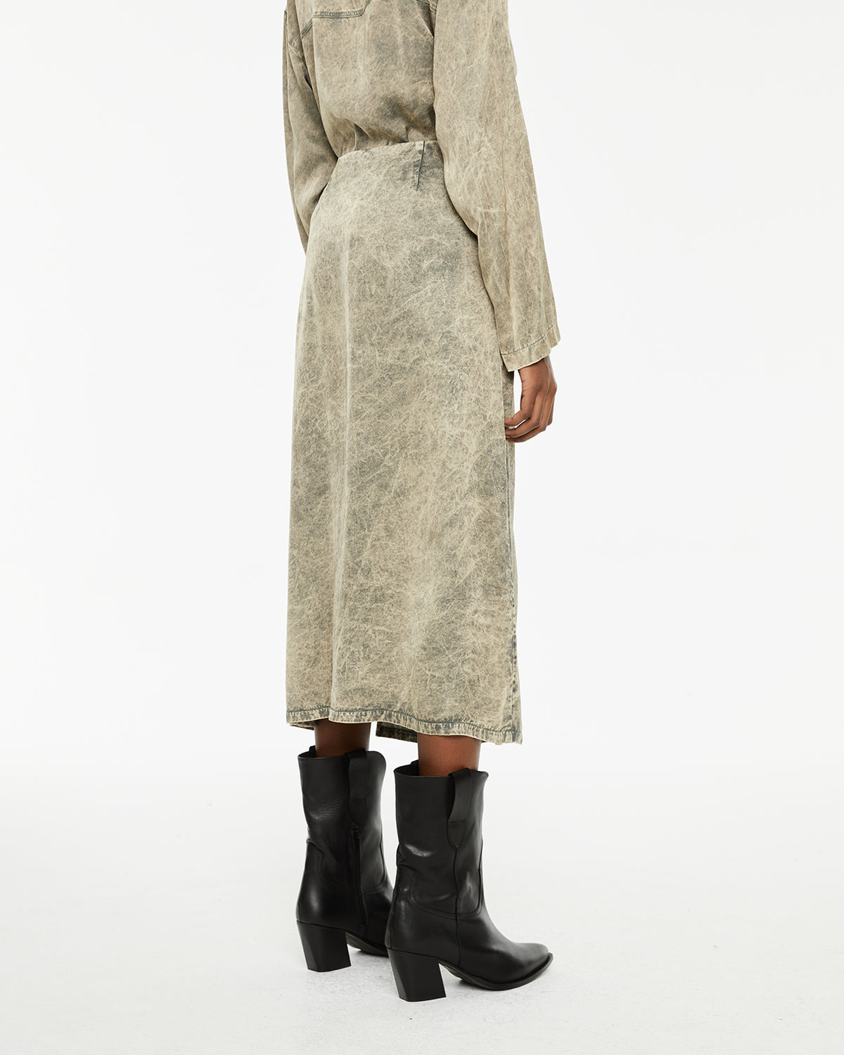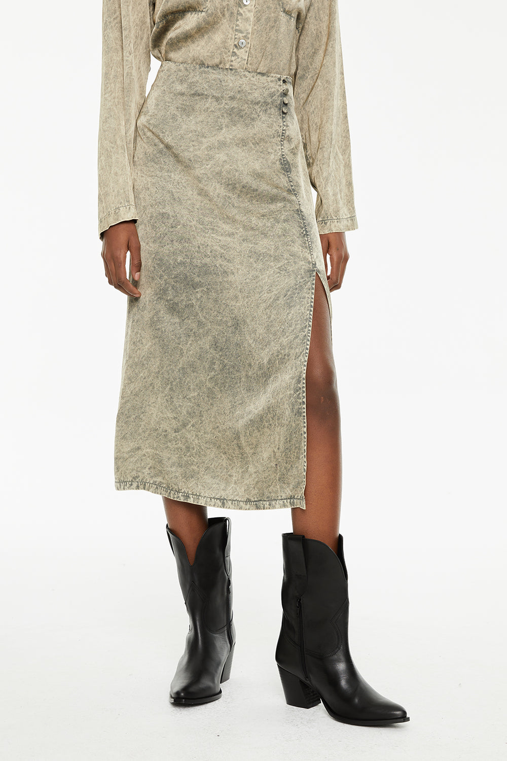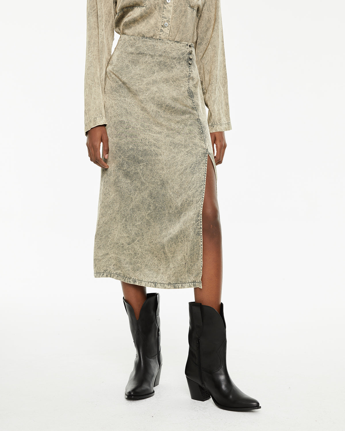 Falda de mujer midi, evasé con detalle de botones.Prenda sostenible.