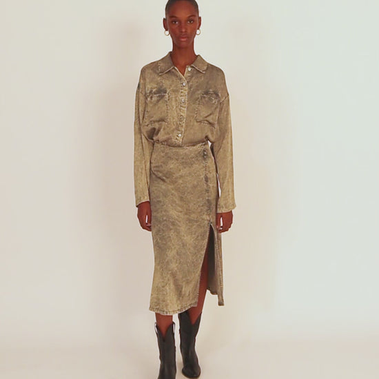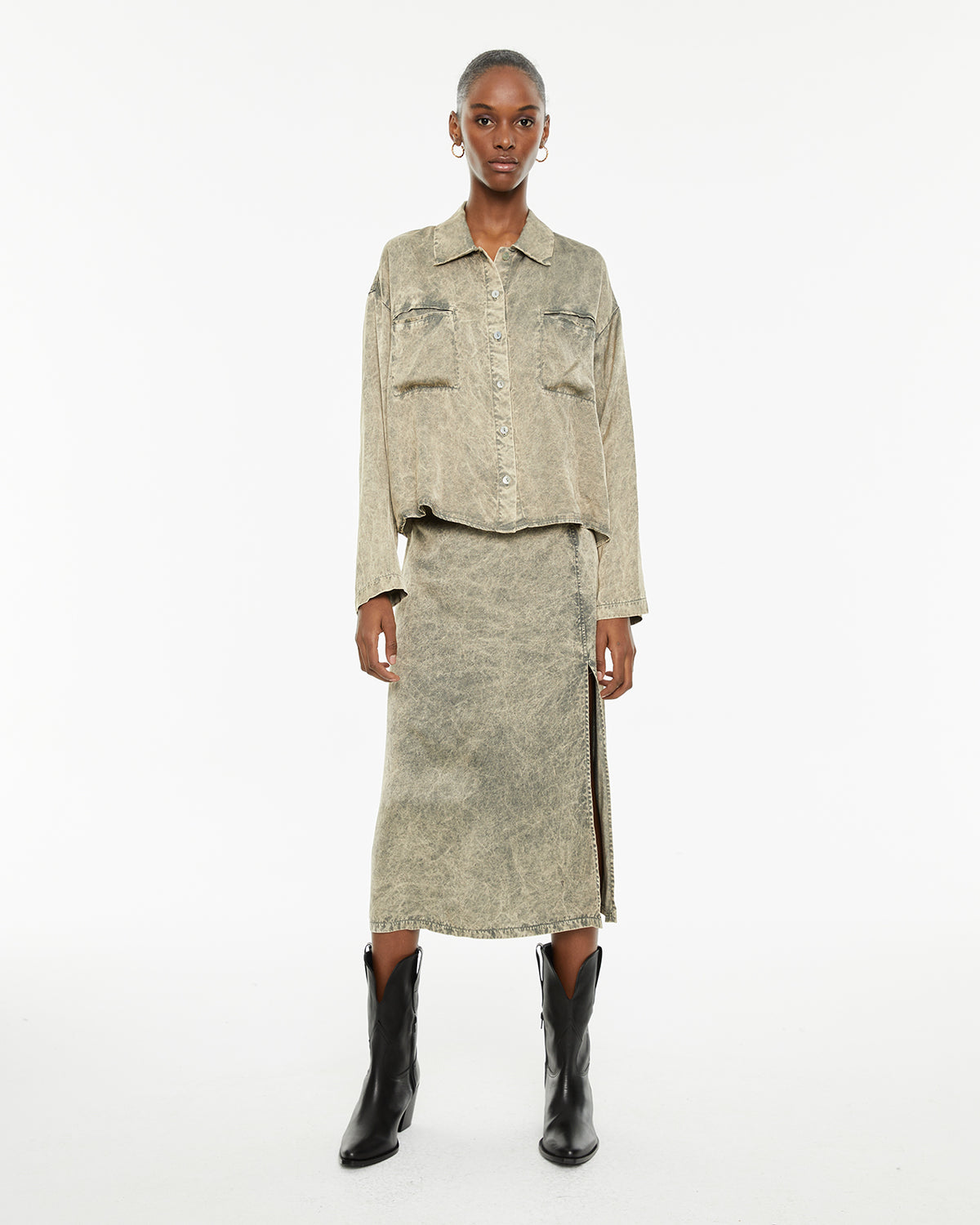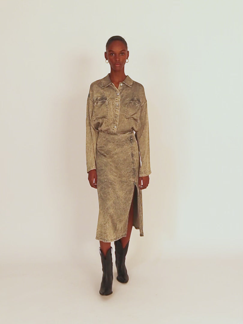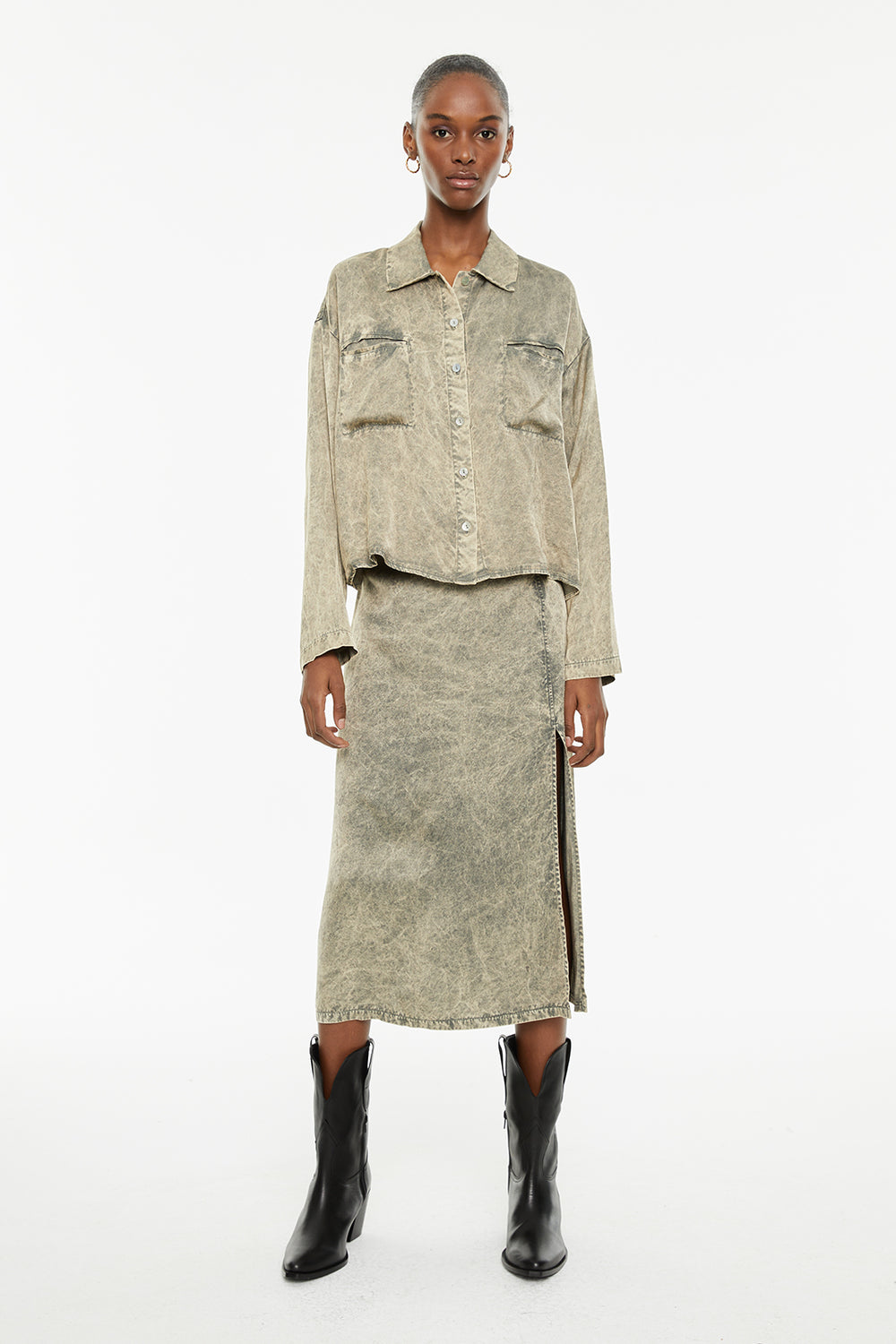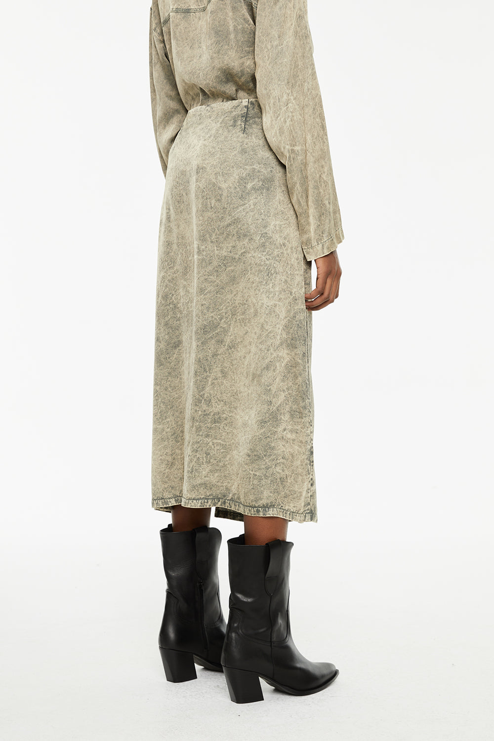 Falda de mujer midi, evasé con detalle de botones.Prenda sostenible.