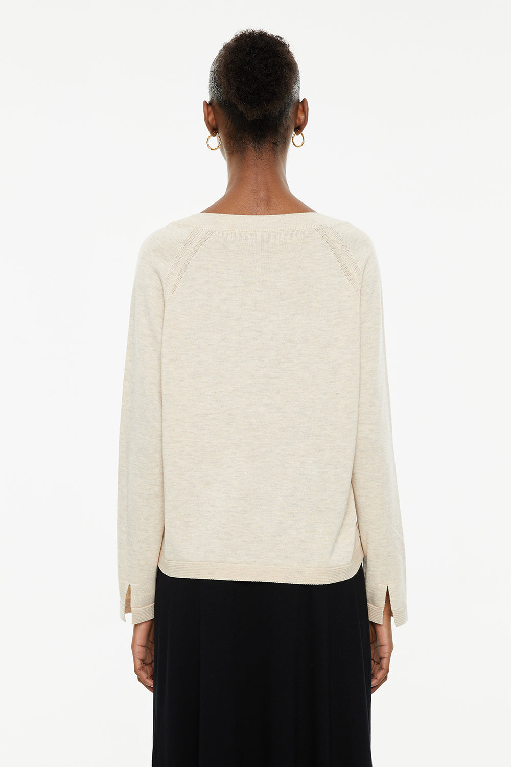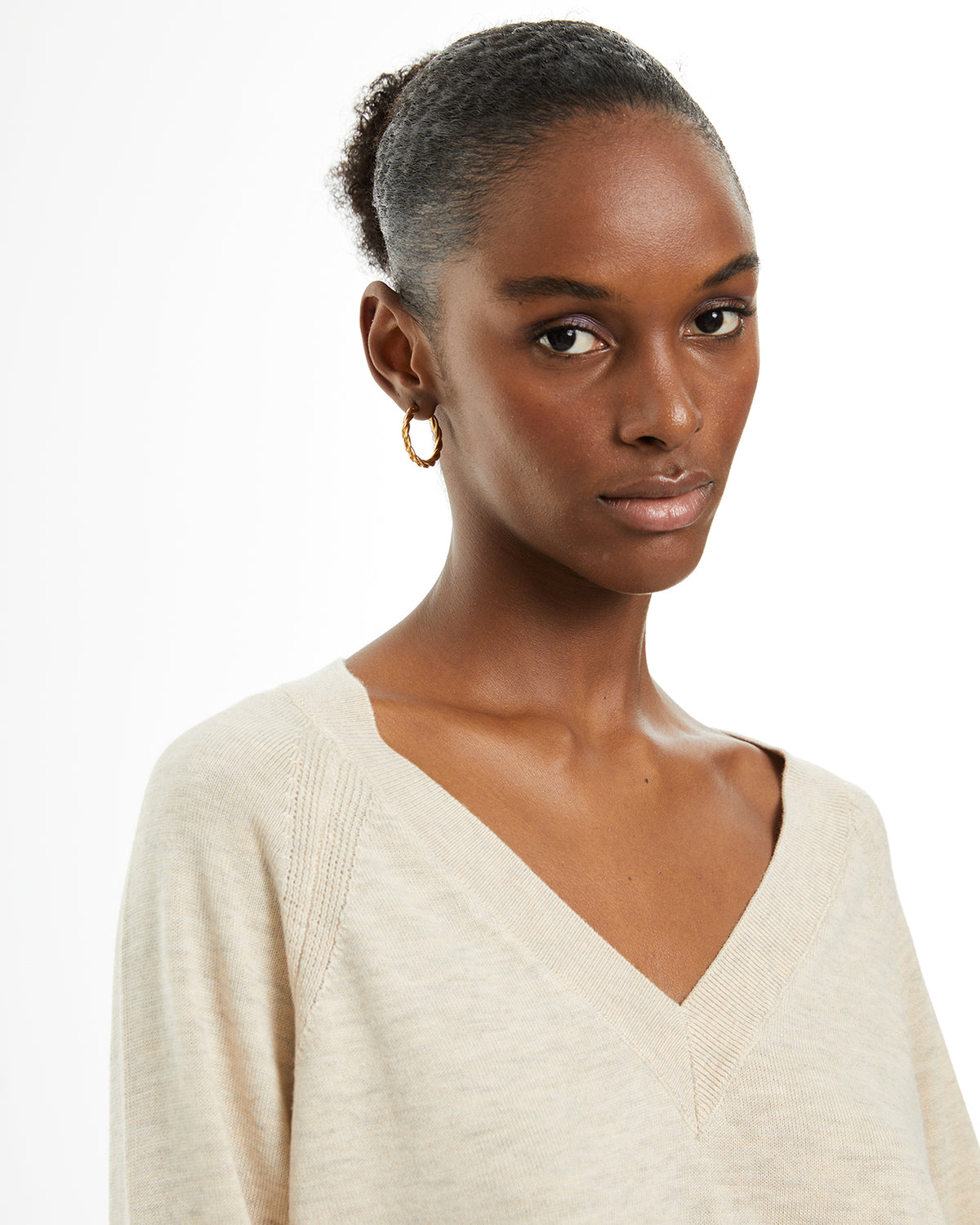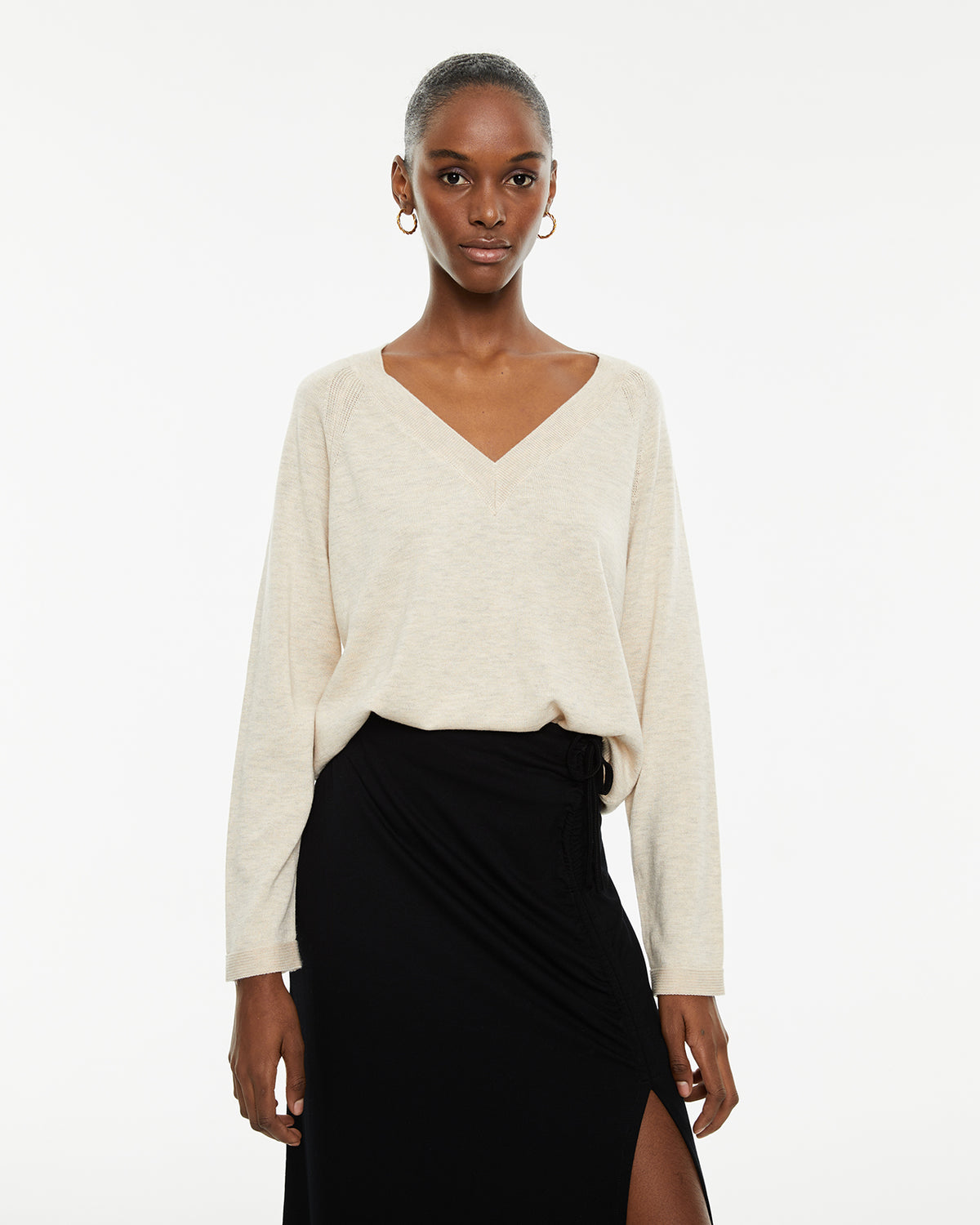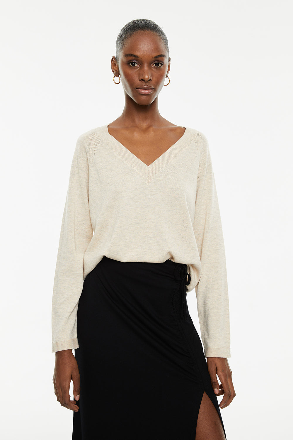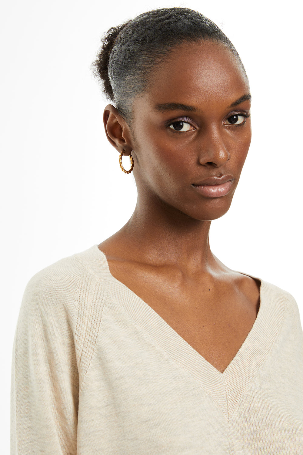 Jersey básico de mujer con lana, de cuello pico y manga larga.