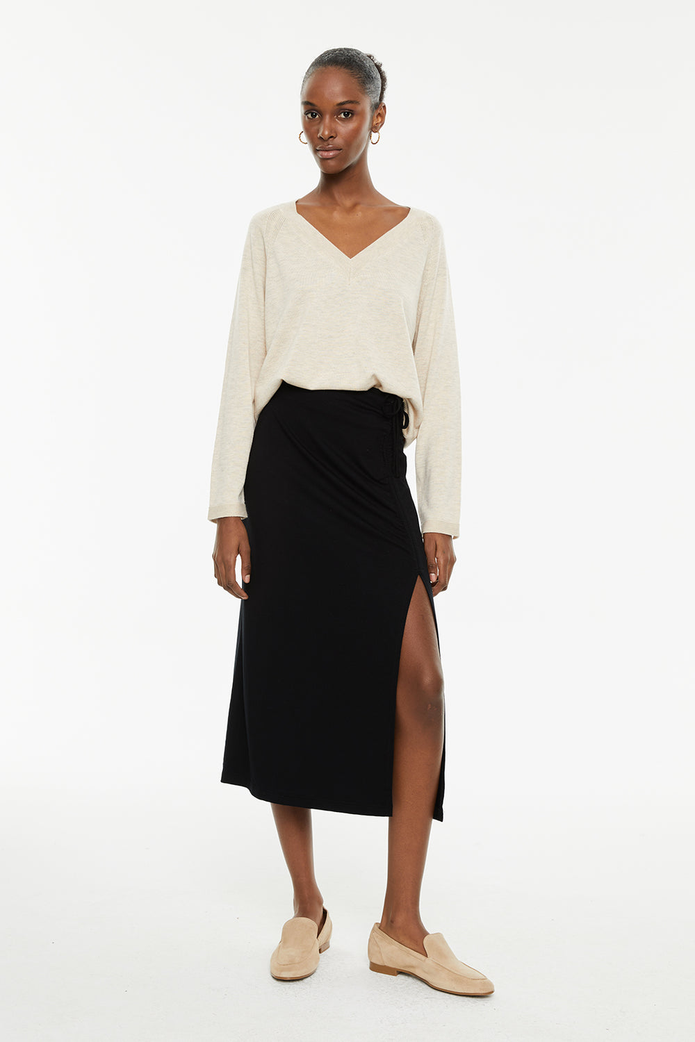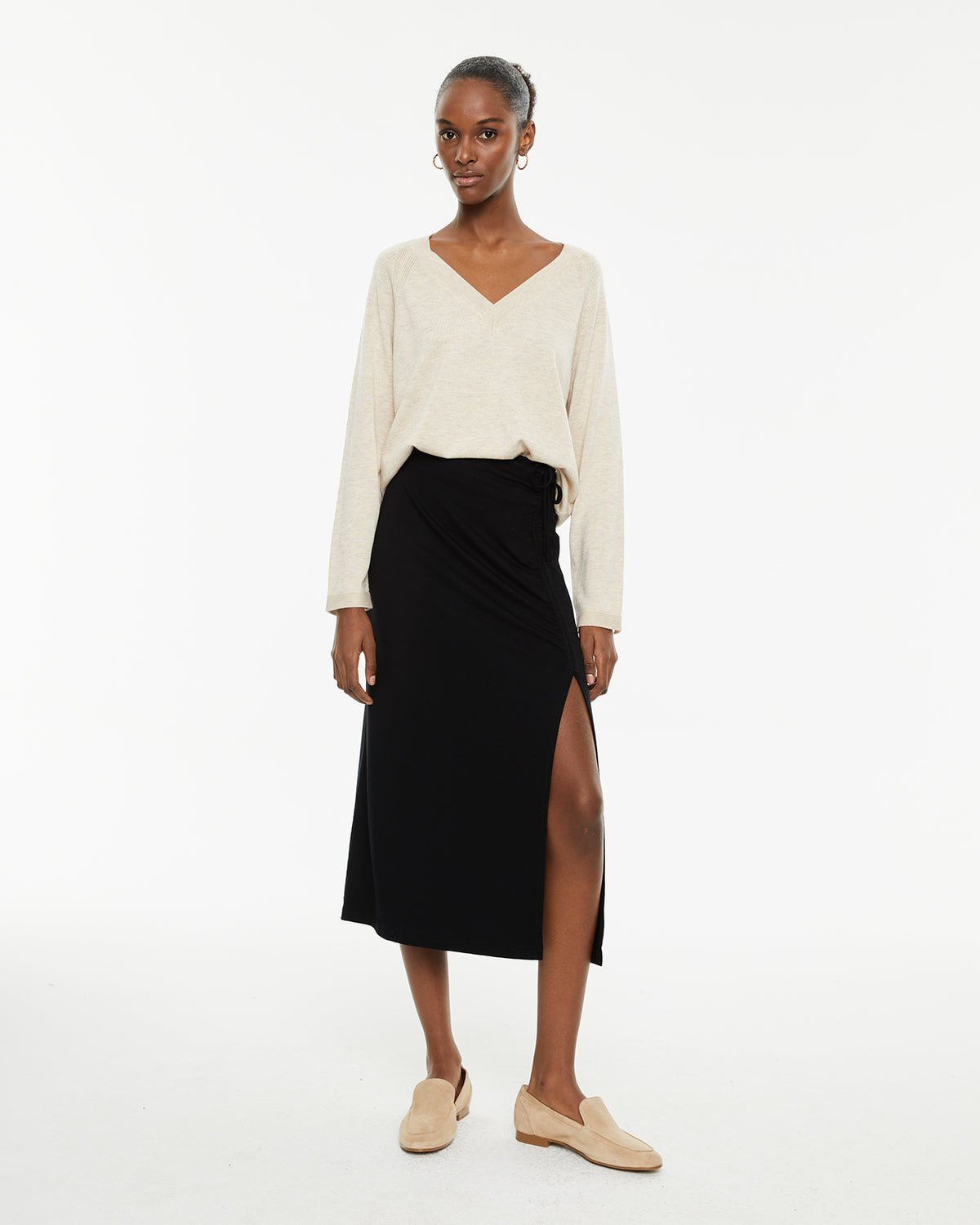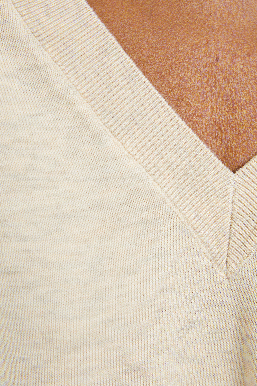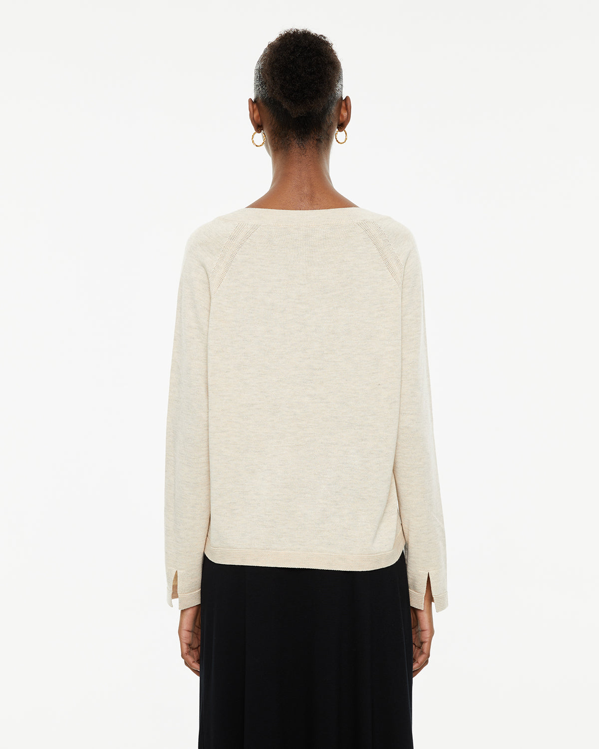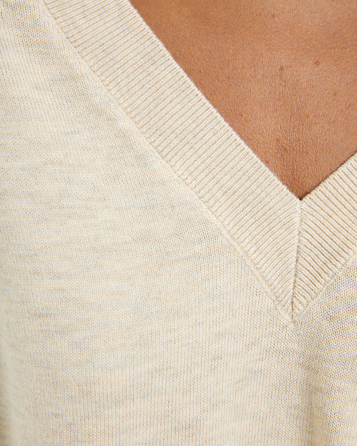 Jersey básico de mujer con lana, de cuello pico y manga larga.