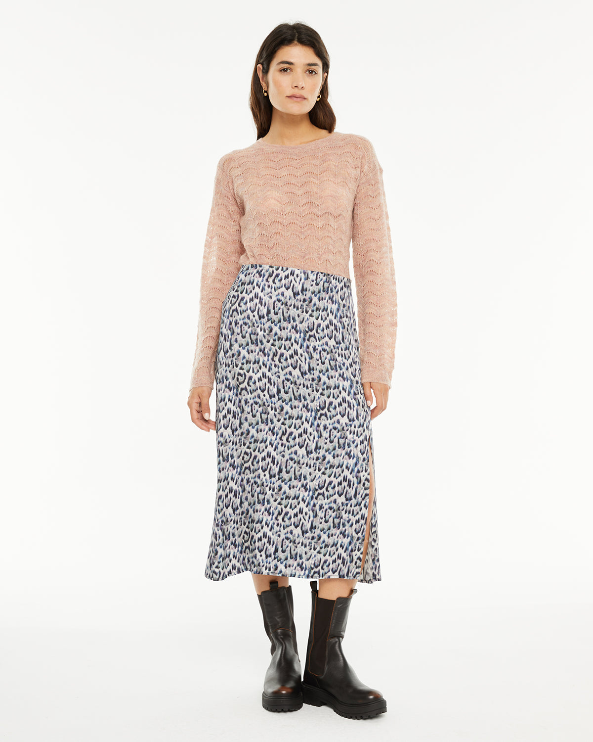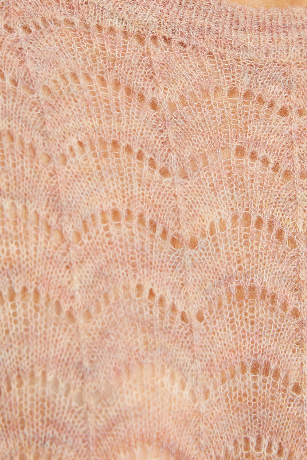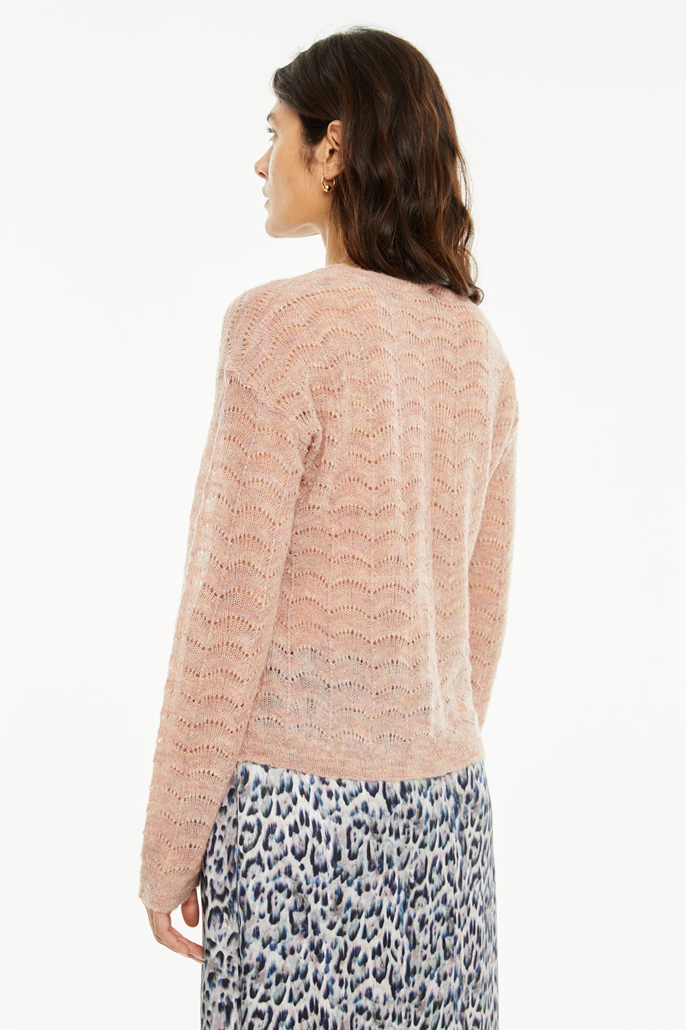Jersey calado de mujer, con punto de fantasía, escote redondo y manga larga. Prenda sostenible.