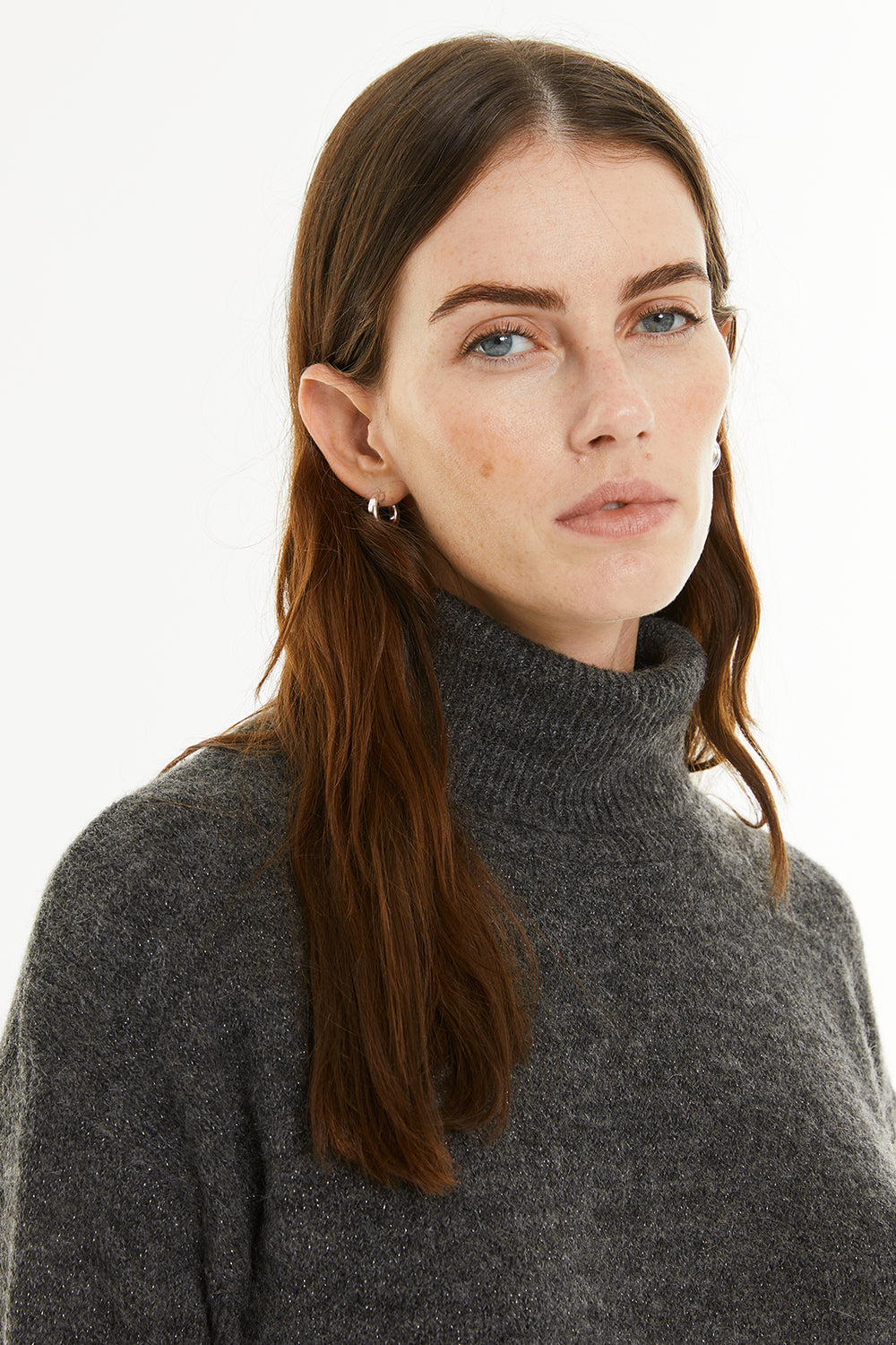 COMPOSICIÓN: Poliamida 27%. Acrílico 46%. Hilo metalizado 10%. Lana 9%. Mohair 5%. Spandex 3%