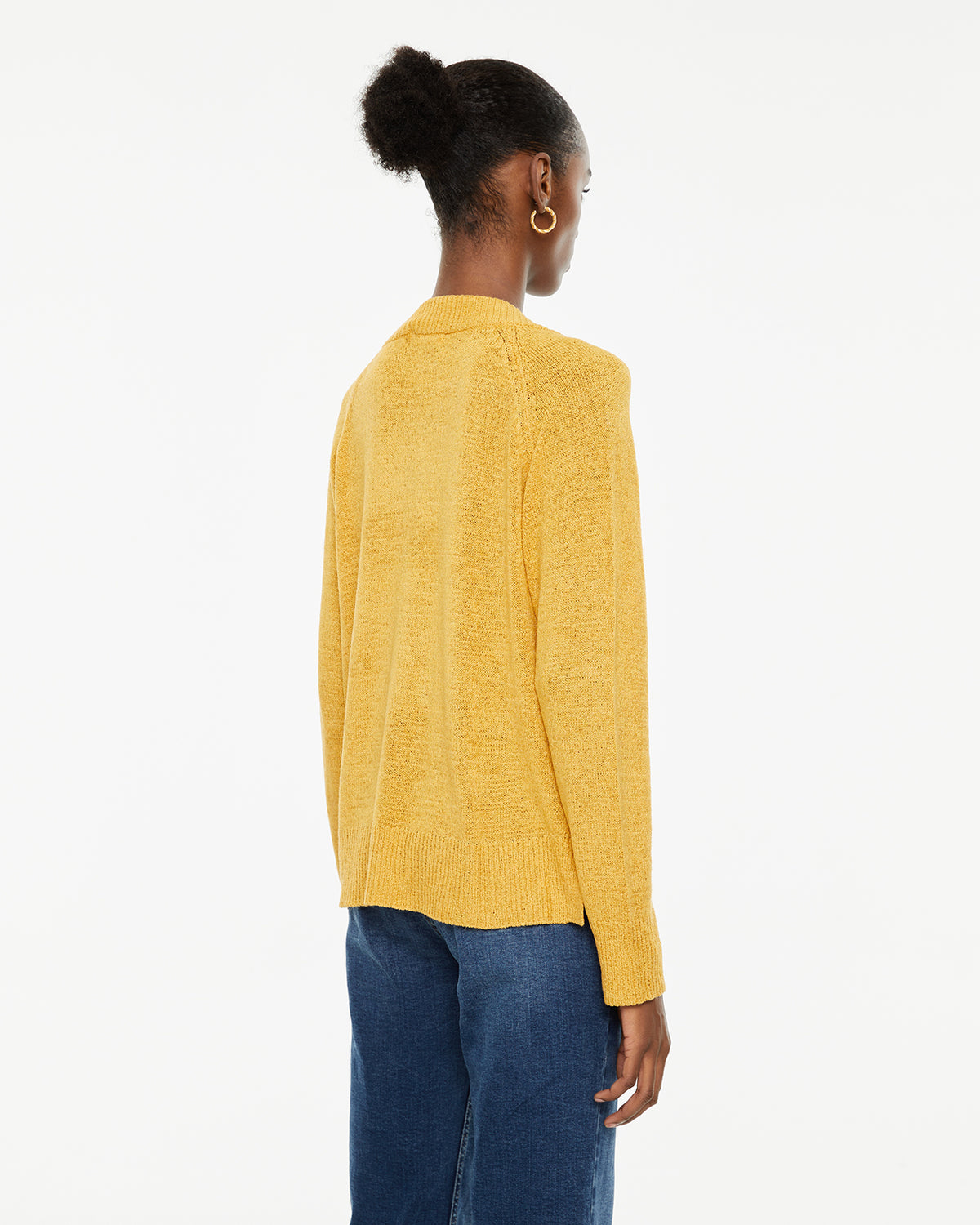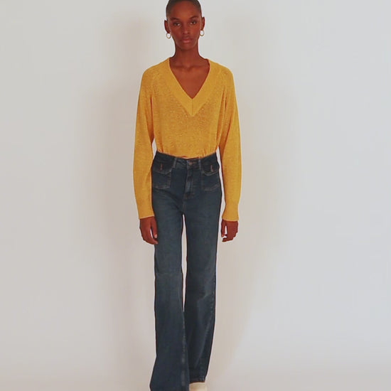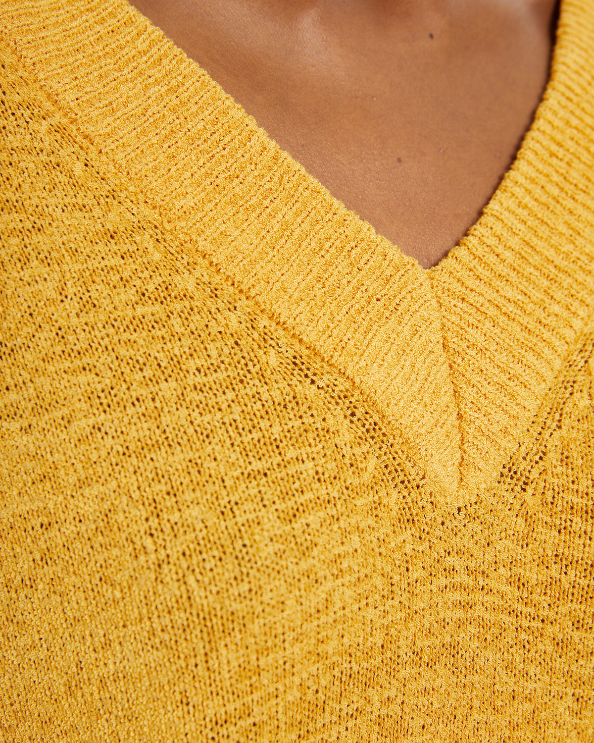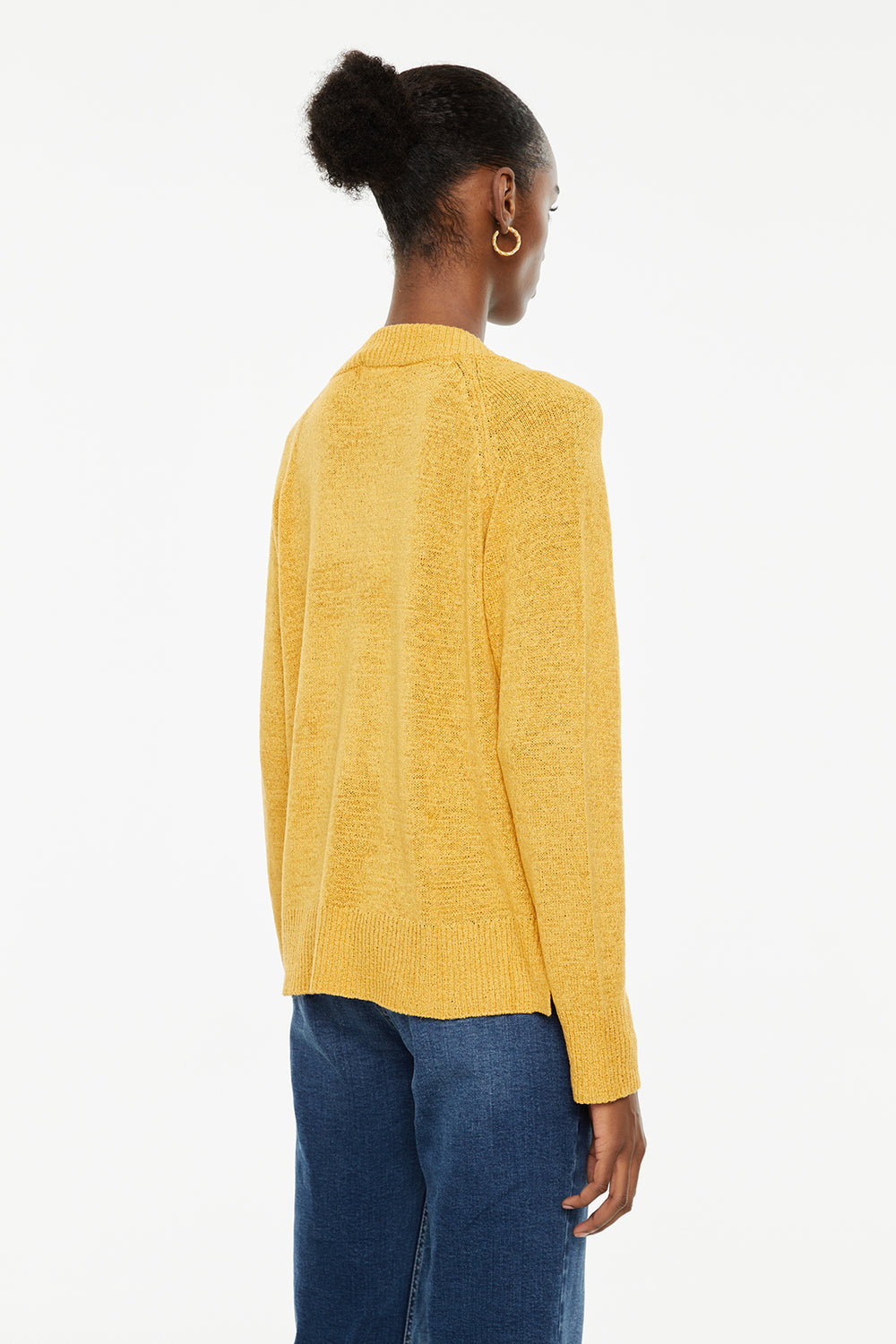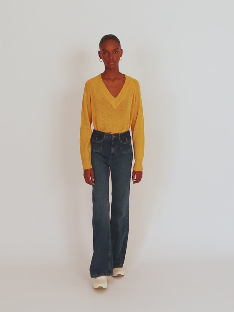 Jersey de escote pico, manga larga y aberturas en los laterales. Acabados en rib.