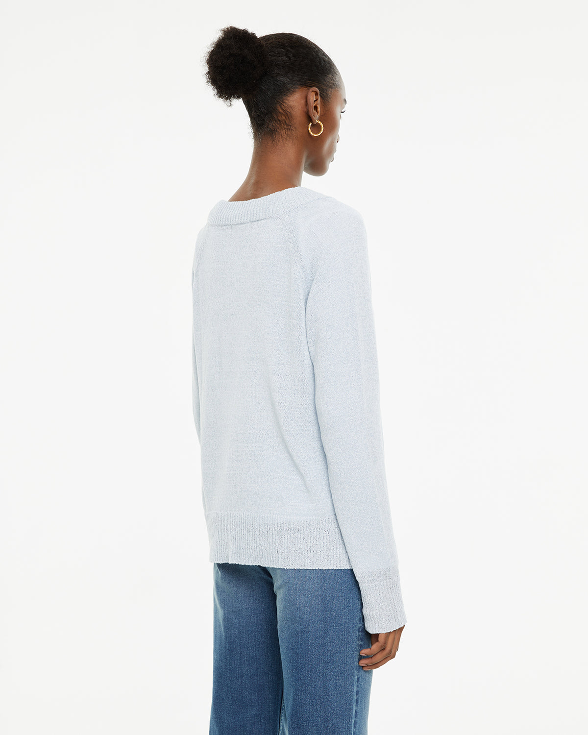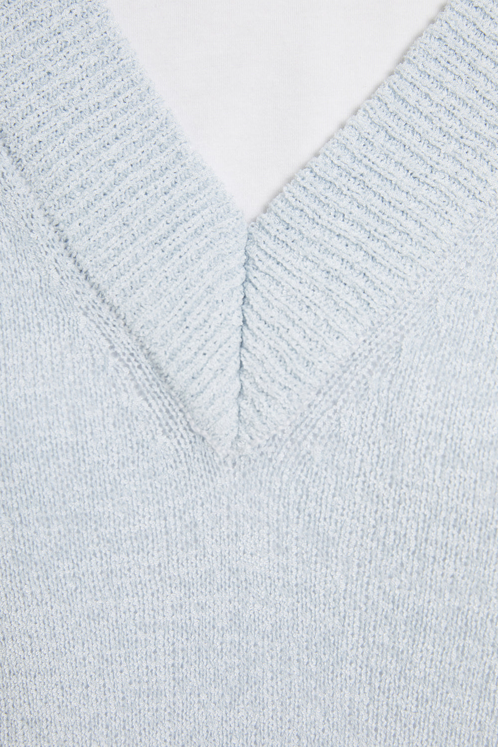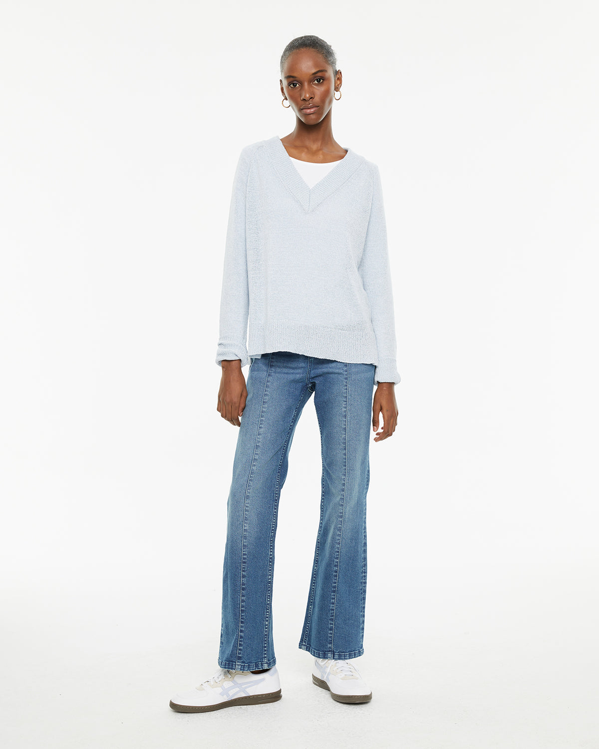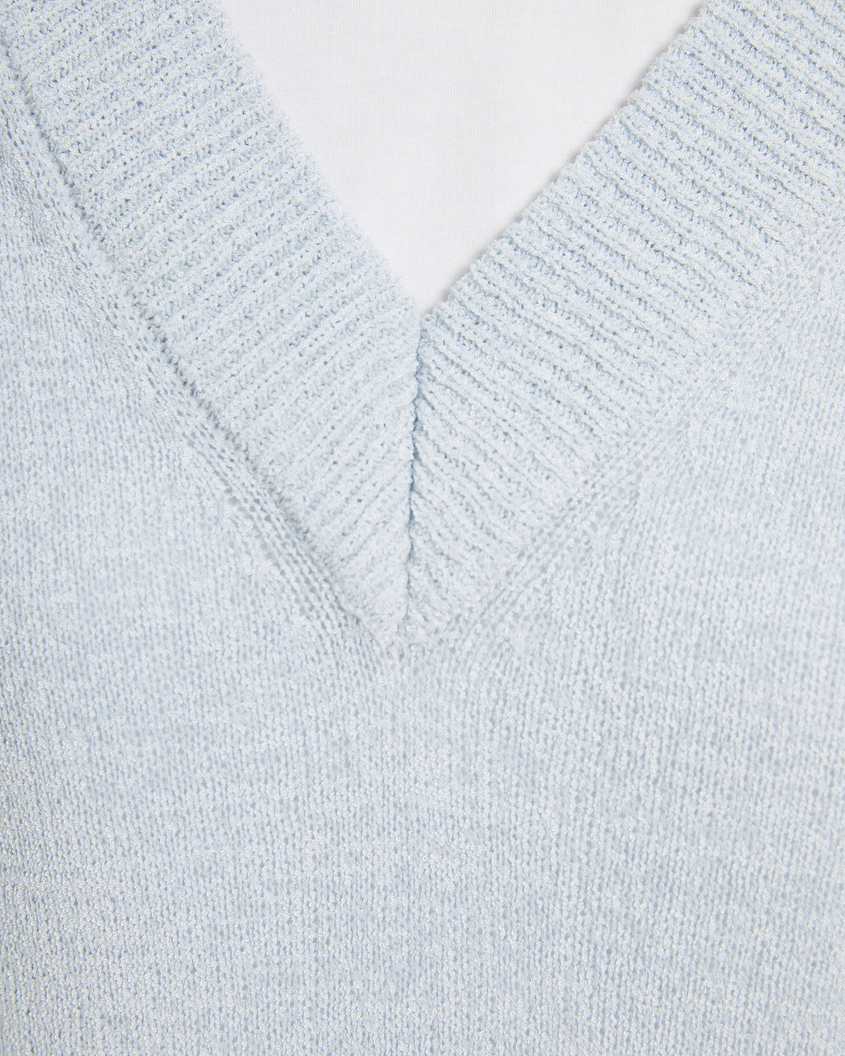 Jersey de escote pico, manga larga y aberturas en los laterales. Acabados en rib.
