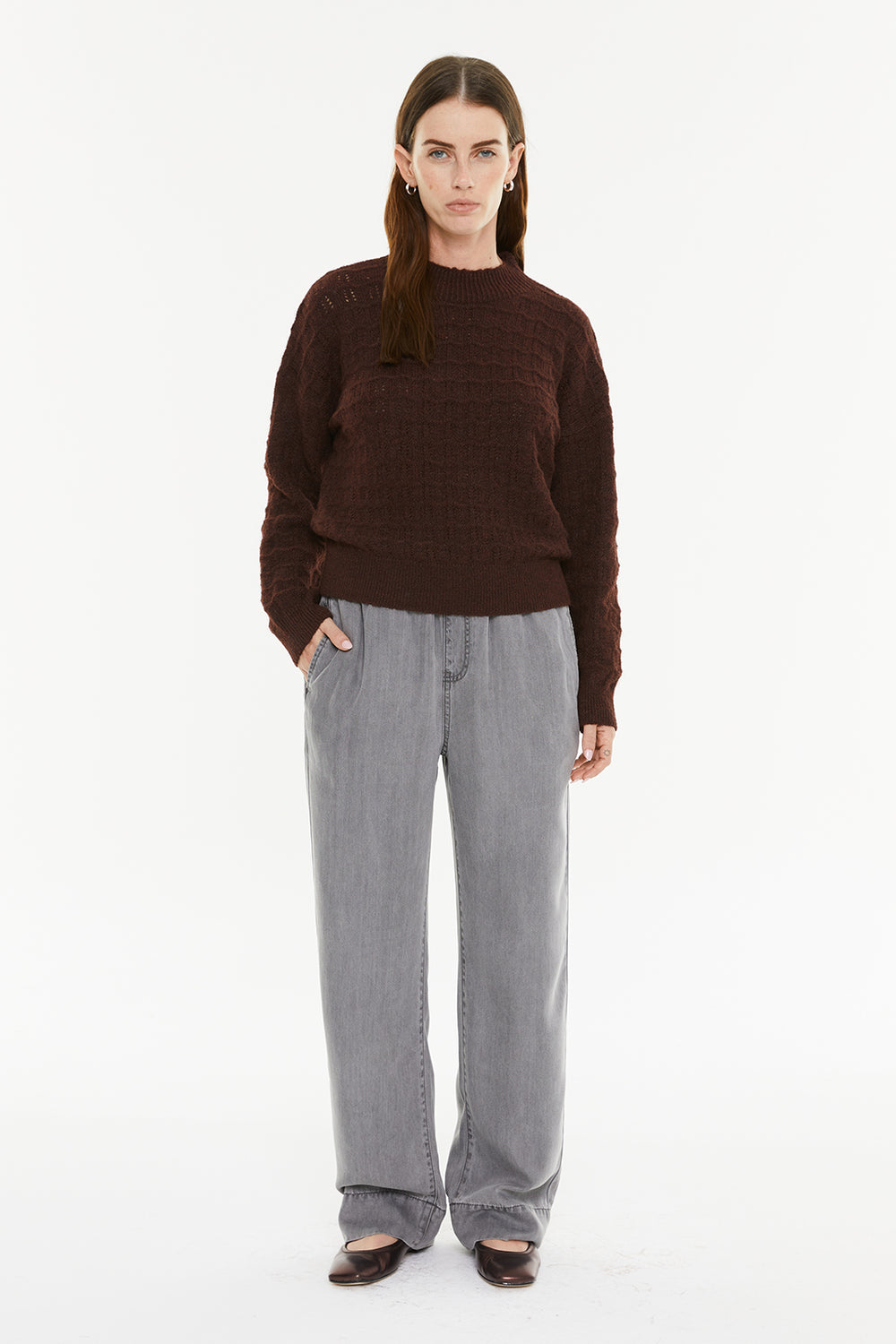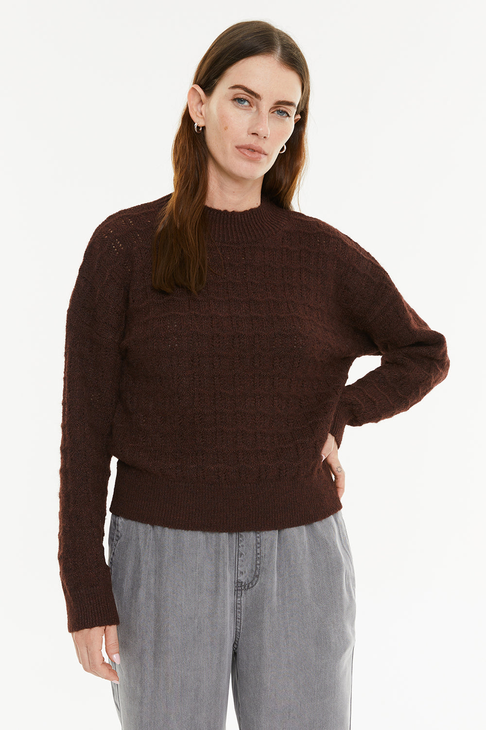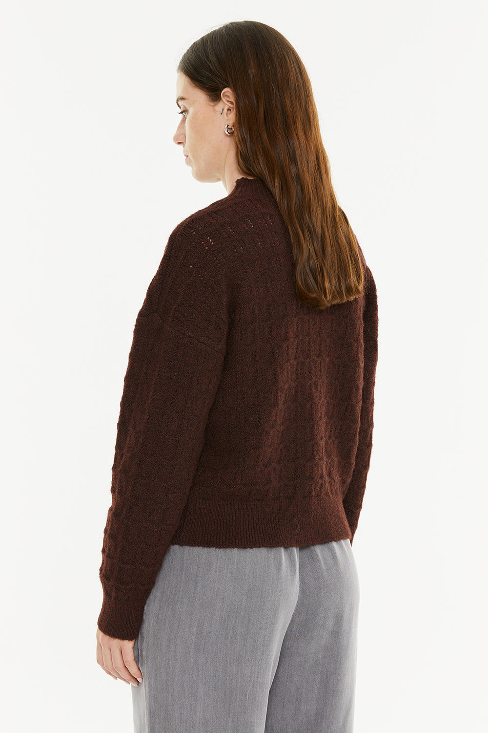 Jersey de mujer, escote redondo y punto con estructura. Prenda sostenible.