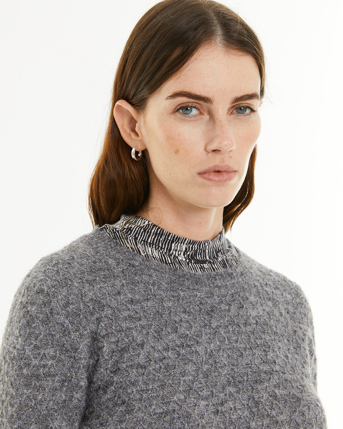 Jersey de mujer con estructura y escote redondo. Prenda sostenible.