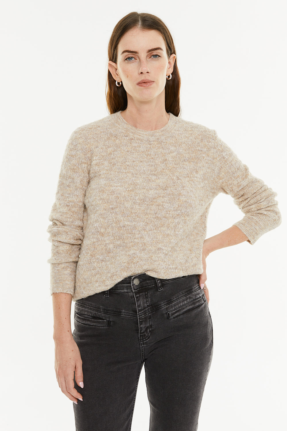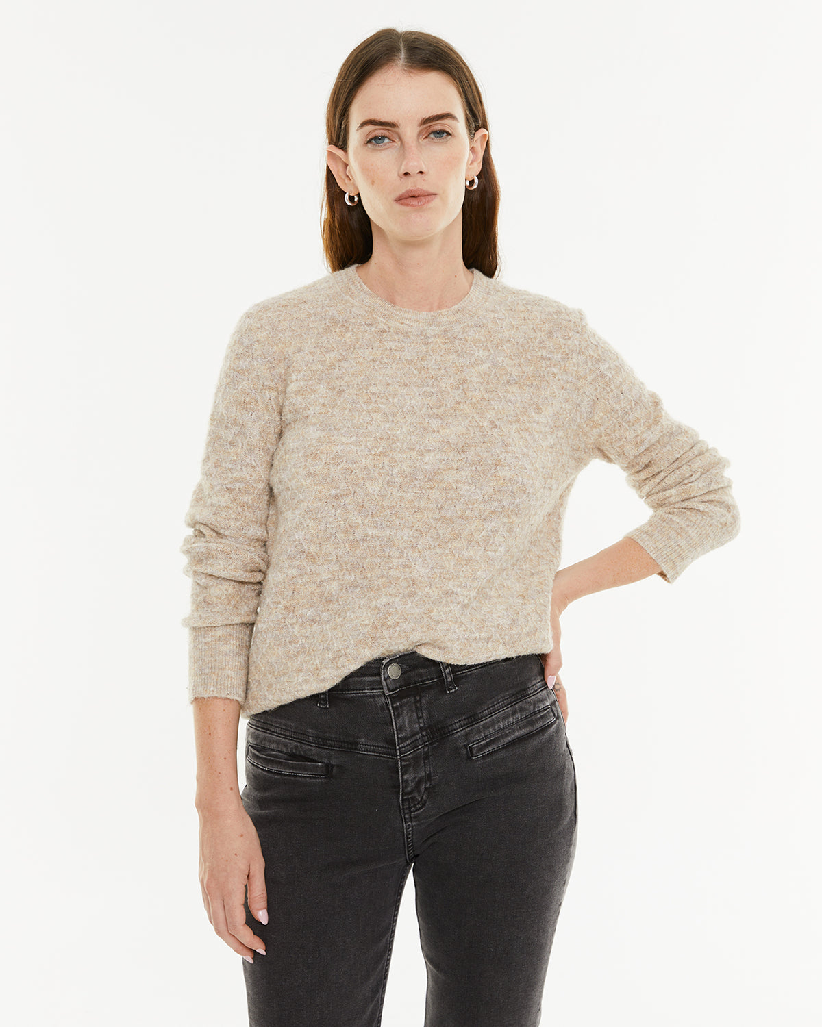 Jersey de mujer con estructura y escote redondo. Prenda sostenible.