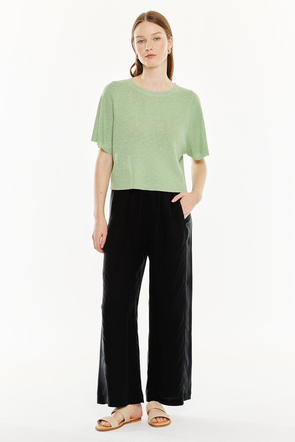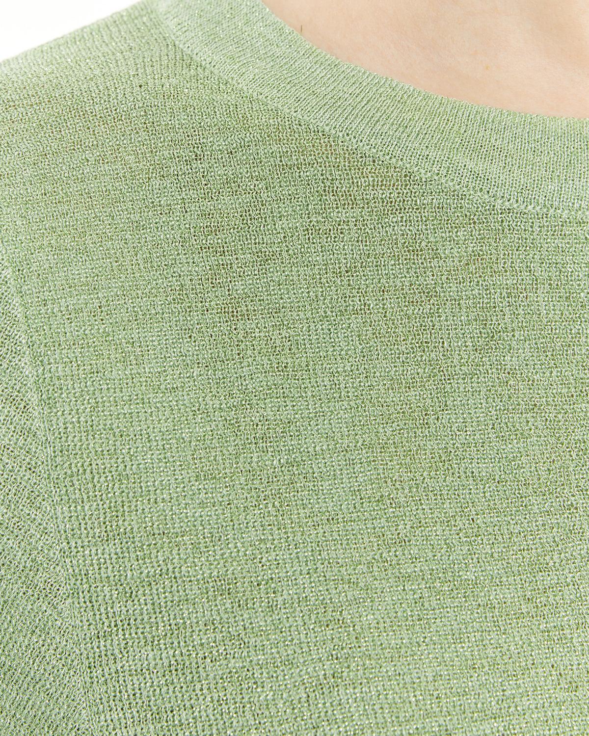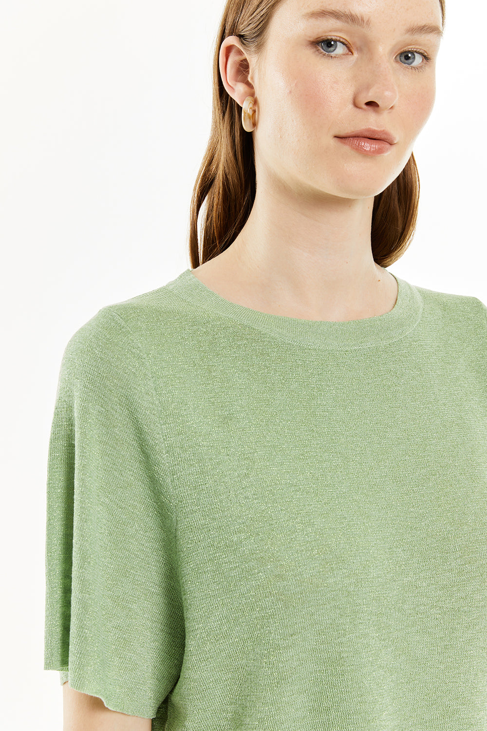 Jersey de mujer con lúrex, manga corta y escote redondo.