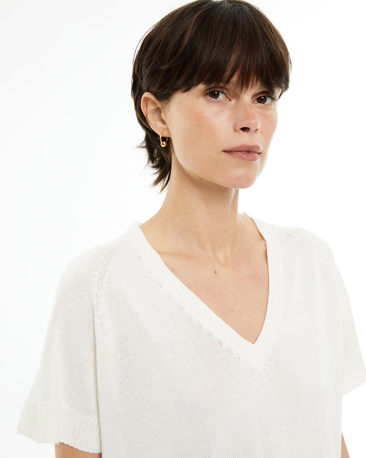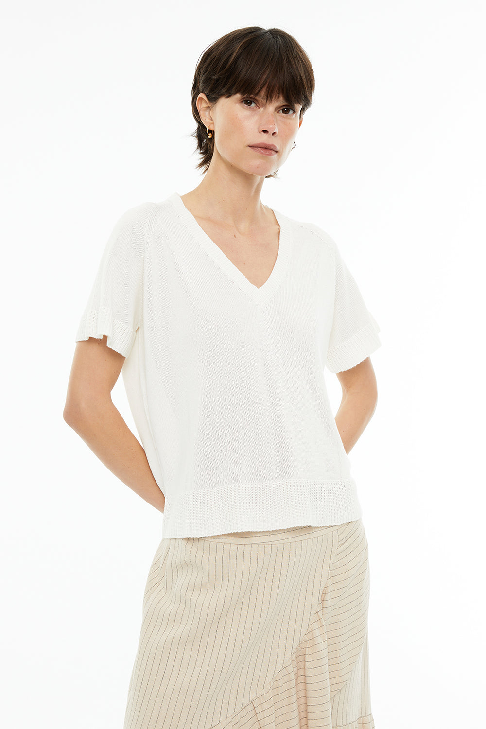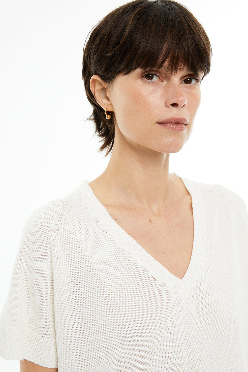 Jersey de mujer oversize. Cuello pico, y manga corta. Acabados en rib.