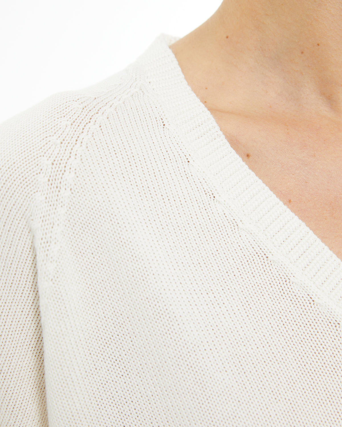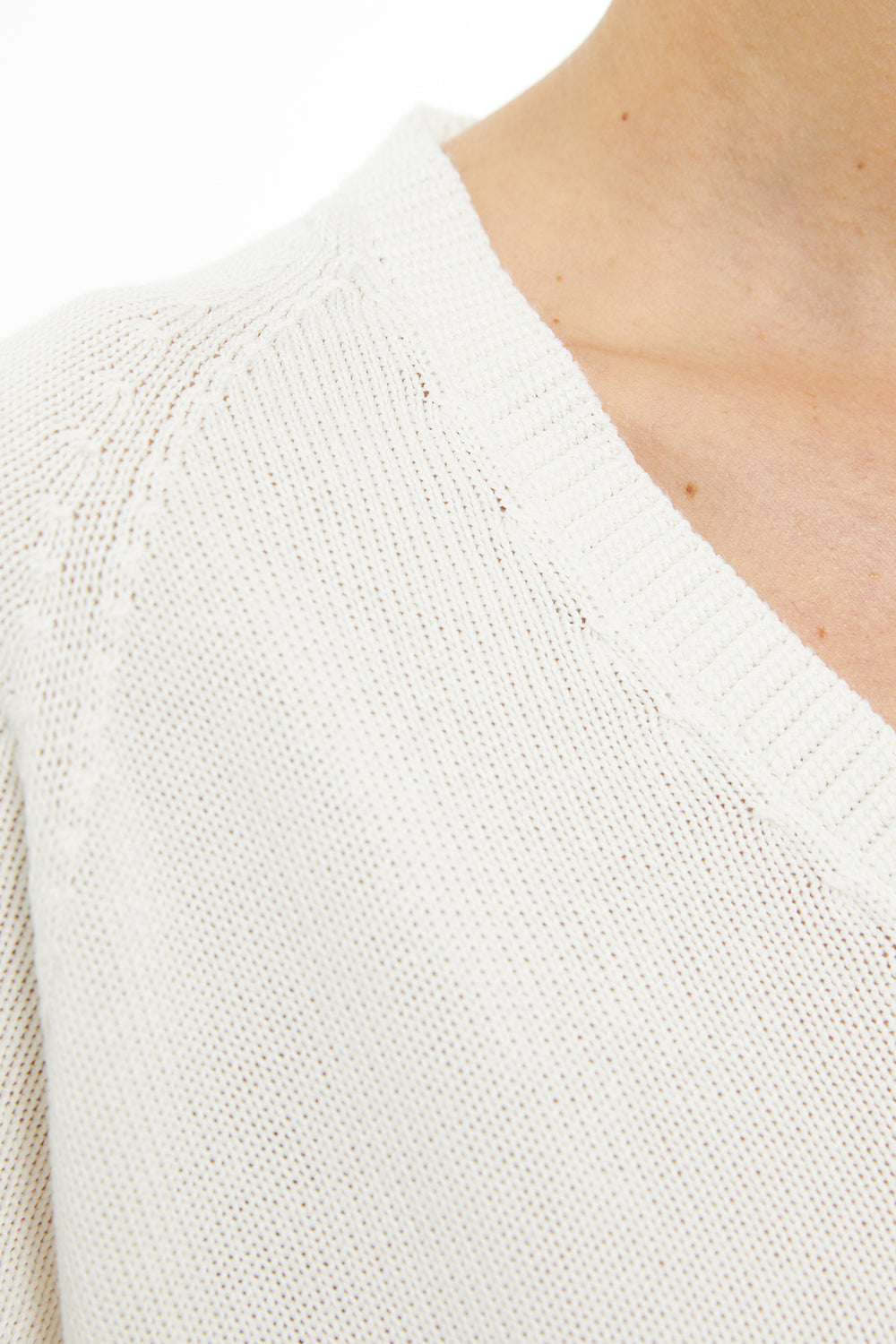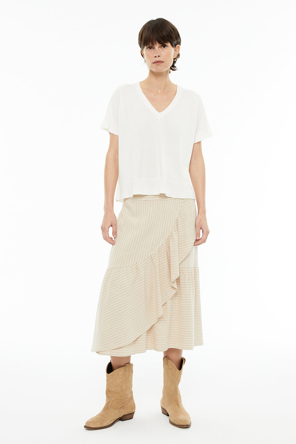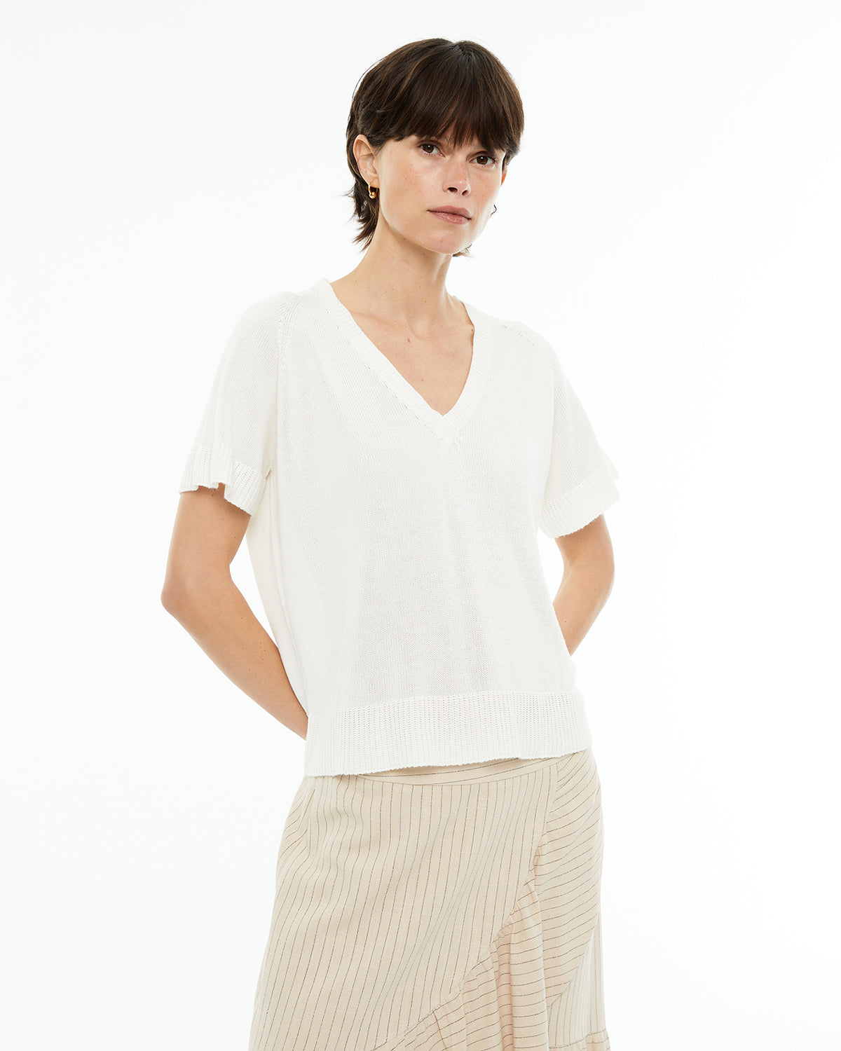 Jersey de mujer oversize. Cuello pico, y manga corta. Acabados en rib.