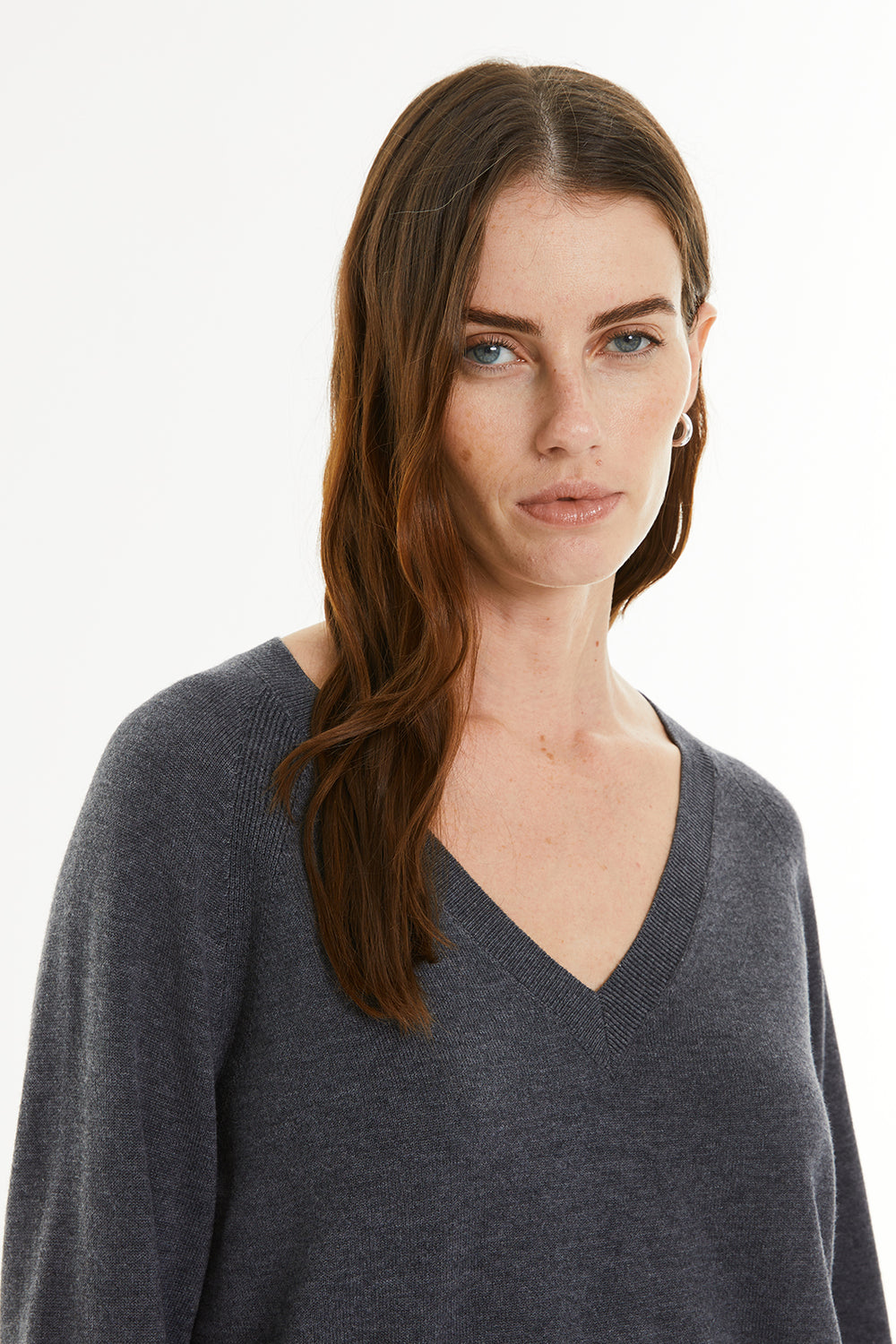 Jersey básico de mujer, con escote pico y aberturas laterales. Prenda sostenible.