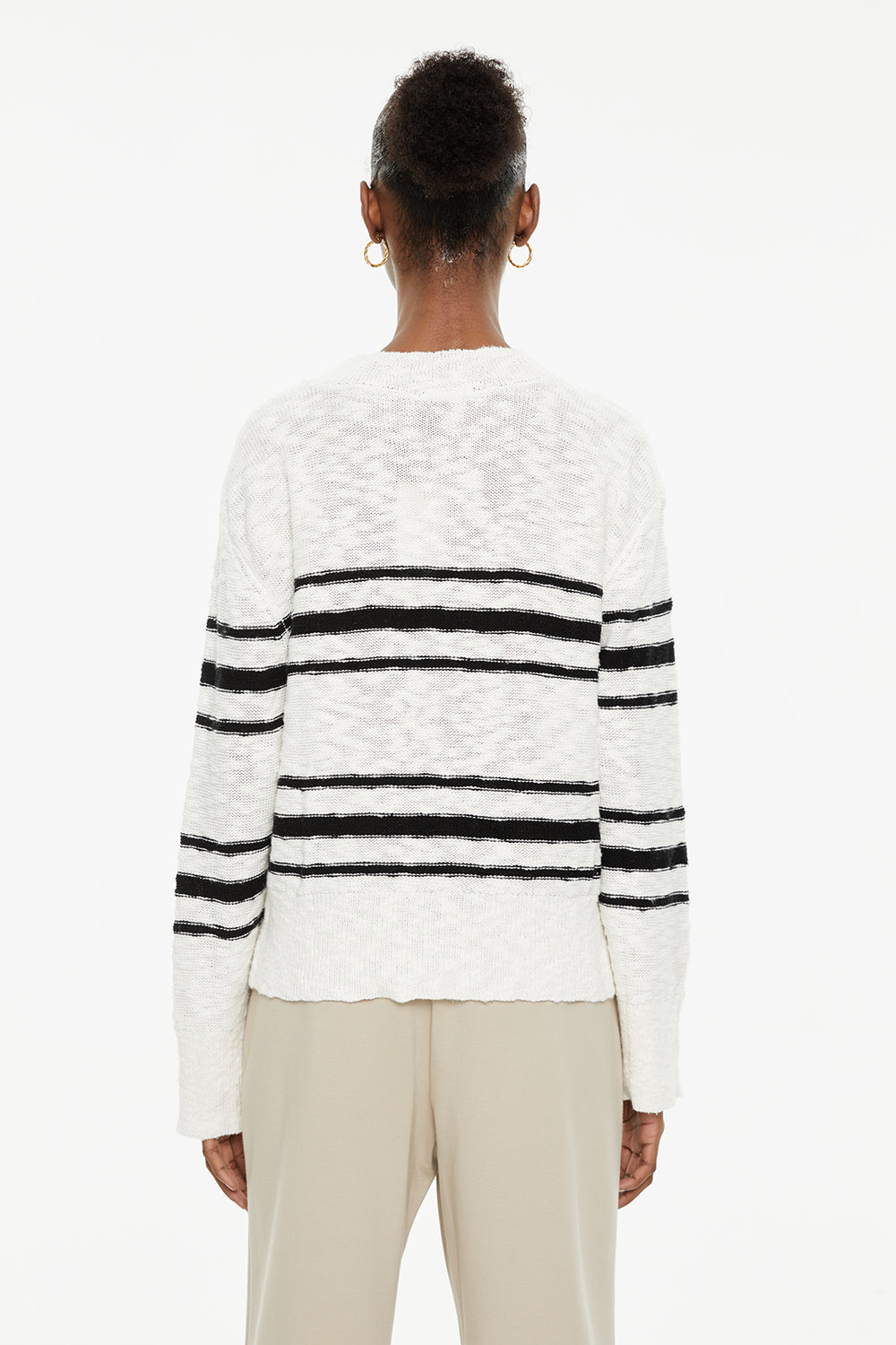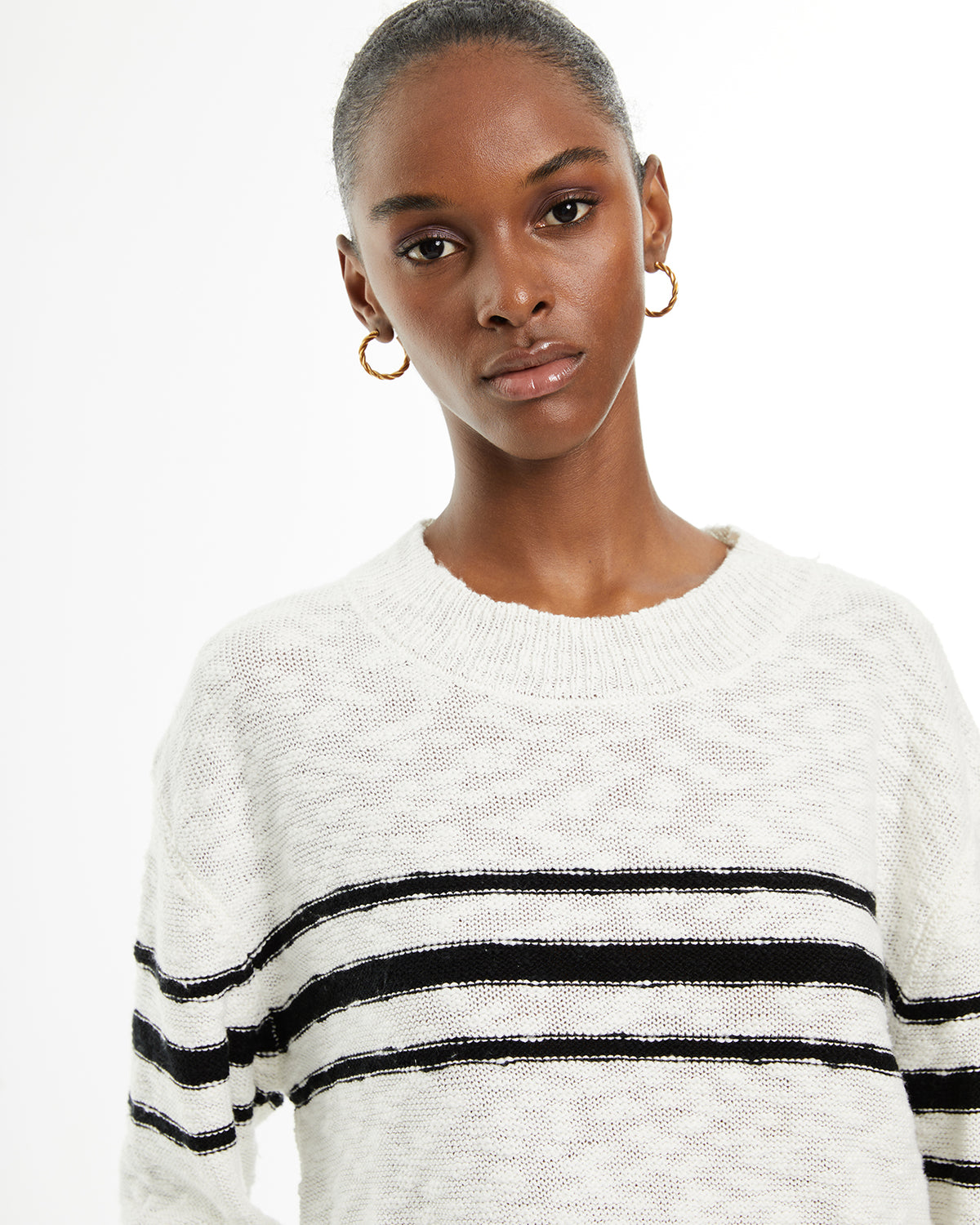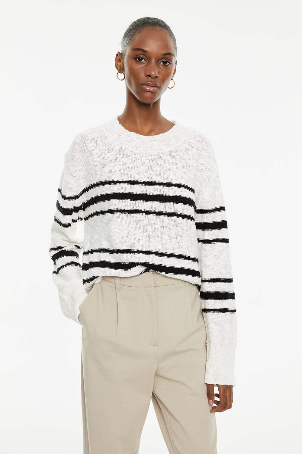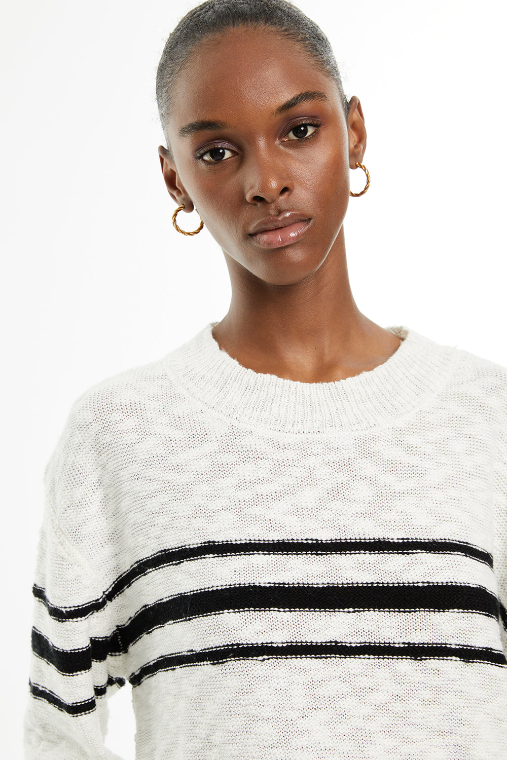Jersey de rayas de mujer con cuello redondo, manga larga y acabados en rib.
