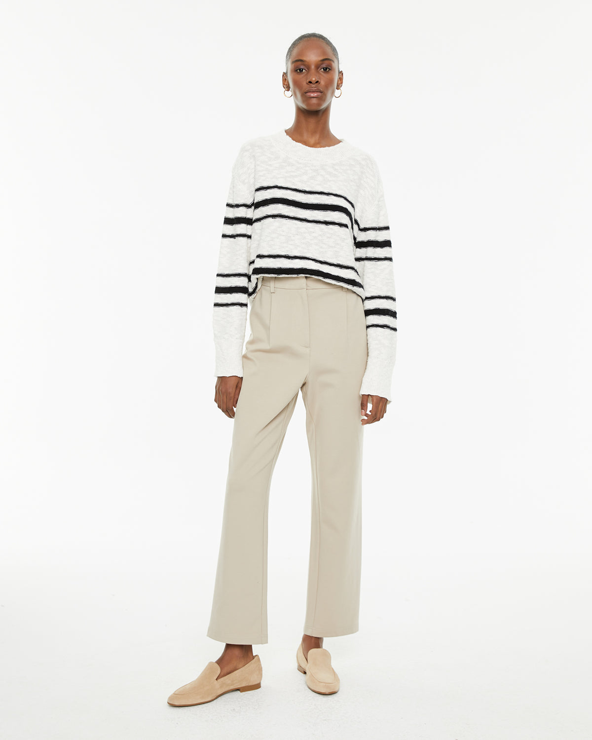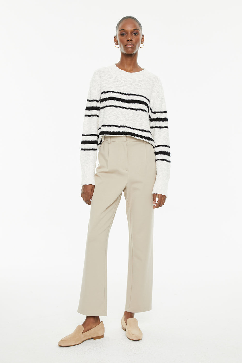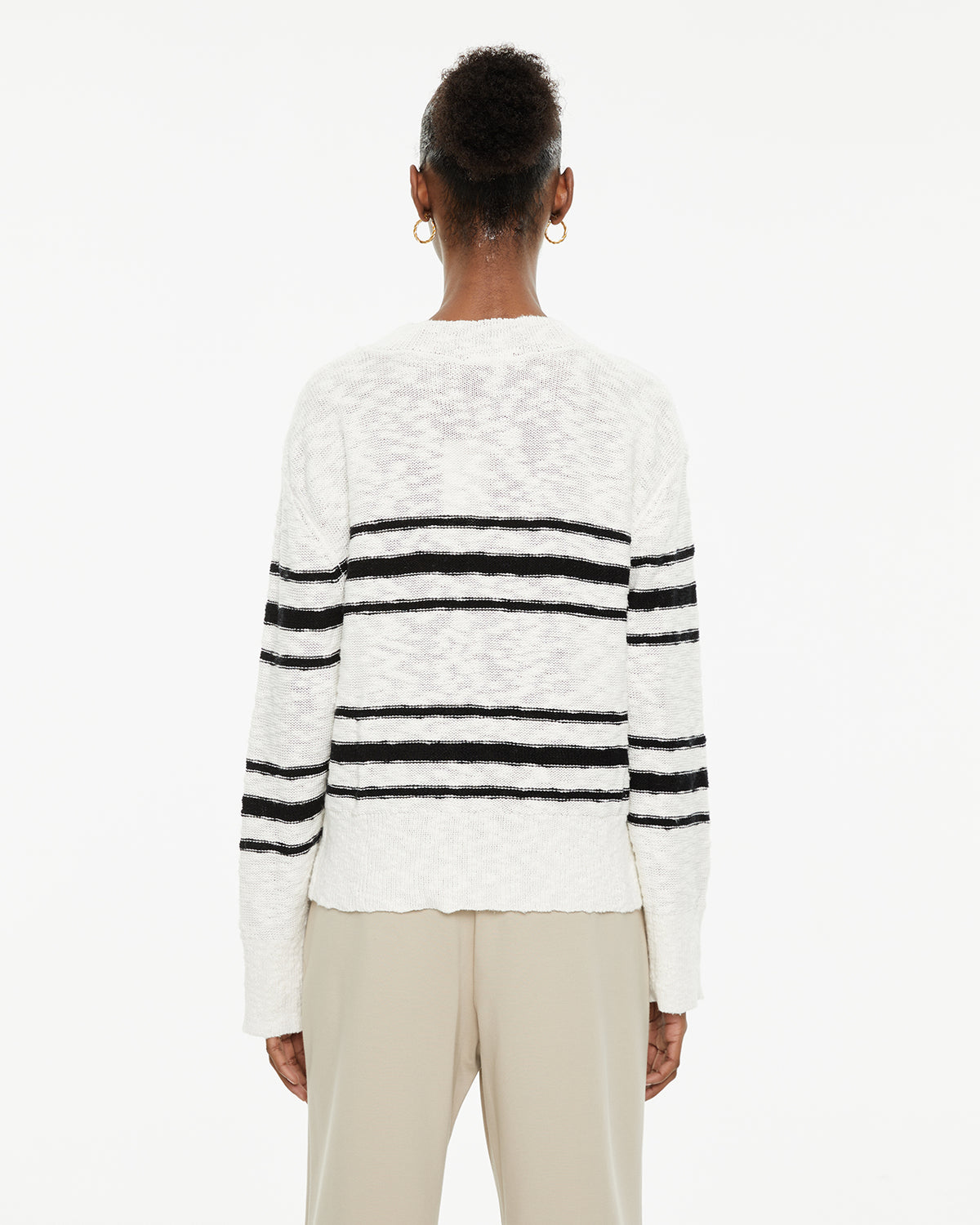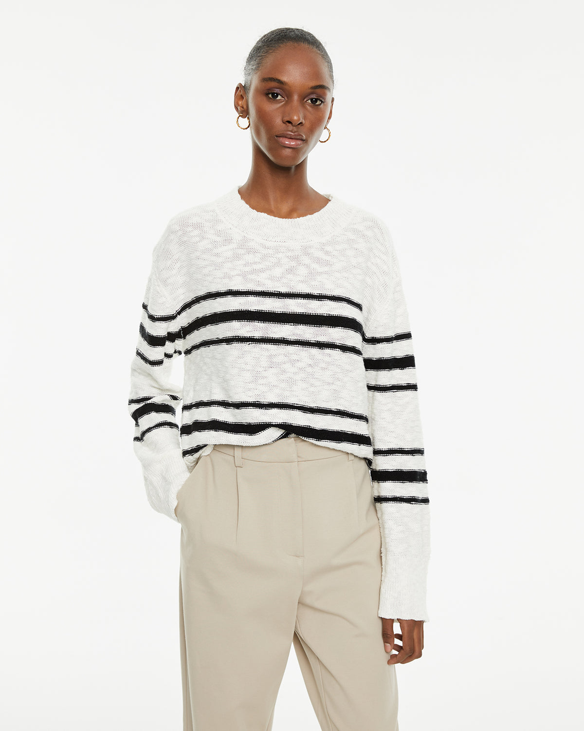 Jersey de rayas de mujer con cuello redondo, manga larga y acabados en rib.