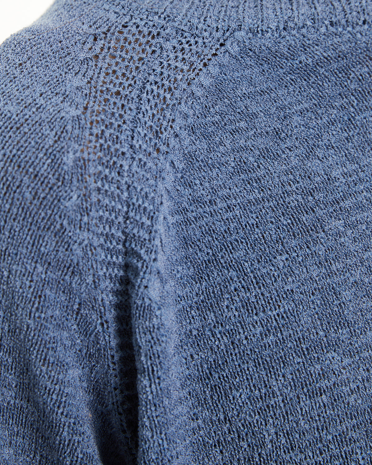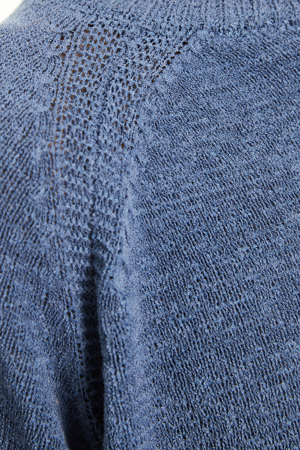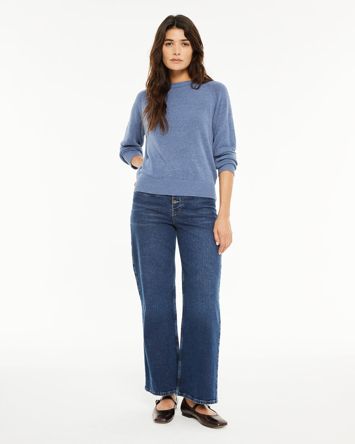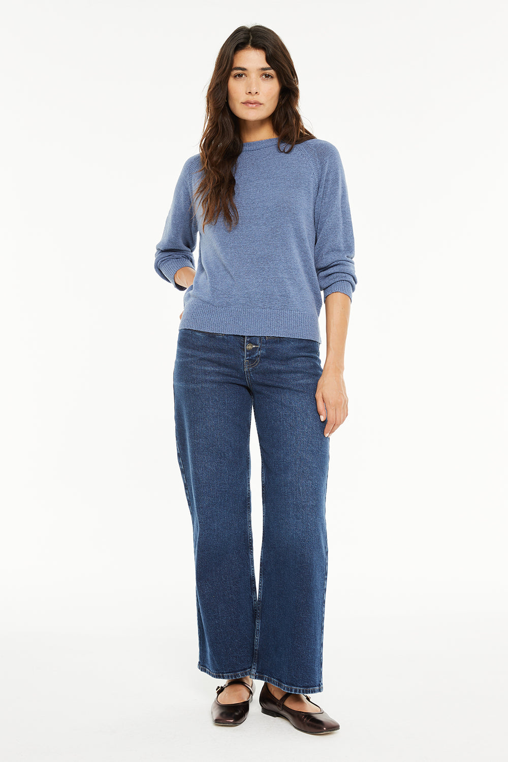 Jersey de mujer con cuello redondo, manga larga y acabados en rib.