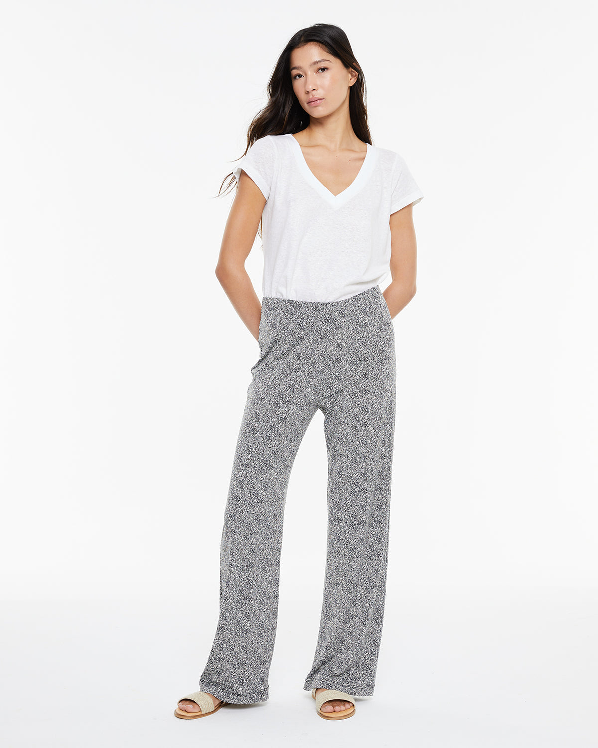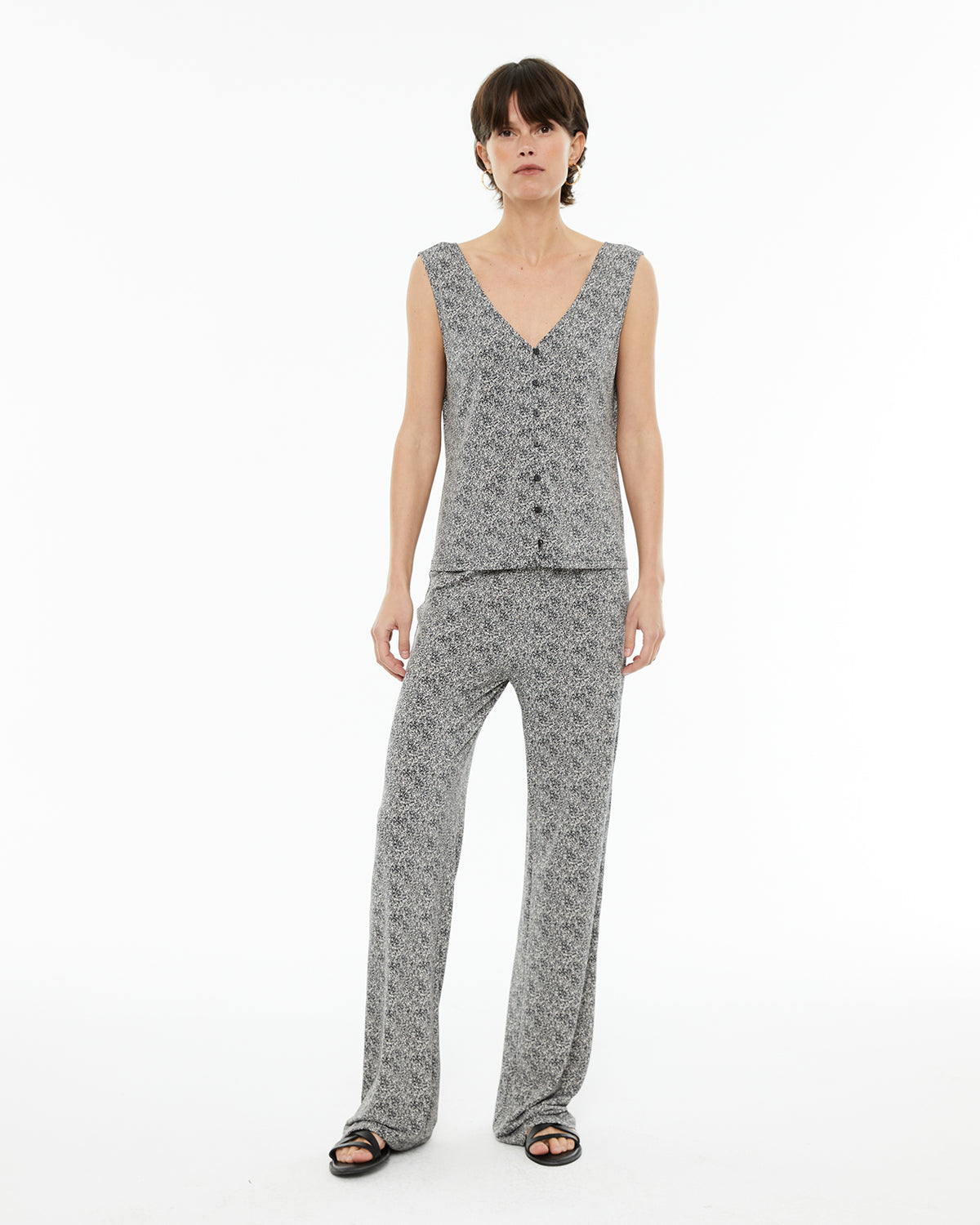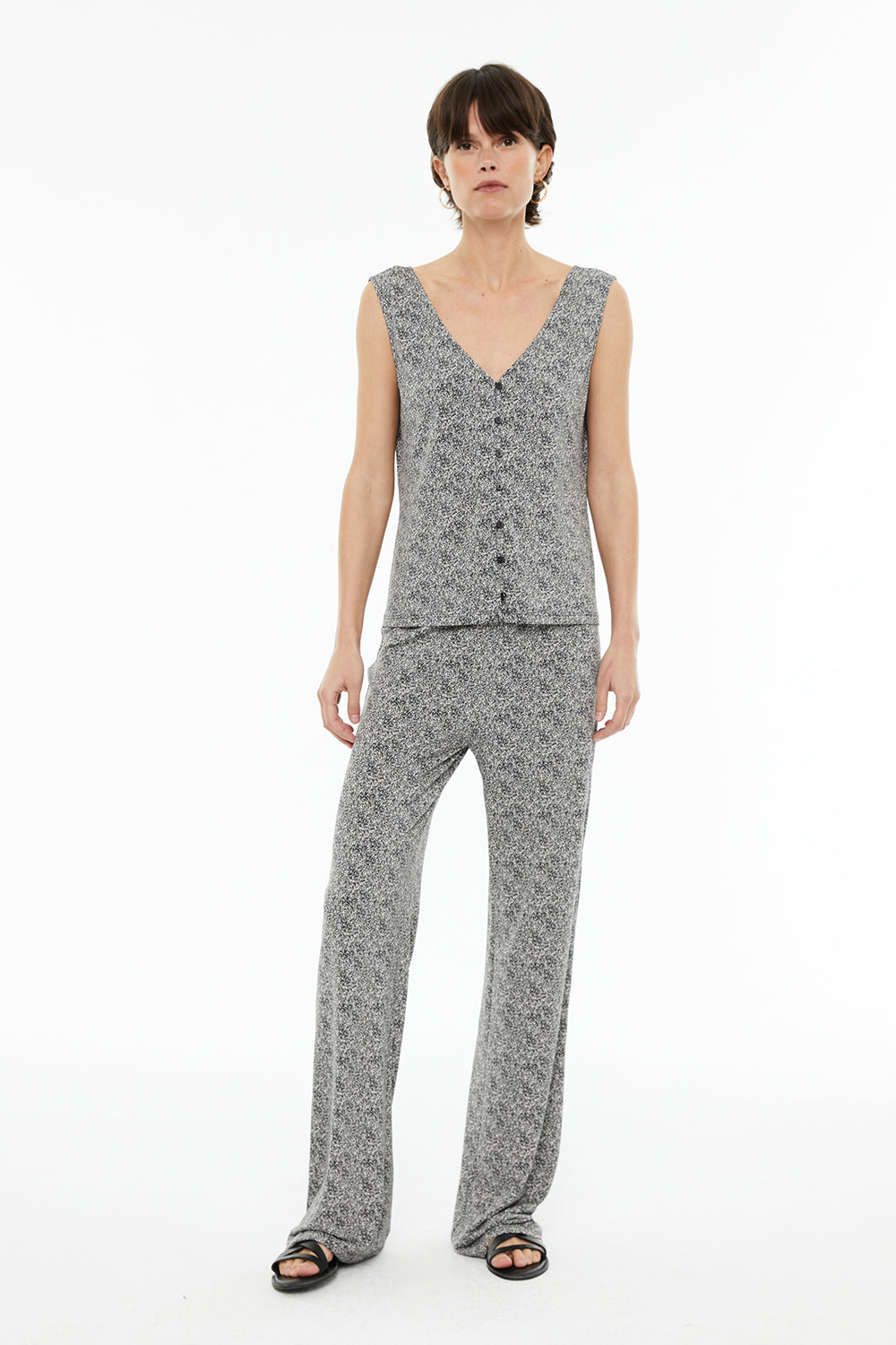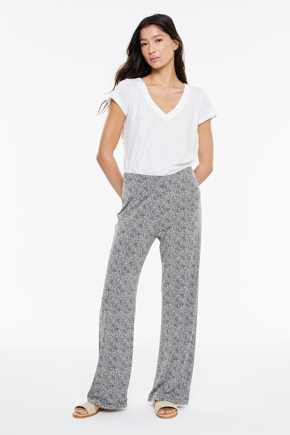 Pantalón de mujer confort con un estampado bicolor, con goma en la cintura.