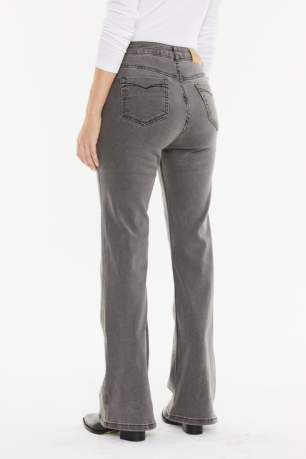 Pantalón acampanado con detalle de bolsillos plastrón en la parte delantera.