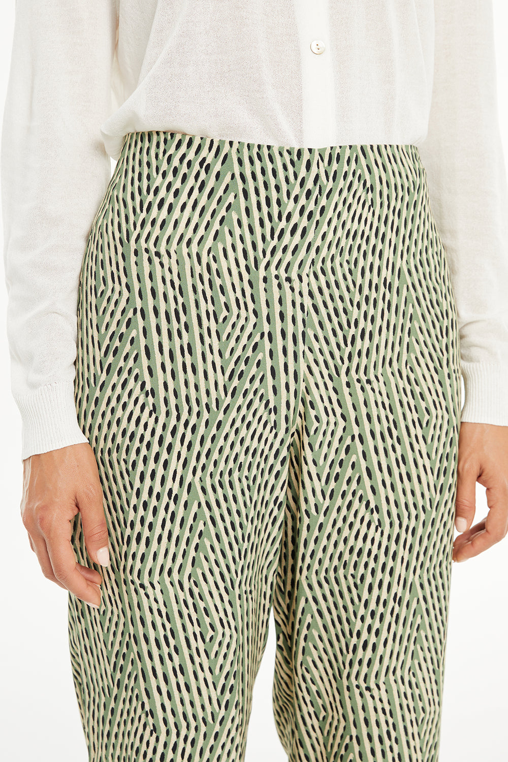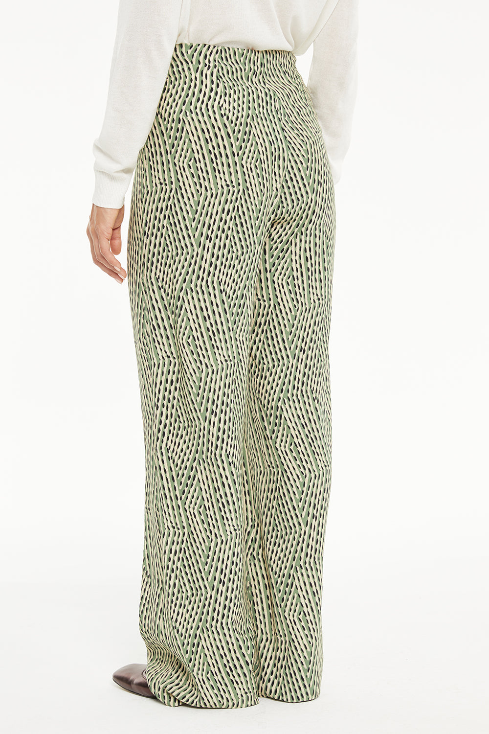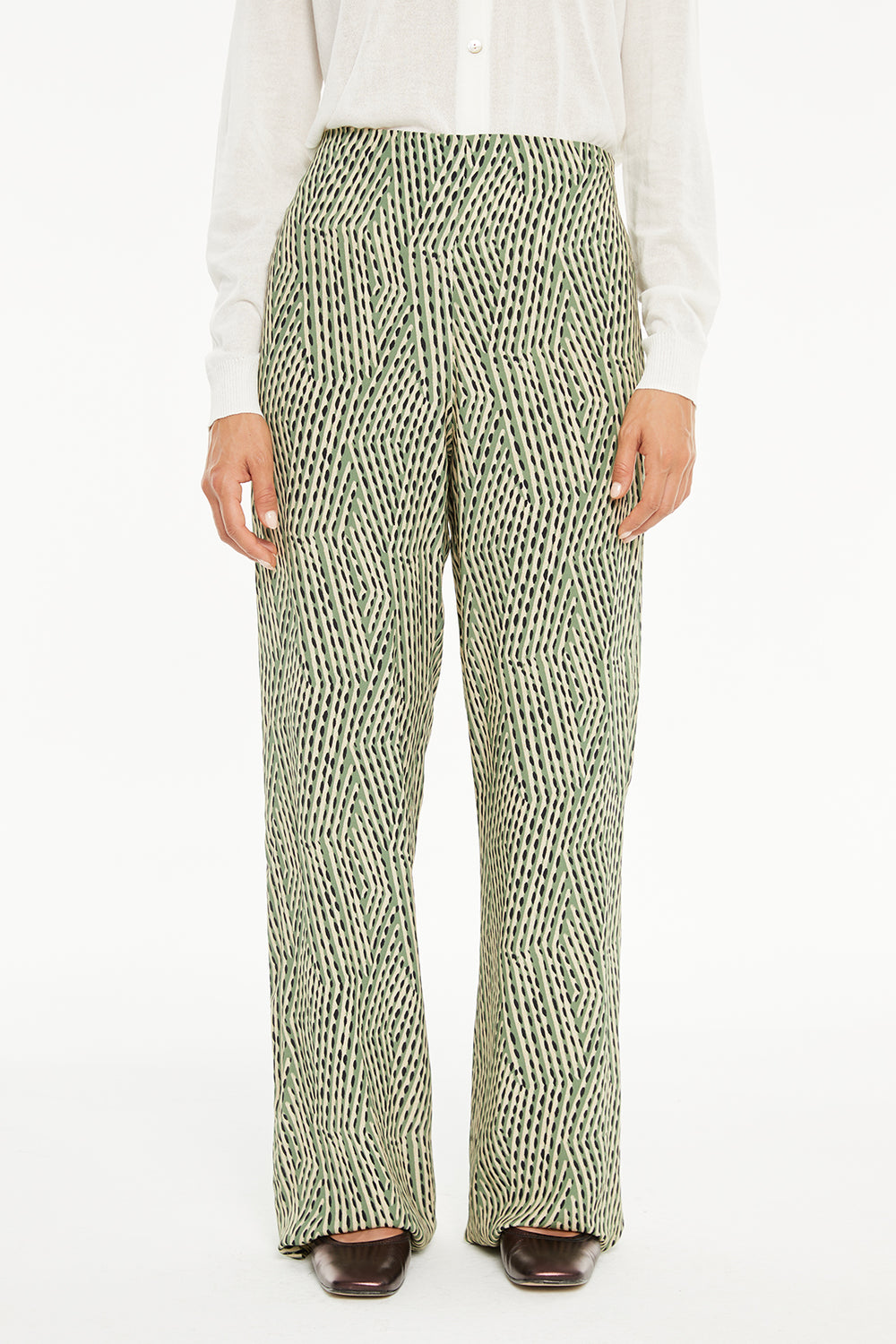Pantalón de mujer estampado con cremallera lateral. Prenda sostenible.
