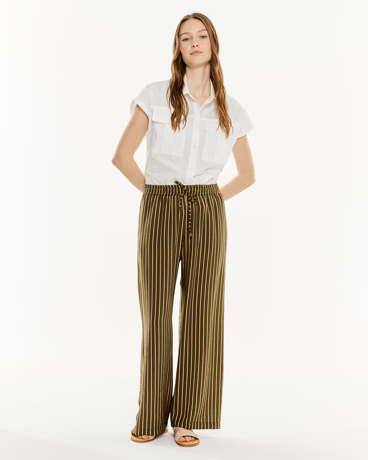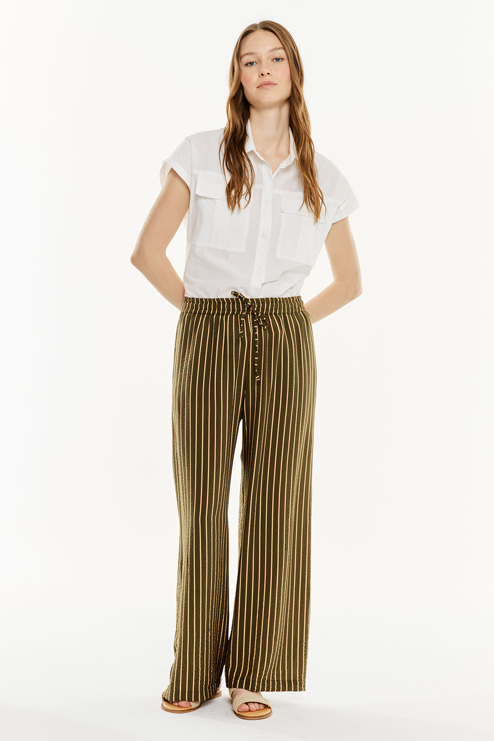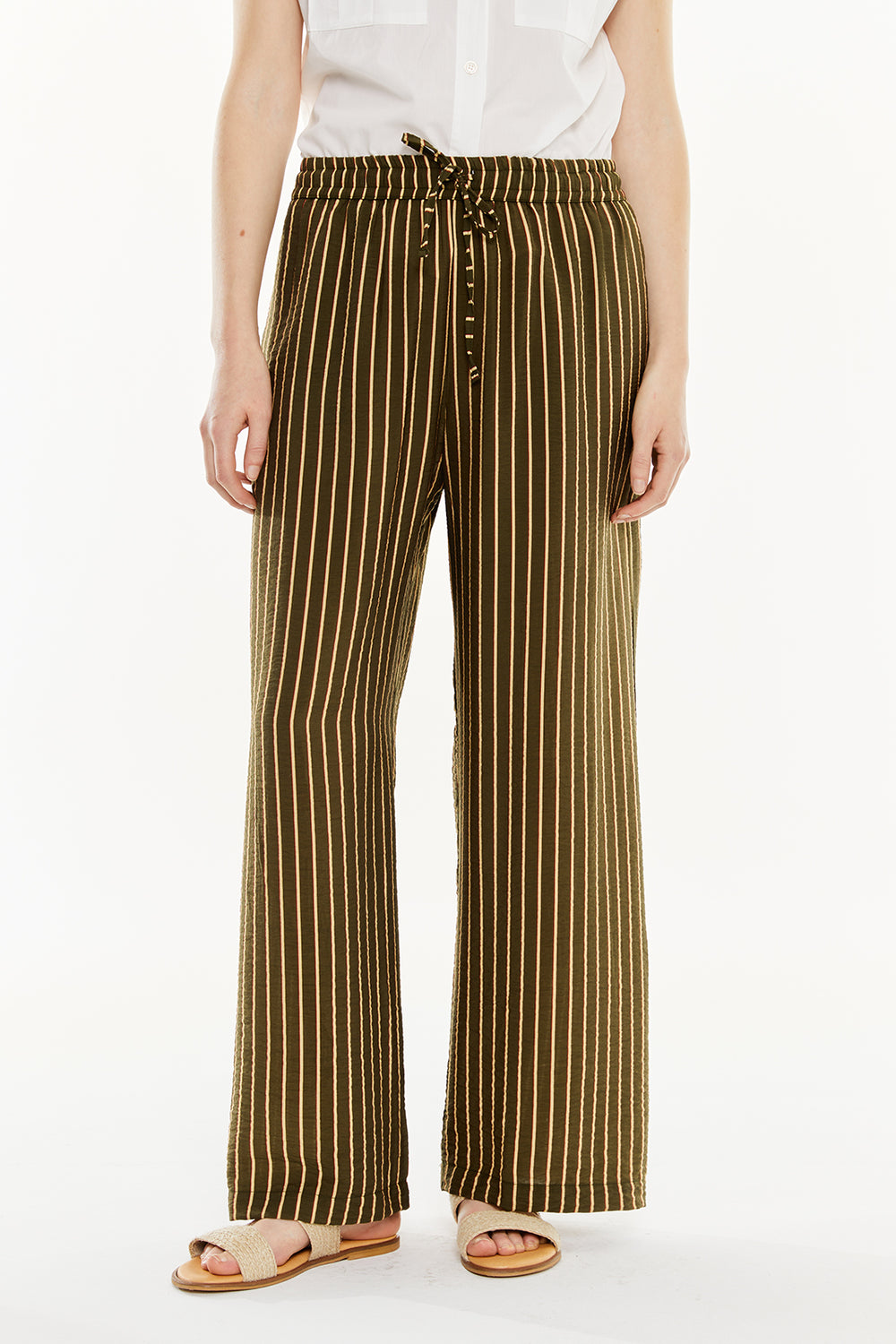 Pantalón de rayas de mujer con goma en la cintura.